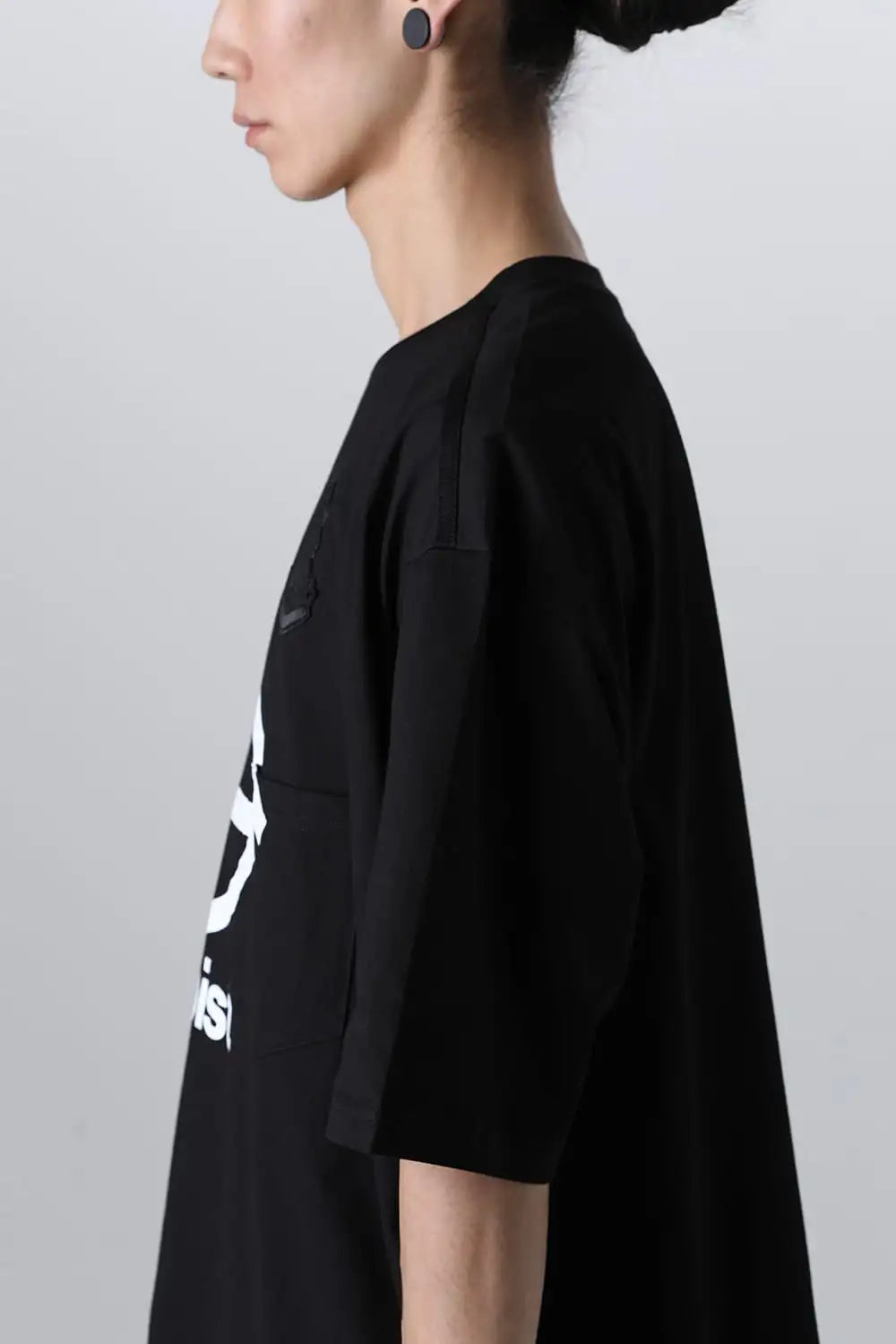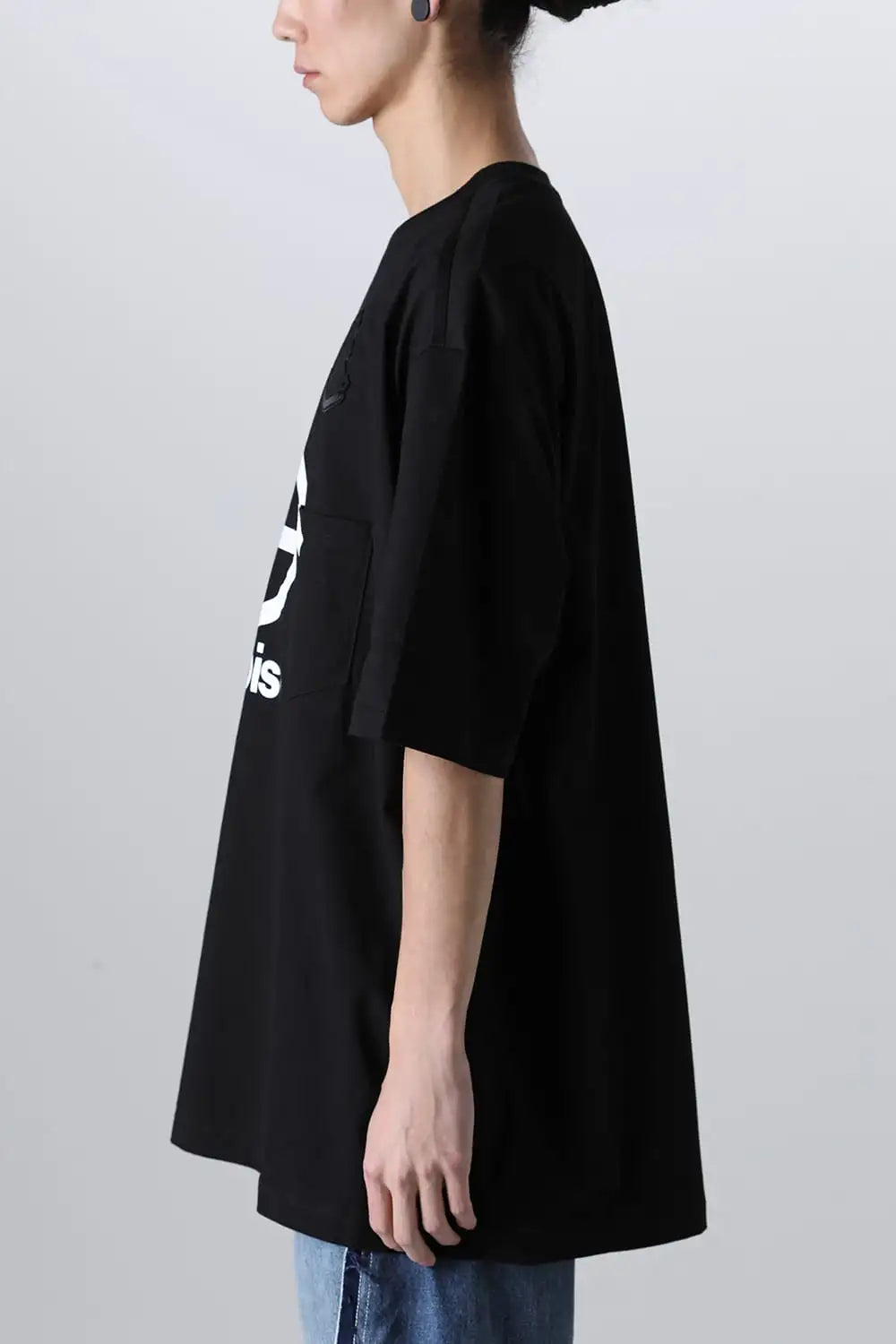 Sロゴアンドボーンエムブレム(オーバーサイズショートスリーブポケットティー) Black