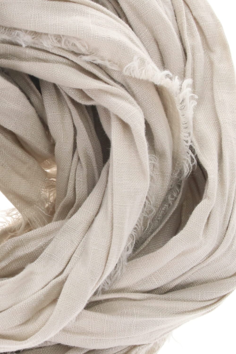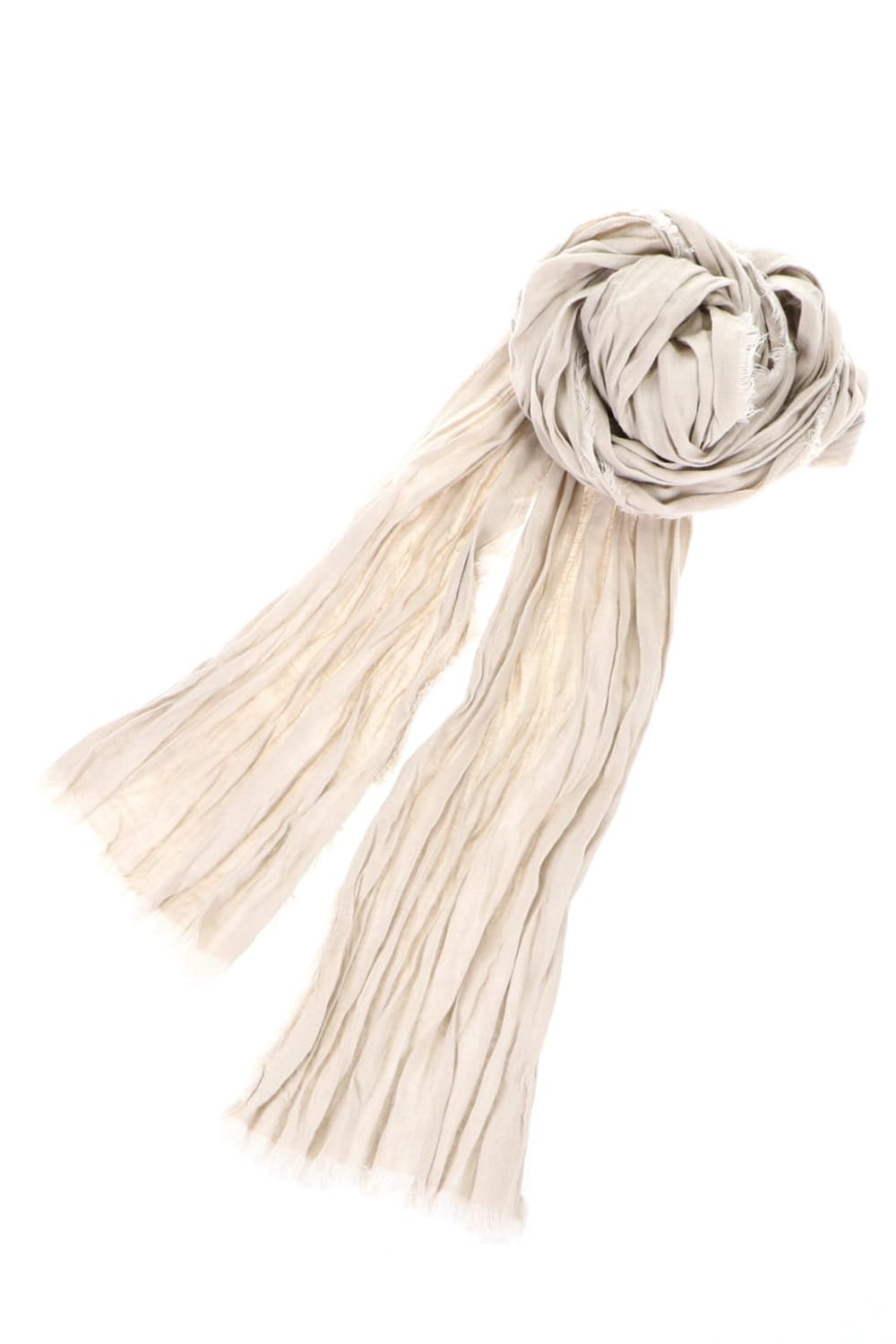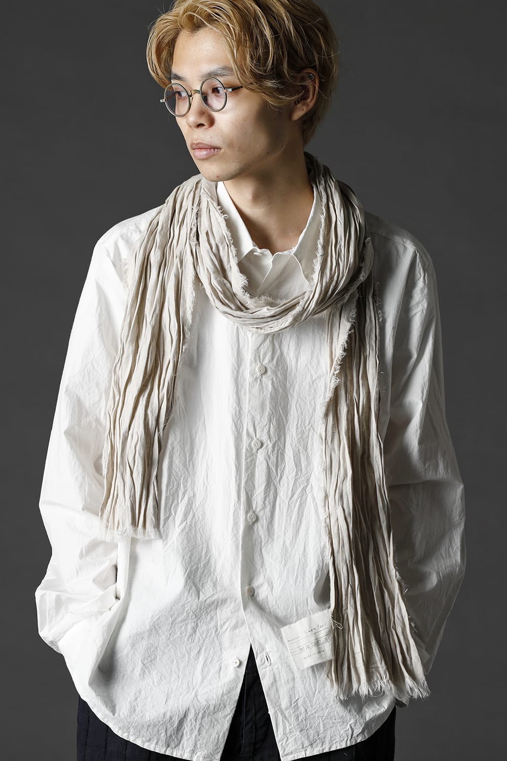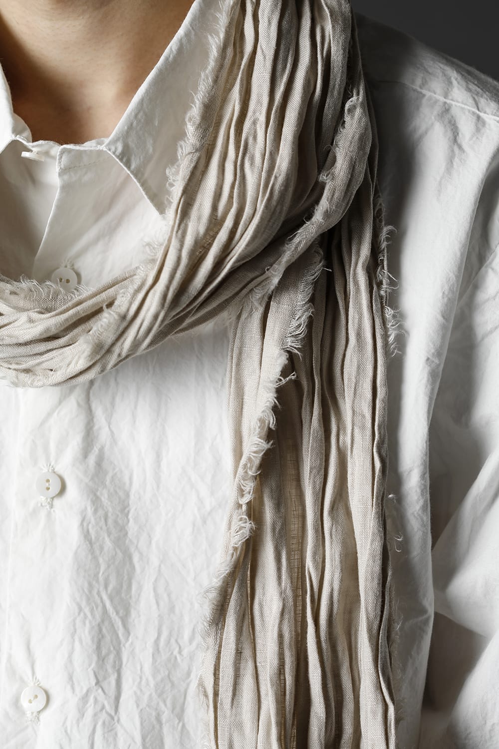 存在感のある皺が特徴的なストール。デザイナーによって選び抜かれた上質なフレンチリネンに敢えて洗いを掛けていただき、シュリンクさせ生み出されたANNASTESIAのエクスクルーシブモデル。 程良く品を残しながら飾らないアルチザンの表情がうまく融合した玄人感滲み出る雰囲気に仕上げていただきました。 皺により醸し出される空気を含んだような佇まいは春夏のトップスにアクセントを与えてくれる適度なボリューム感。着用感も軽快で涼しく愉しむことができるアイテムです。