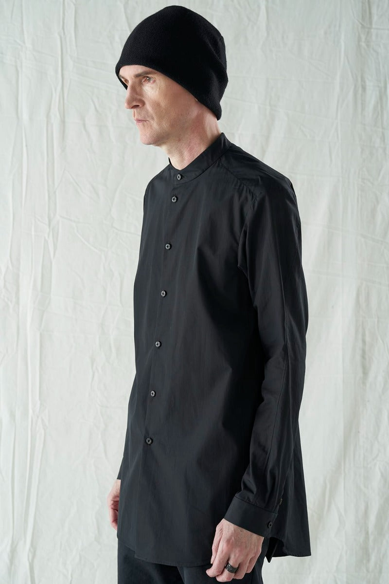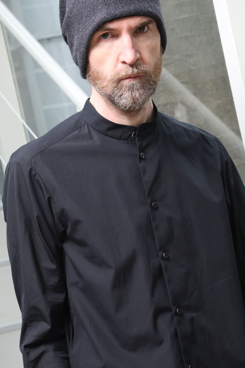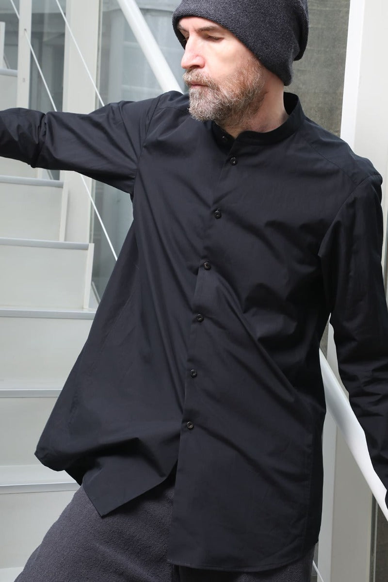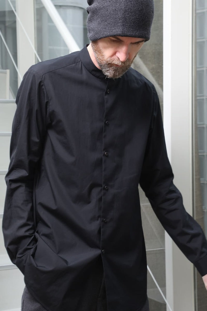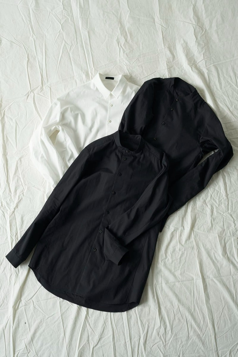 レギュラーフィットで製作されたDEVOA独自の立体的なアナトミカルパターンのノーカラーシャツ。