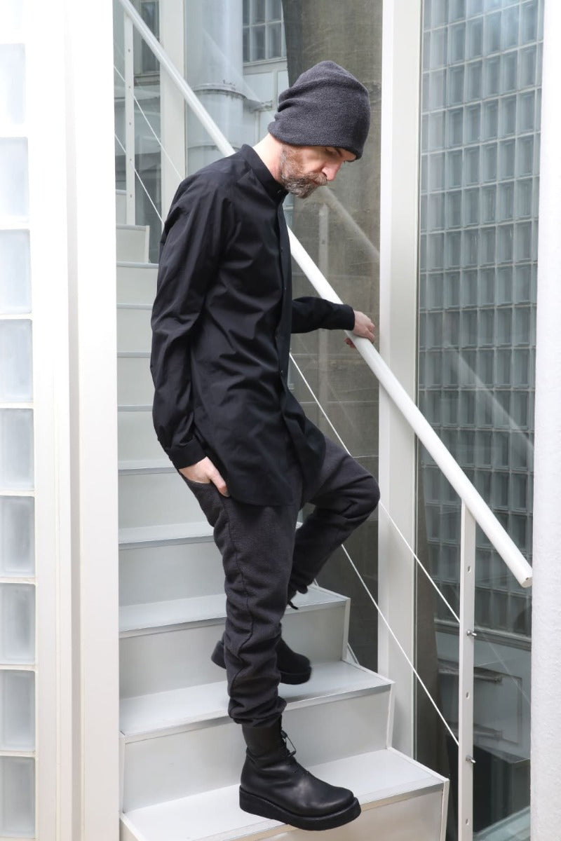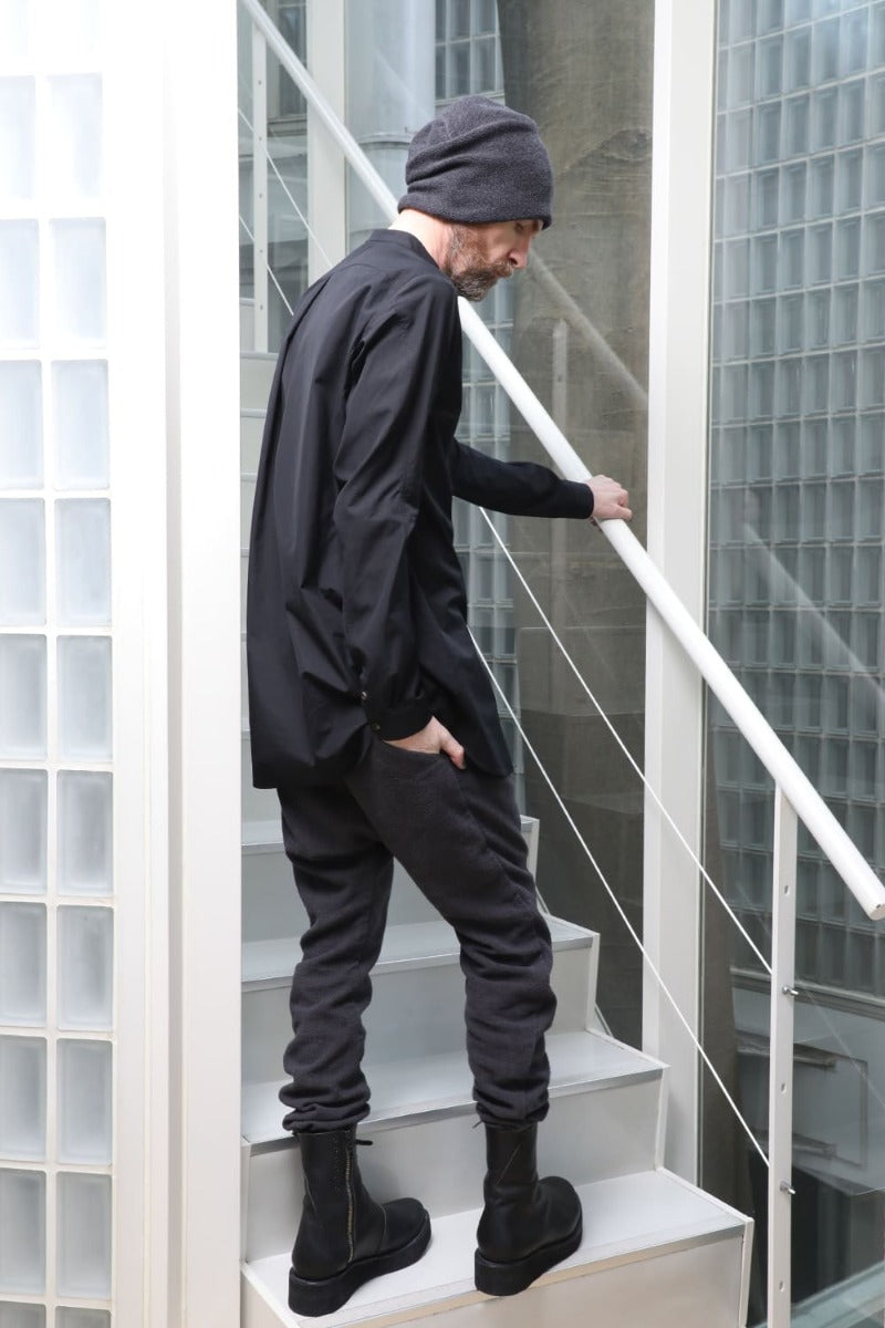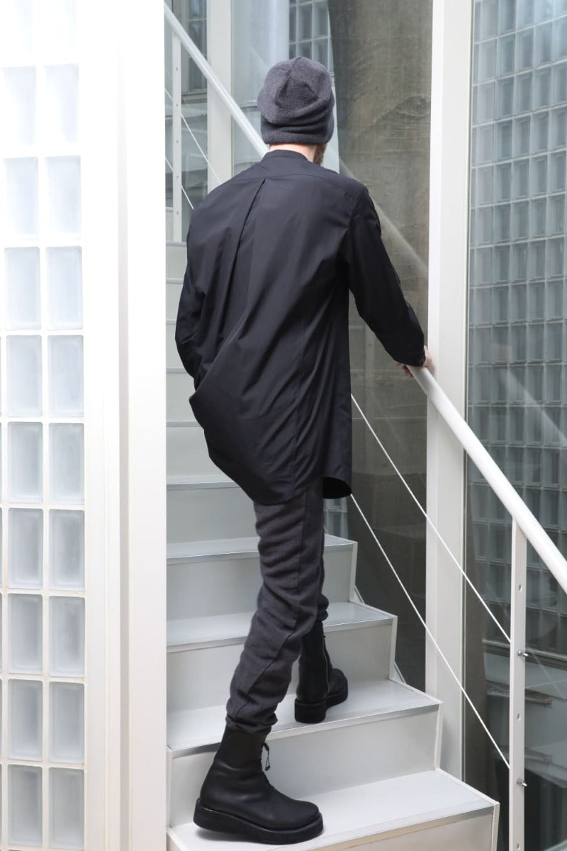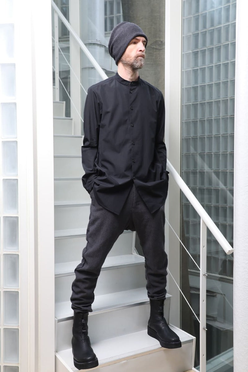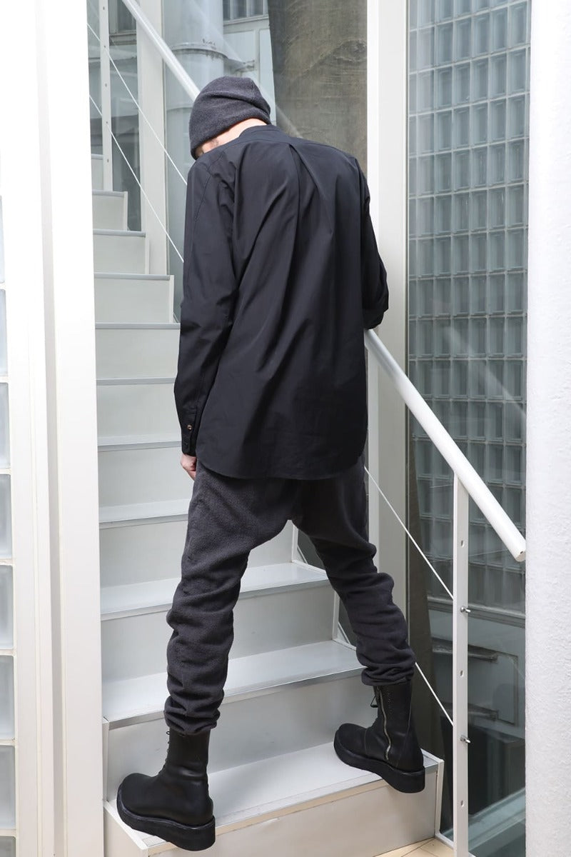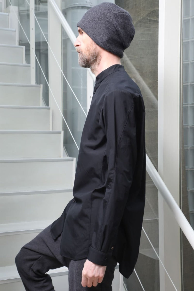 レギュラーフィットで製作されたDEVOA独自の立体的なアナトミカルパターンのノーカラーシャツ。