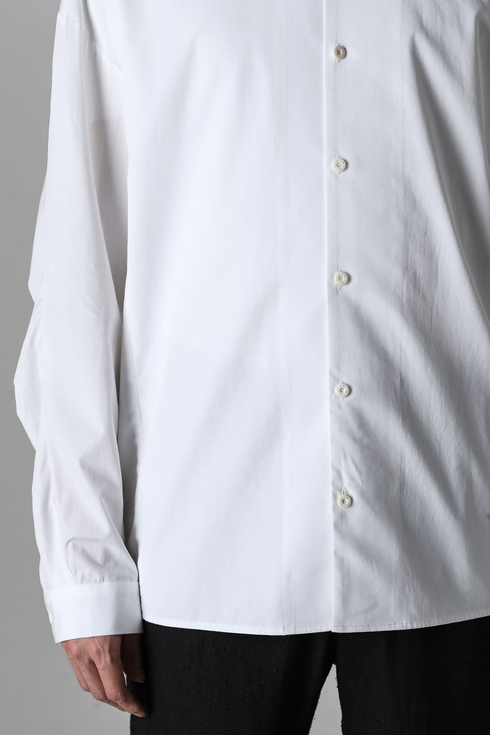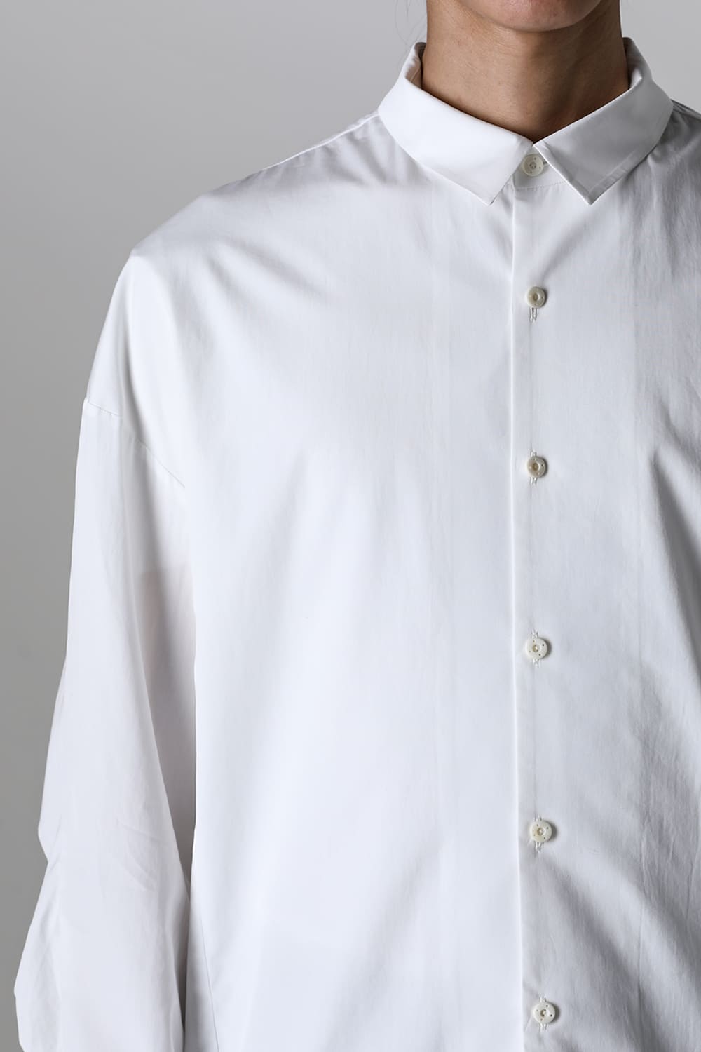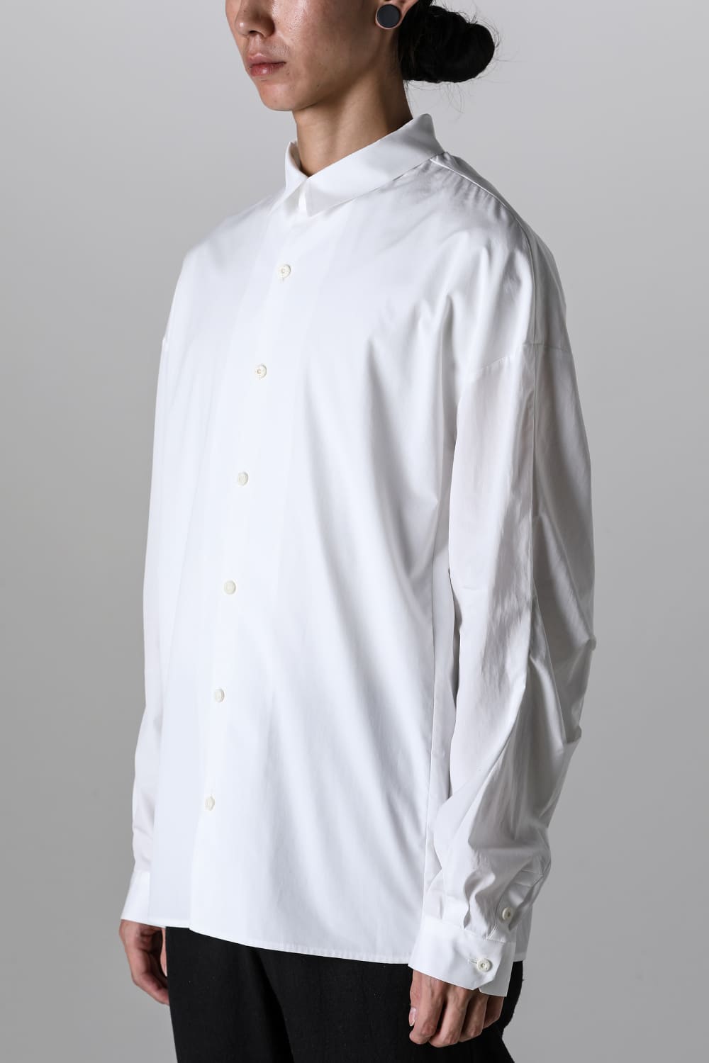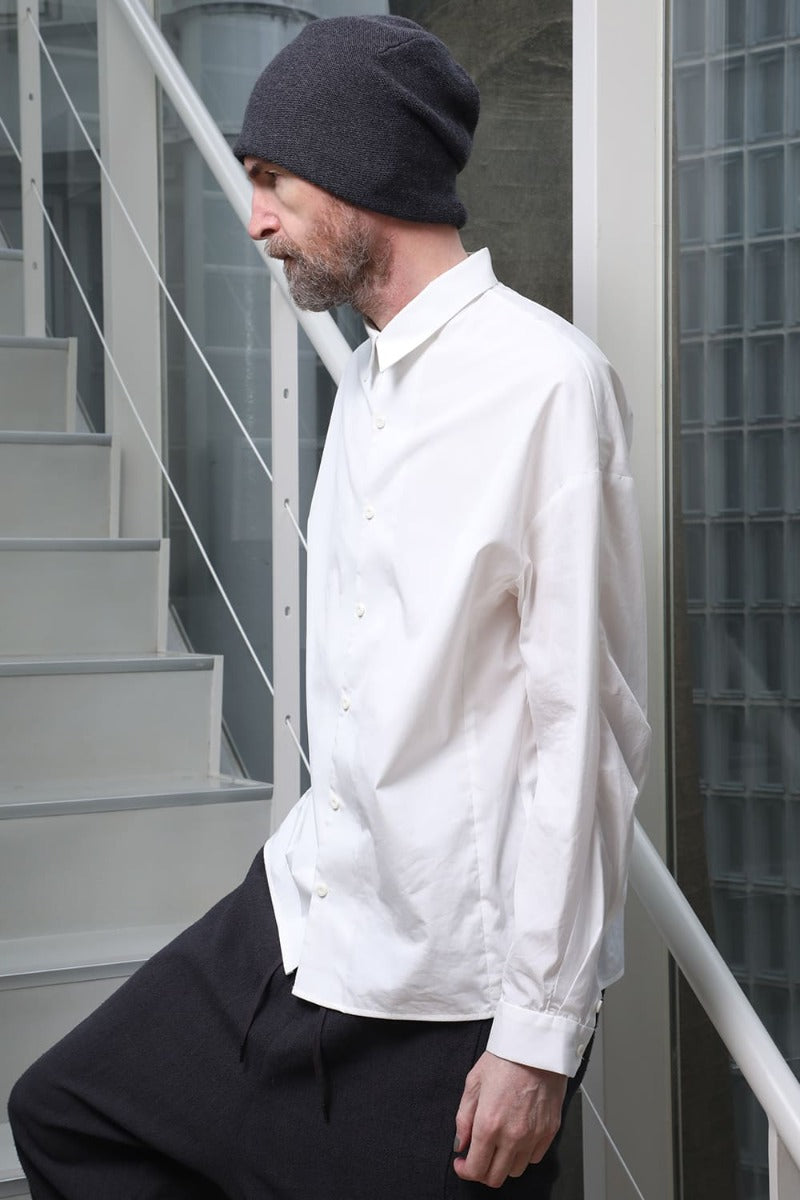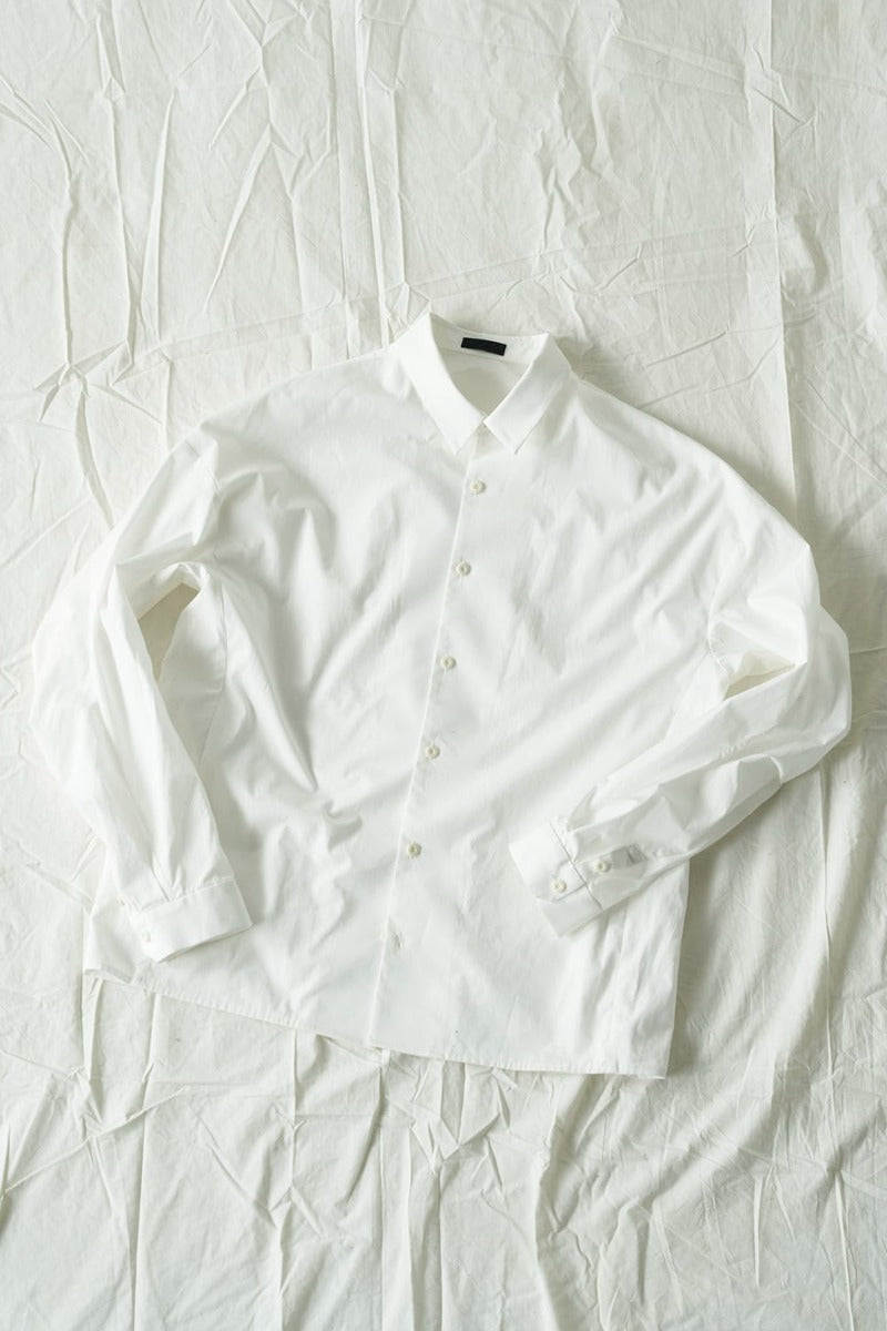 ドロップショルダーで身幅も大きく取った全体的にルーズフィットに製作されたレギュラーカラーシャツ。