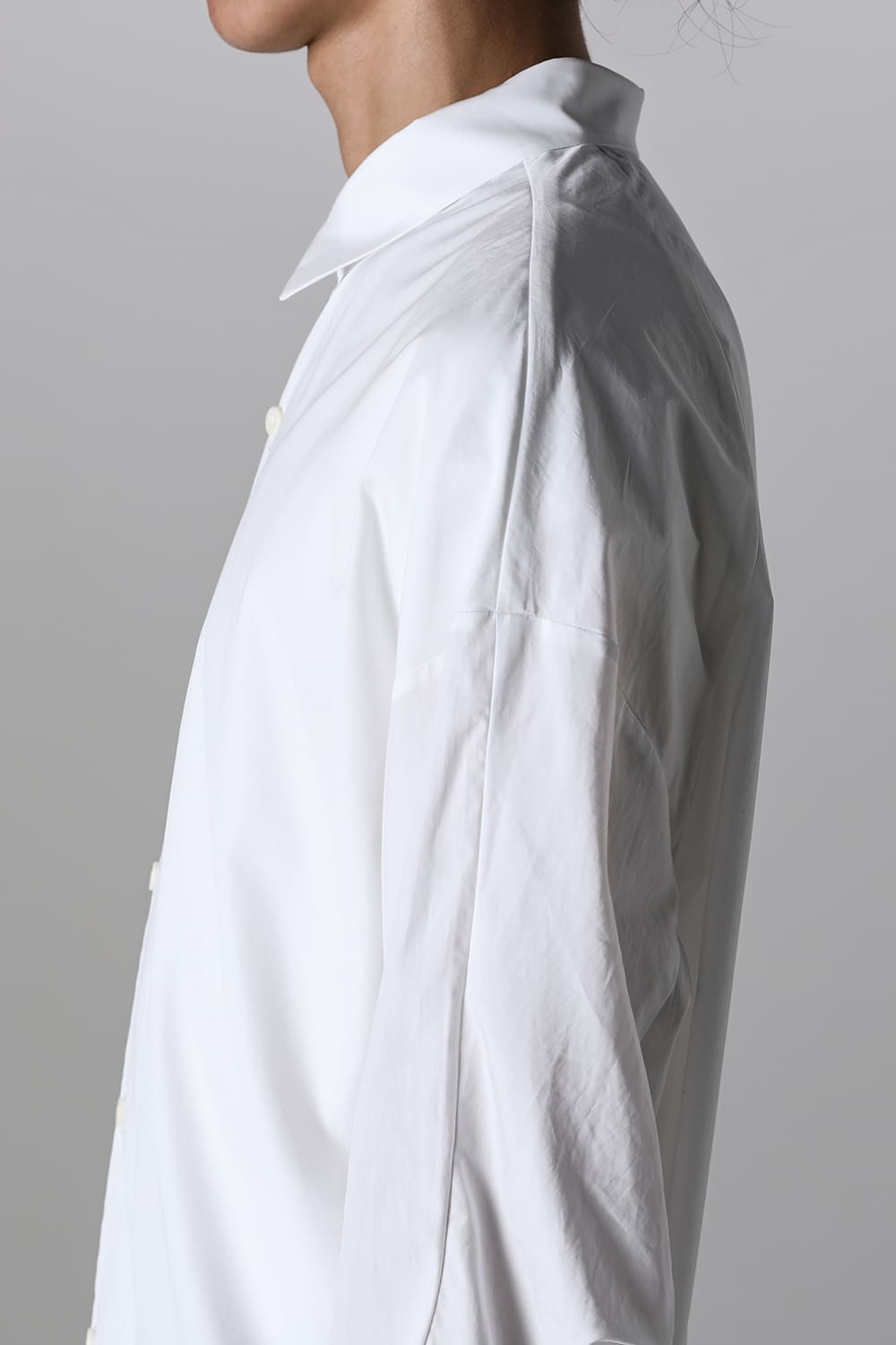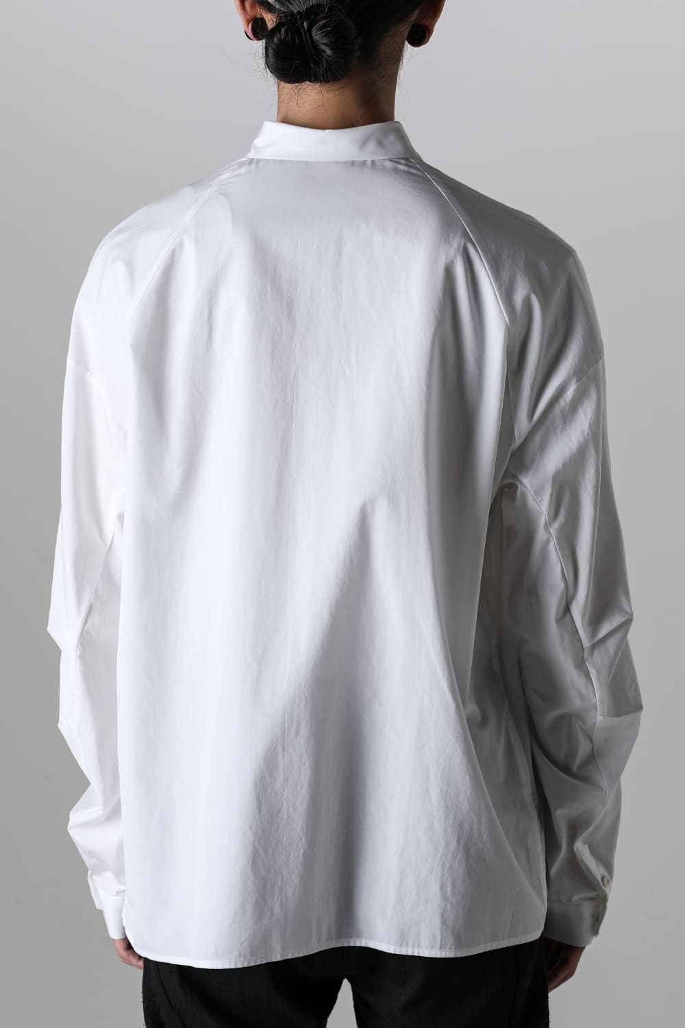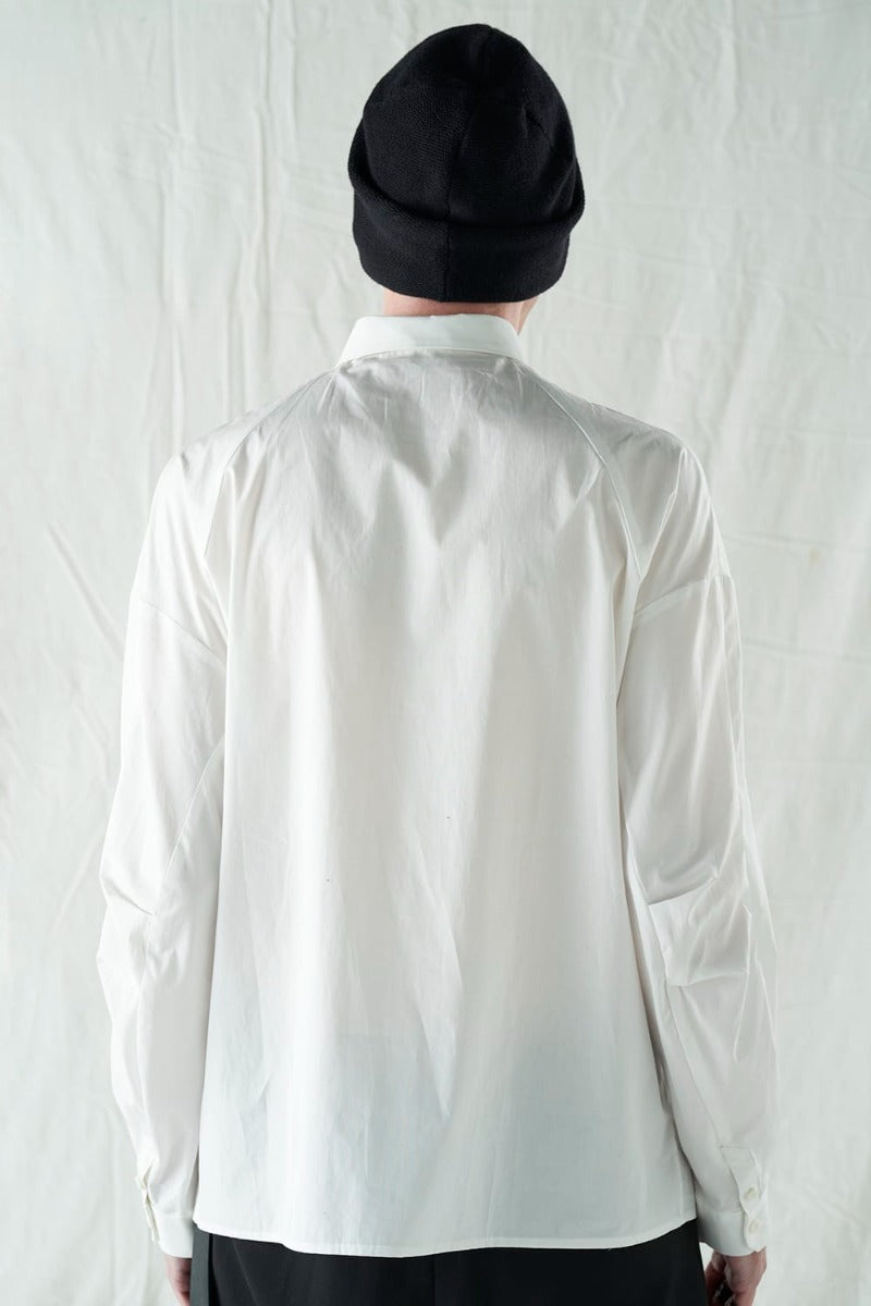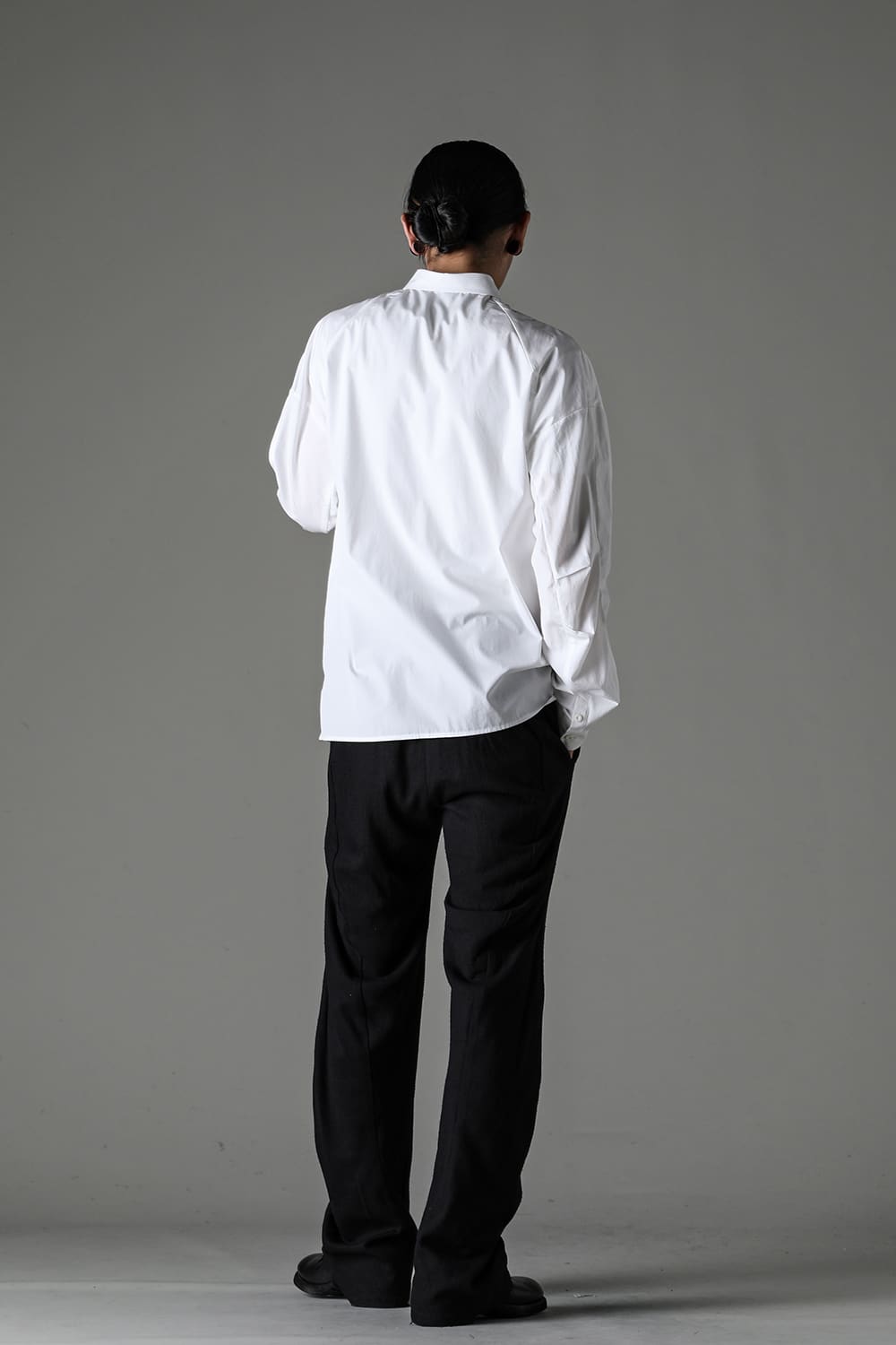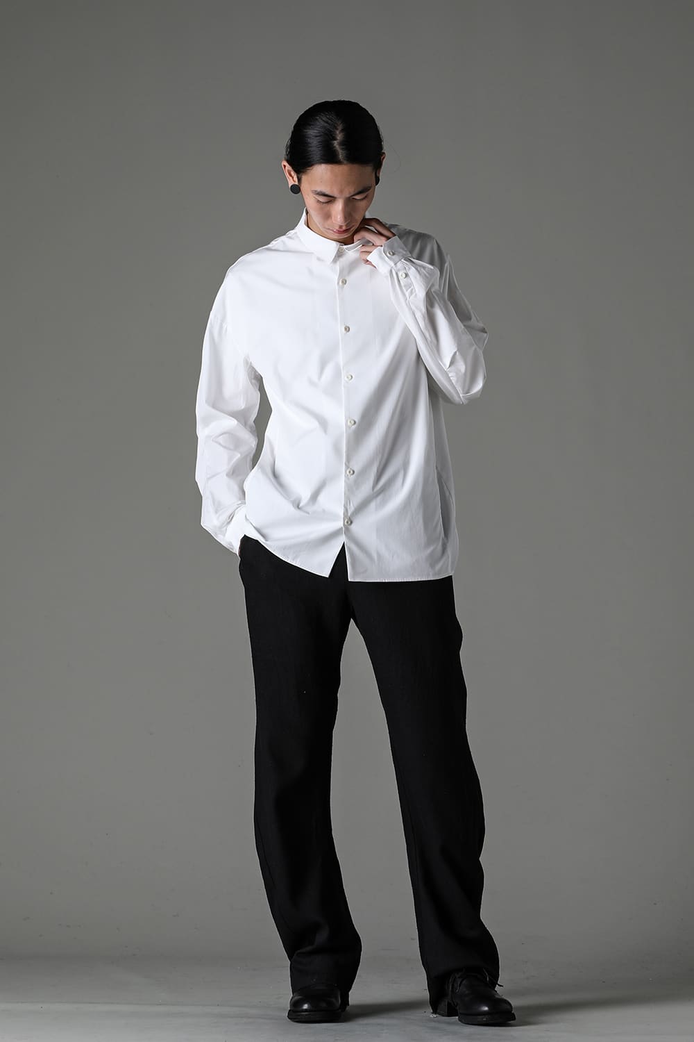 ドロップショルダーで身幅も大きく取った全体的にルーズフィットに製作されたレギュラーカラーシャツ。