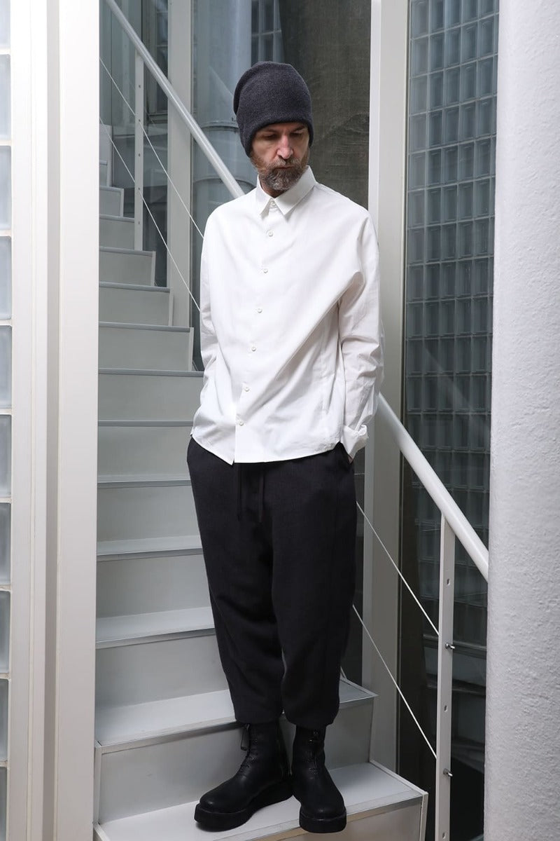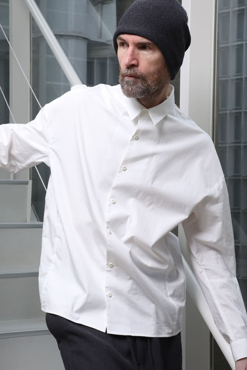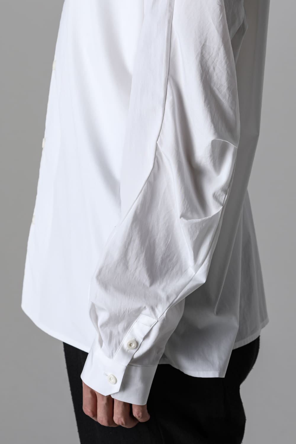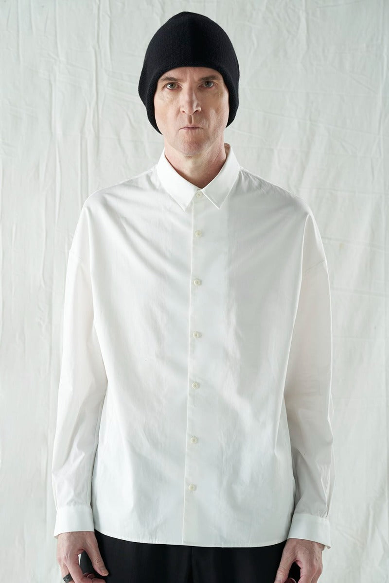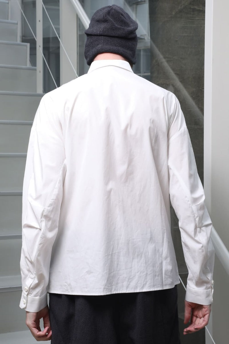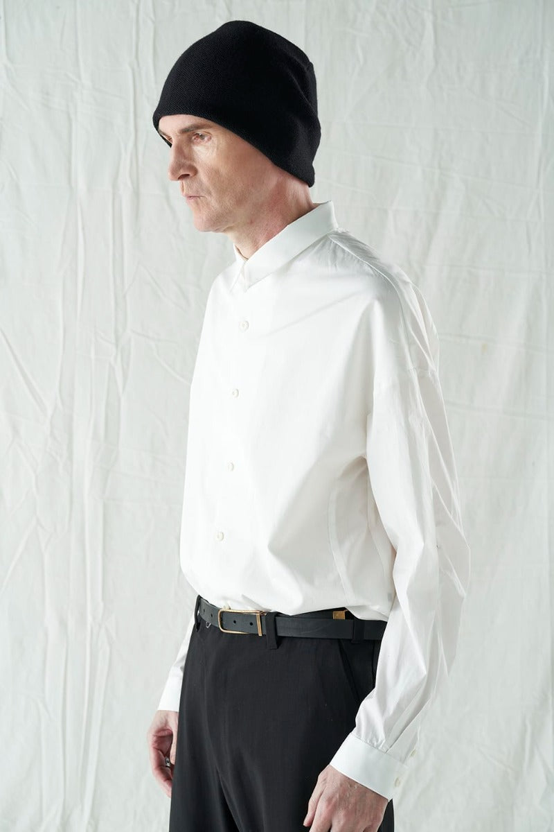 ドロップショルダーで身幅も大きく取った全体的にルーズフィットに製作されたレギュラーカラーシャツ。