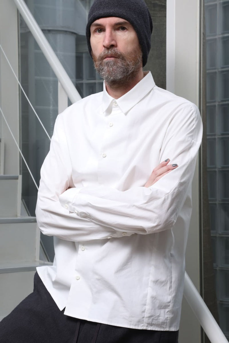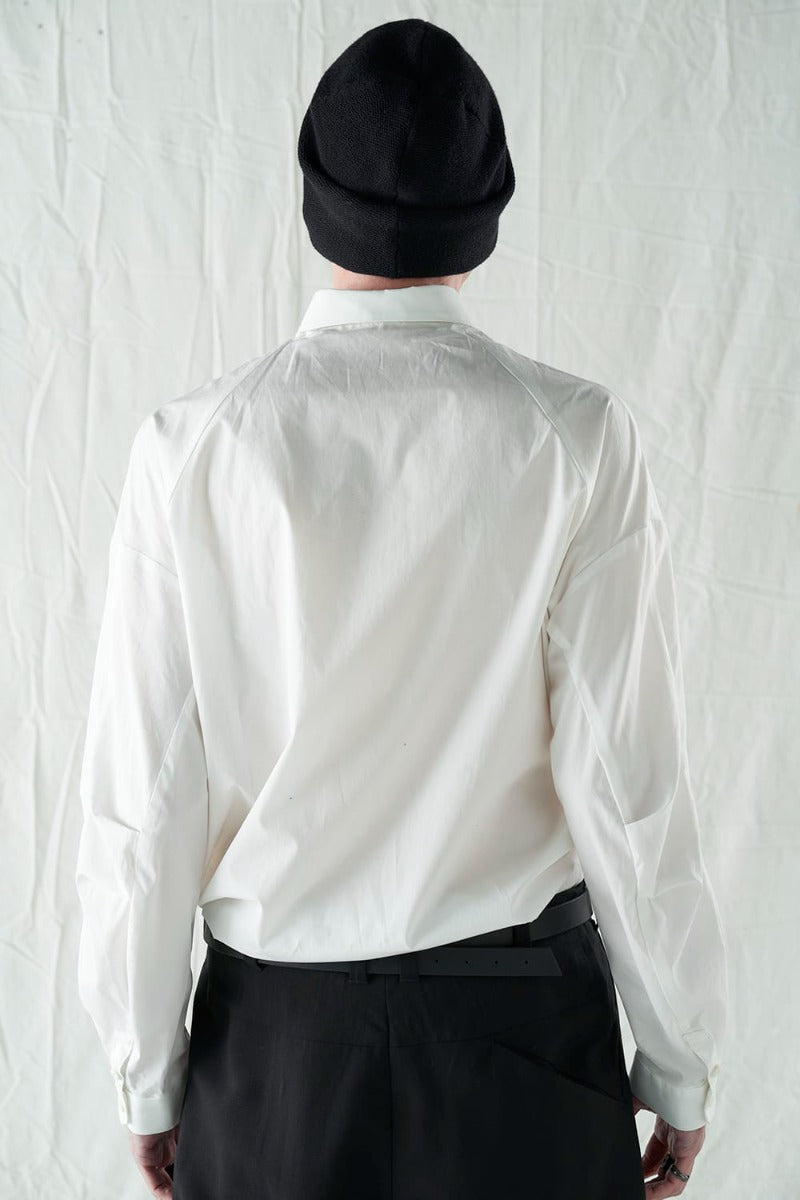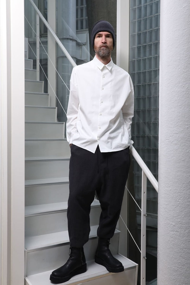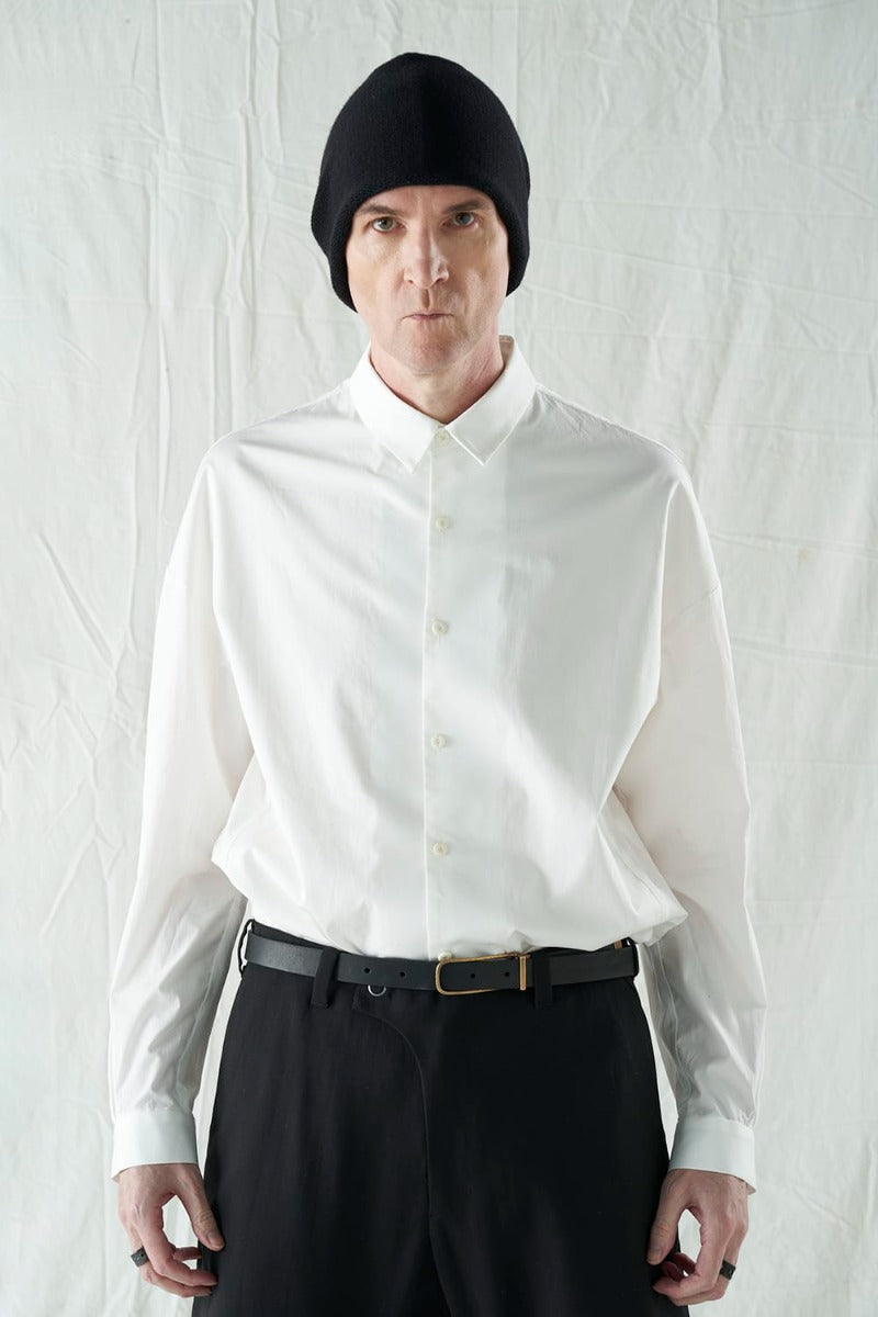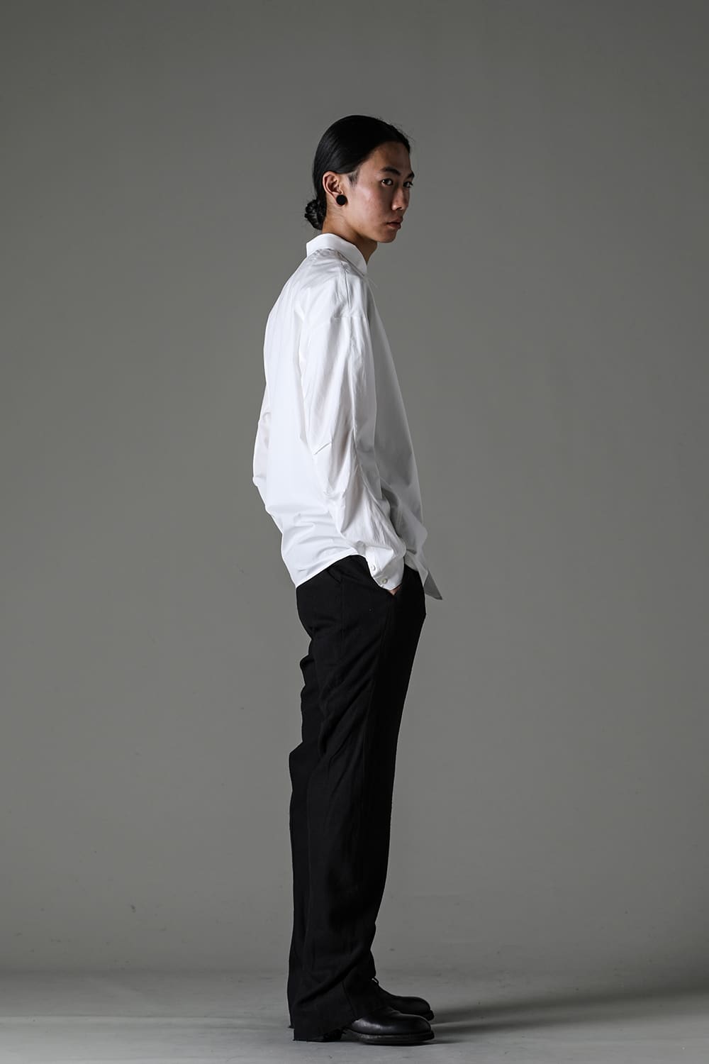 ドロップショルダーで身幅も大きく取った全体的にルーズフィットに製作されたレギュラーカラーシャツ。