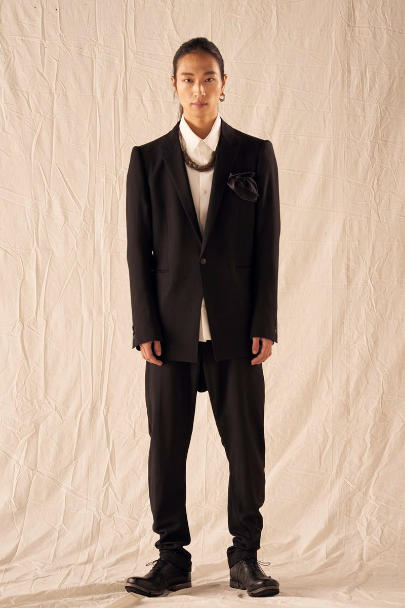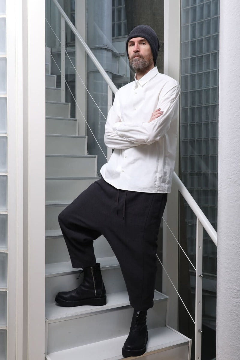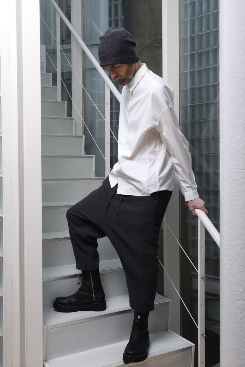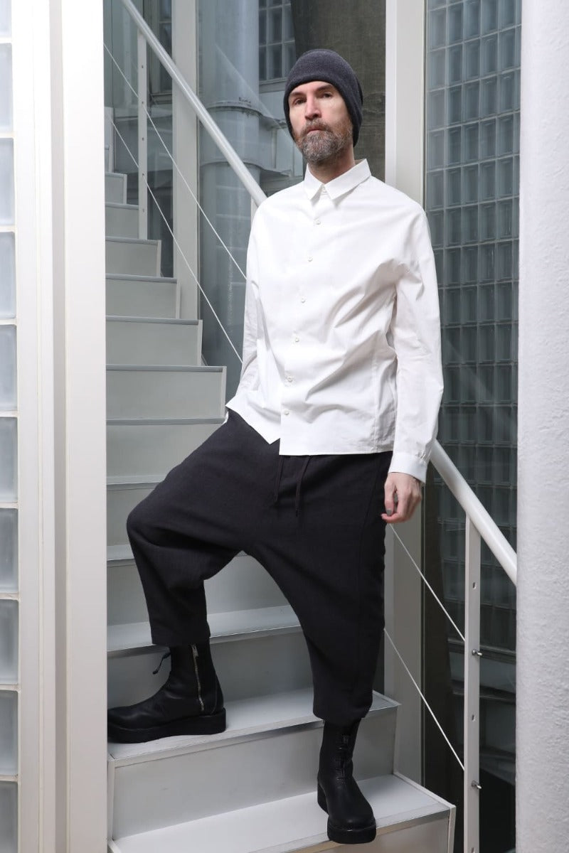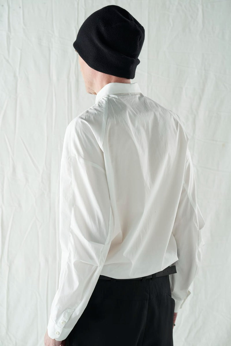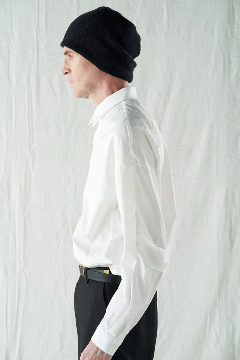 ドロップショルダーで身幅も大きく取った全体的にルーズフィットに製作されたレギュラーカラーシャツ。
