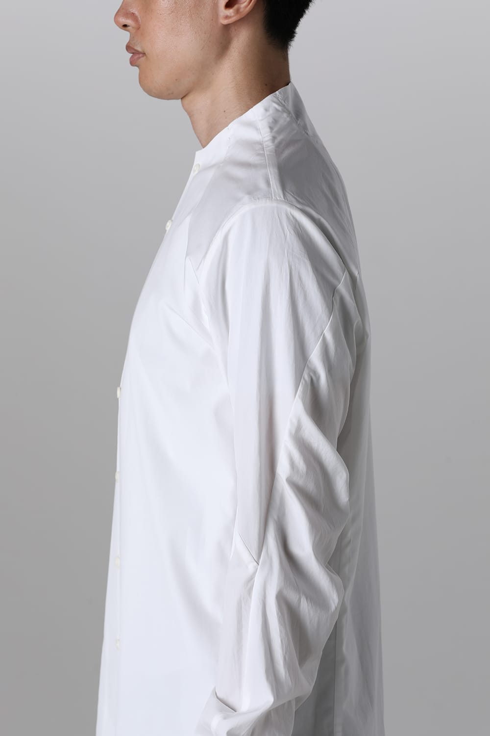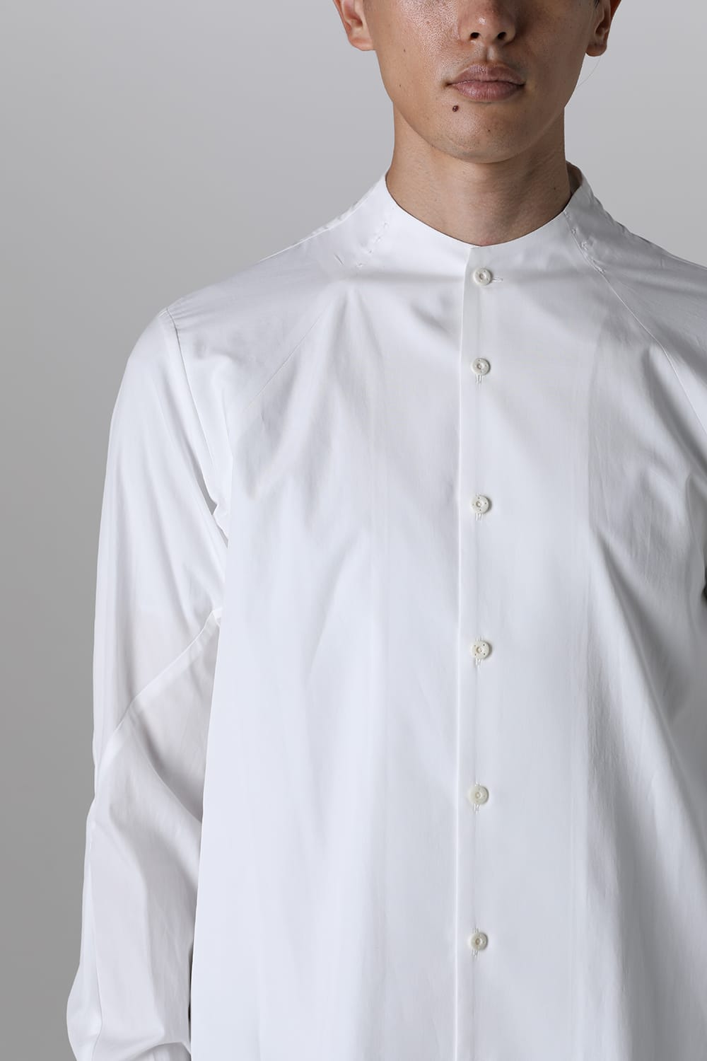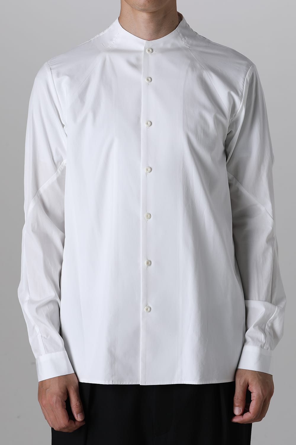 レギュラーフィットで製作されたアナトミカルパターンのノーカラーシャツ。