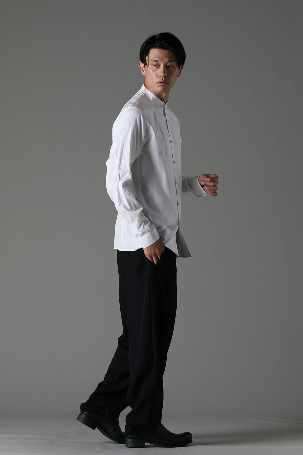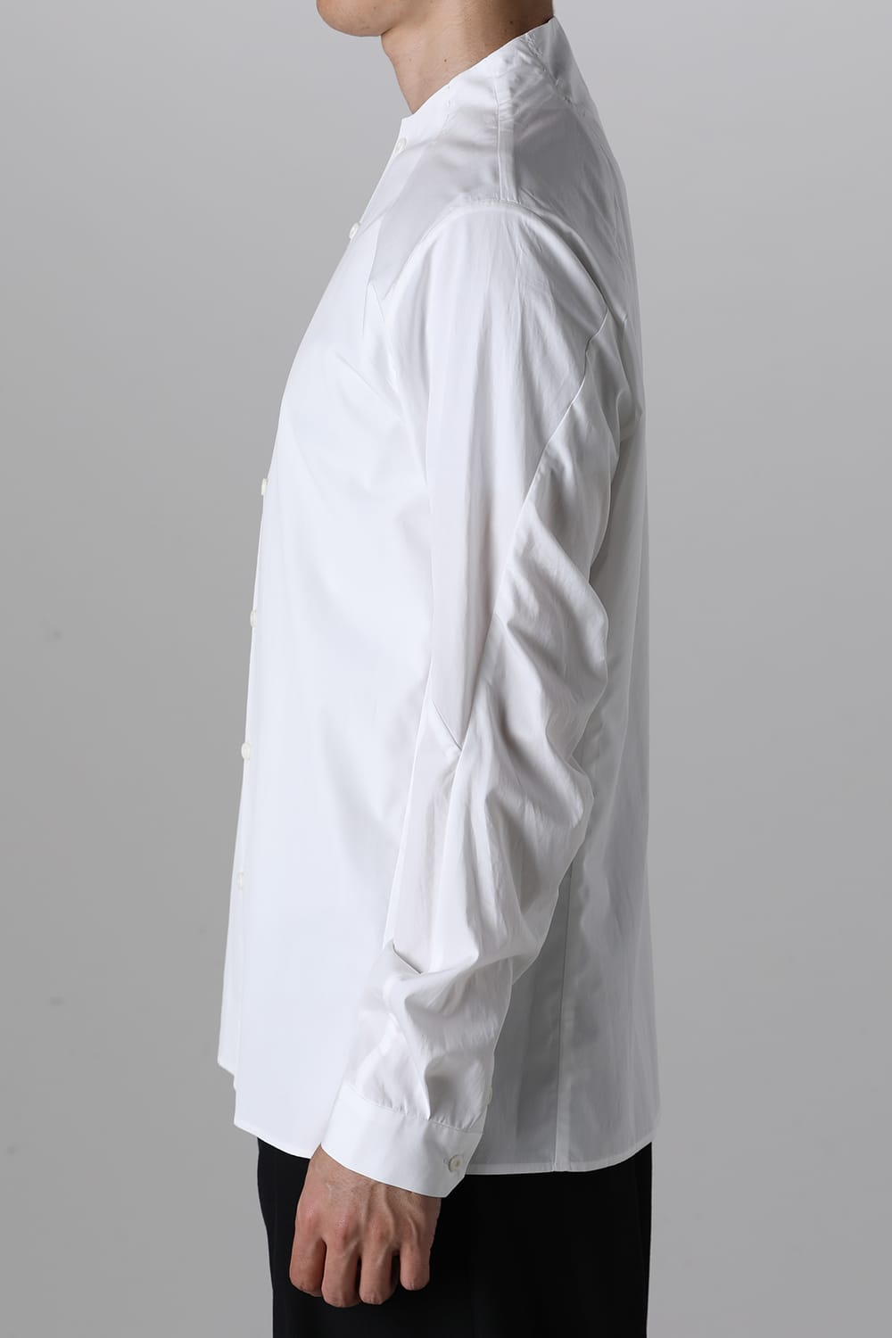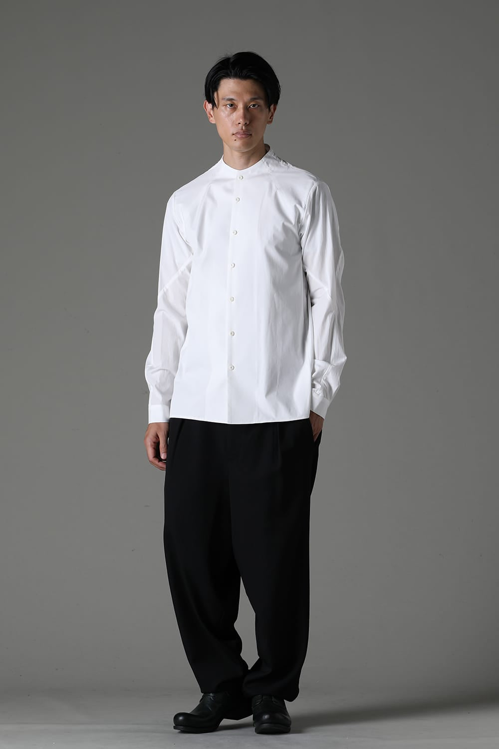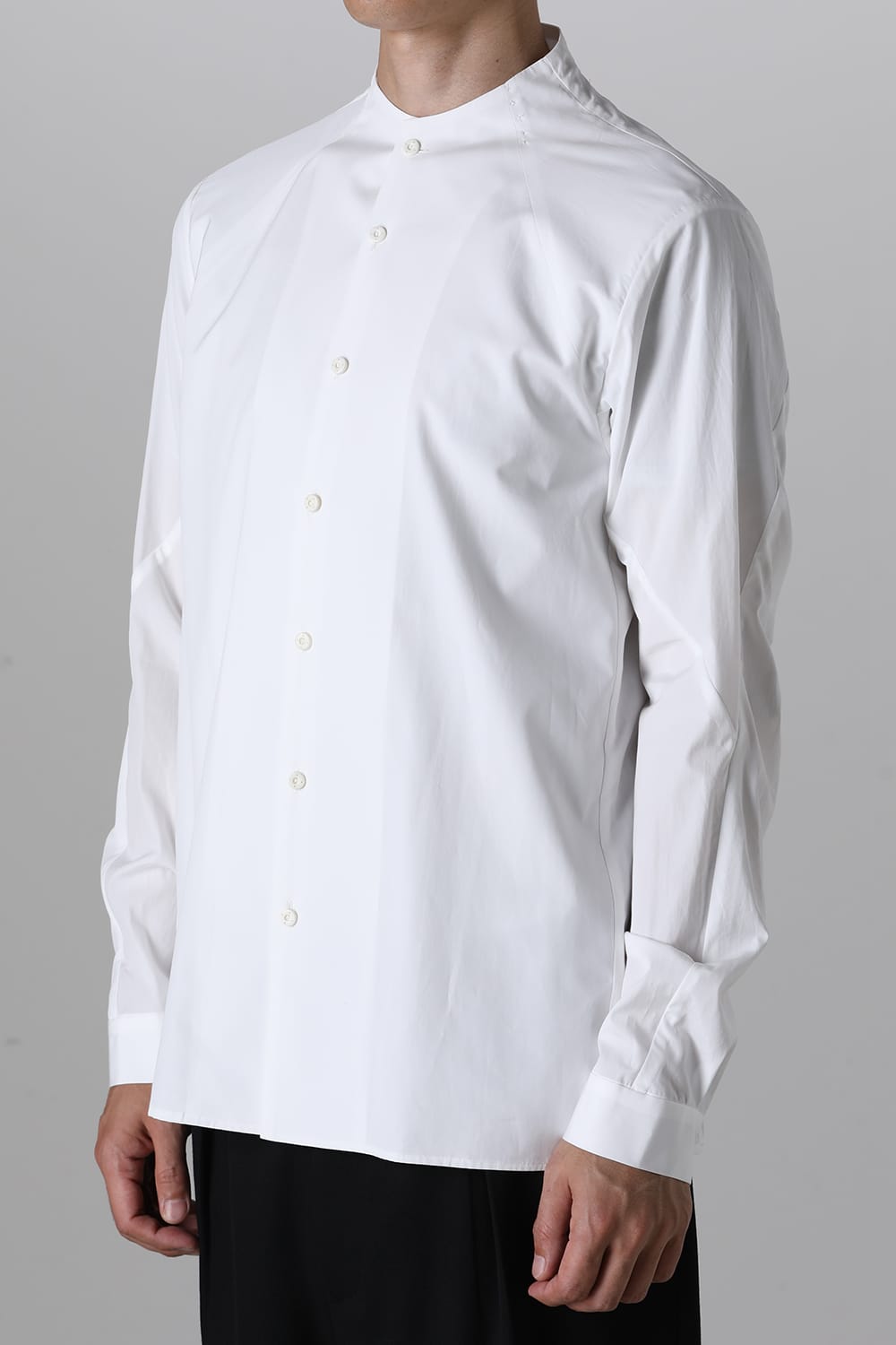 レギュラーフィットで製作されたアナトミカルパターンのノーカラーシャツ。