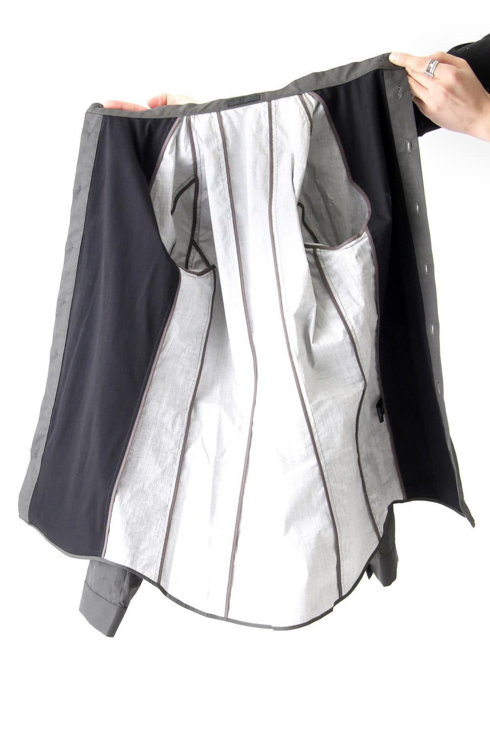 イタリア・OLMETEX 社で制作したコットンの生地にポリウレタンをプリントを施した生地を使用。 加工によって独特の風合いとドライなタッチが楽しめ、ドライタッチな生地感は発汗によっても損なわれることなく持続します。