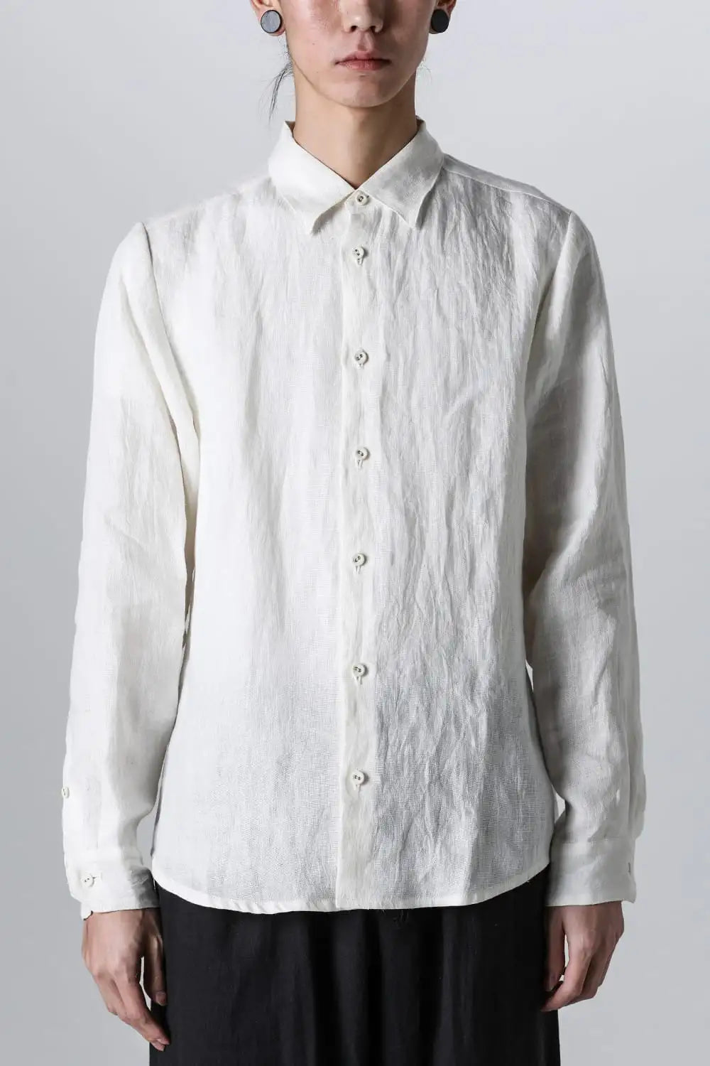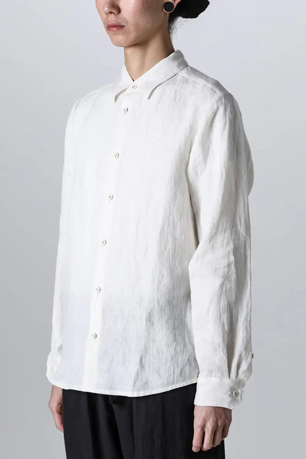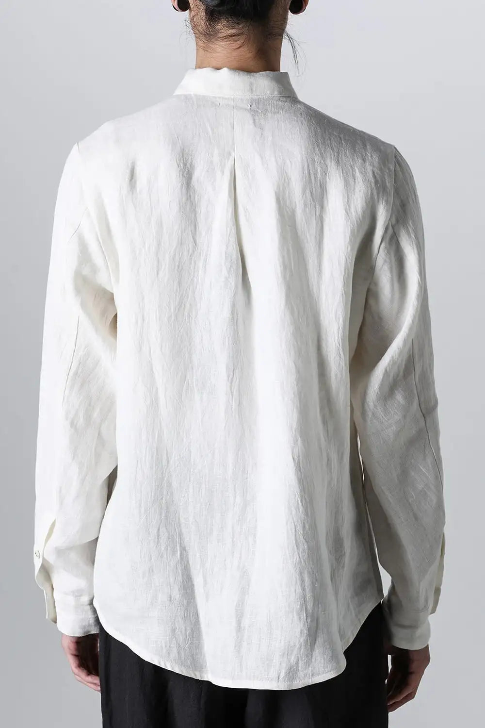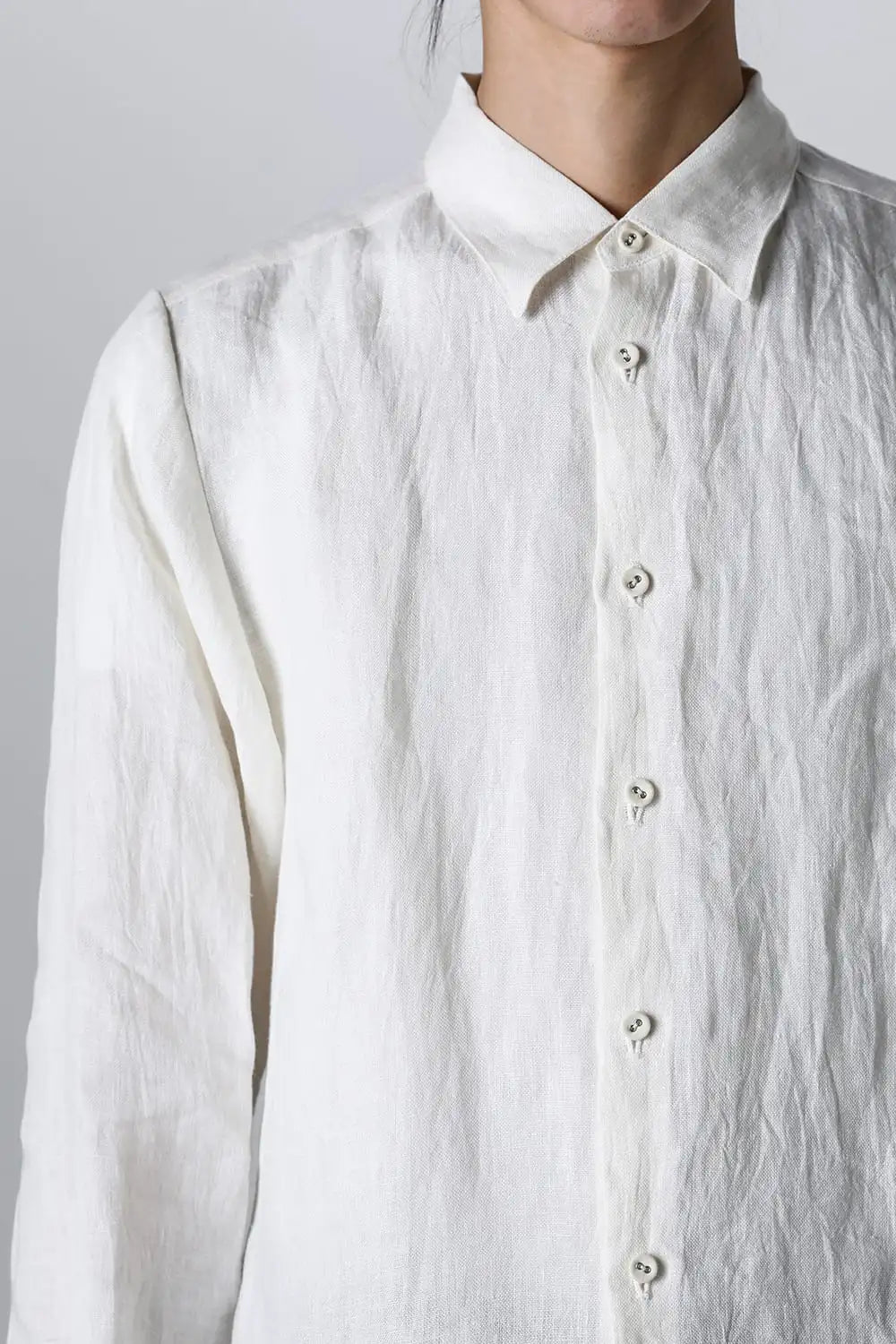 シンプルなデザインのヨークレス リネン シャツ。 な生地に洗いをかけ、こなれた雰囲気を作っているので、普段使いにも最適です。 生地は味のある手織りリネン。