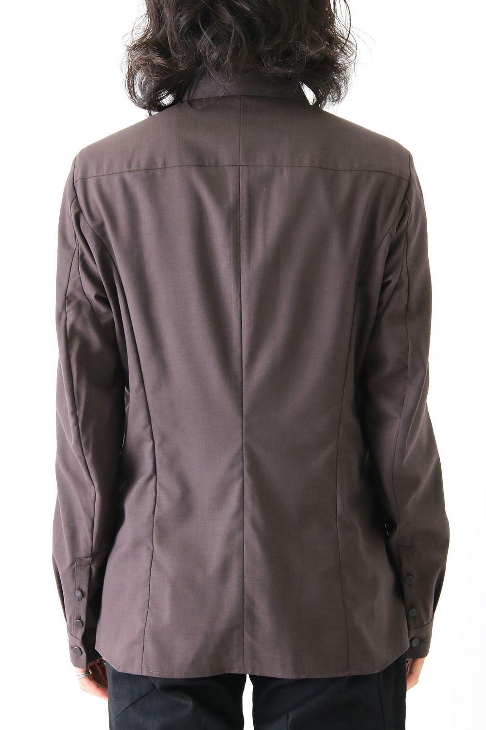 Wool スーパー100’s の細番手の糸を超強撚することで、糸にナチュラルストレッチを持たせたDEVOA定番生地で製作されたツイル生地のフロントジップの比翼シャツです。