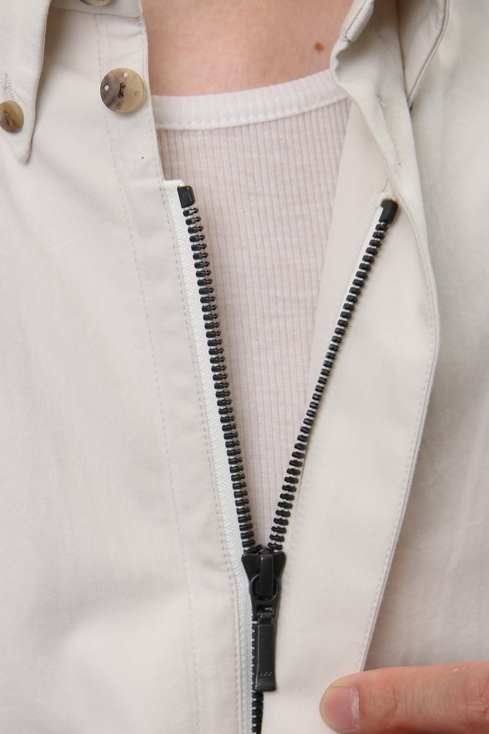 エジプト綿と、シーアイランドコットンを交配し、 改良を重ねて生まれたFINX種を使用。繊維の長さ、強さ、繊細さは、他のコットンに比べてとてもすぐれています。 シルエットはレギュラーフィット、フロントは比翼でファスナー仕様です。 カラーはBlack、white Gray、Dark Khakiの3色展開です。