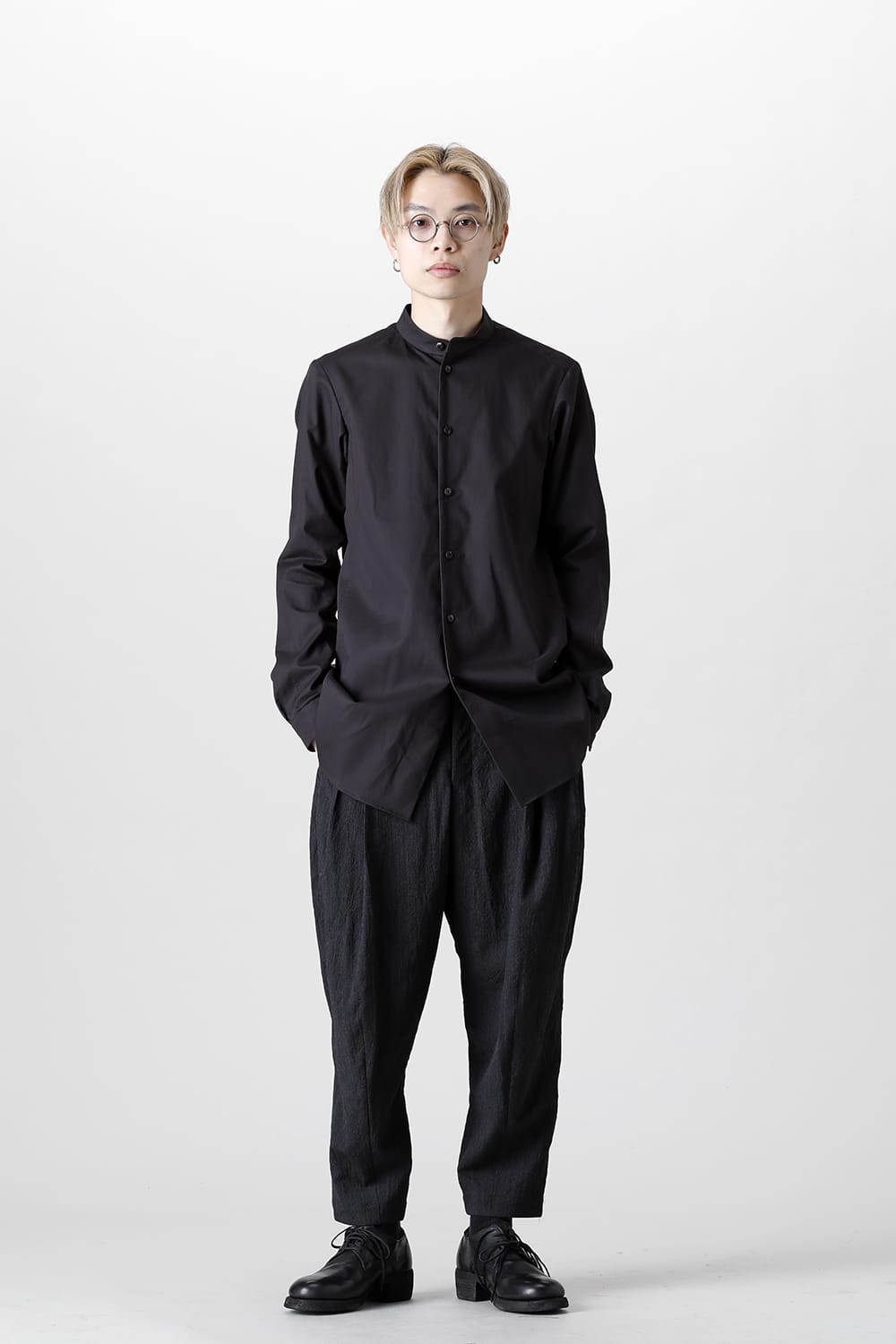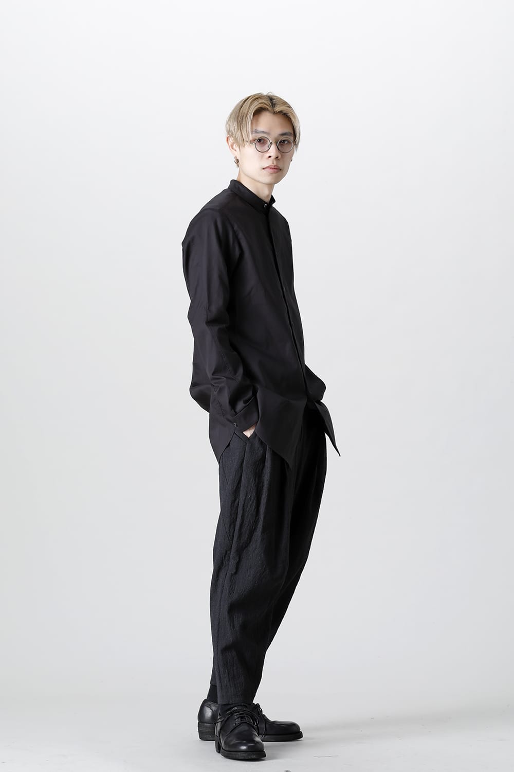 シャツ 200/2 コットン ダブルウィーブ ブラック