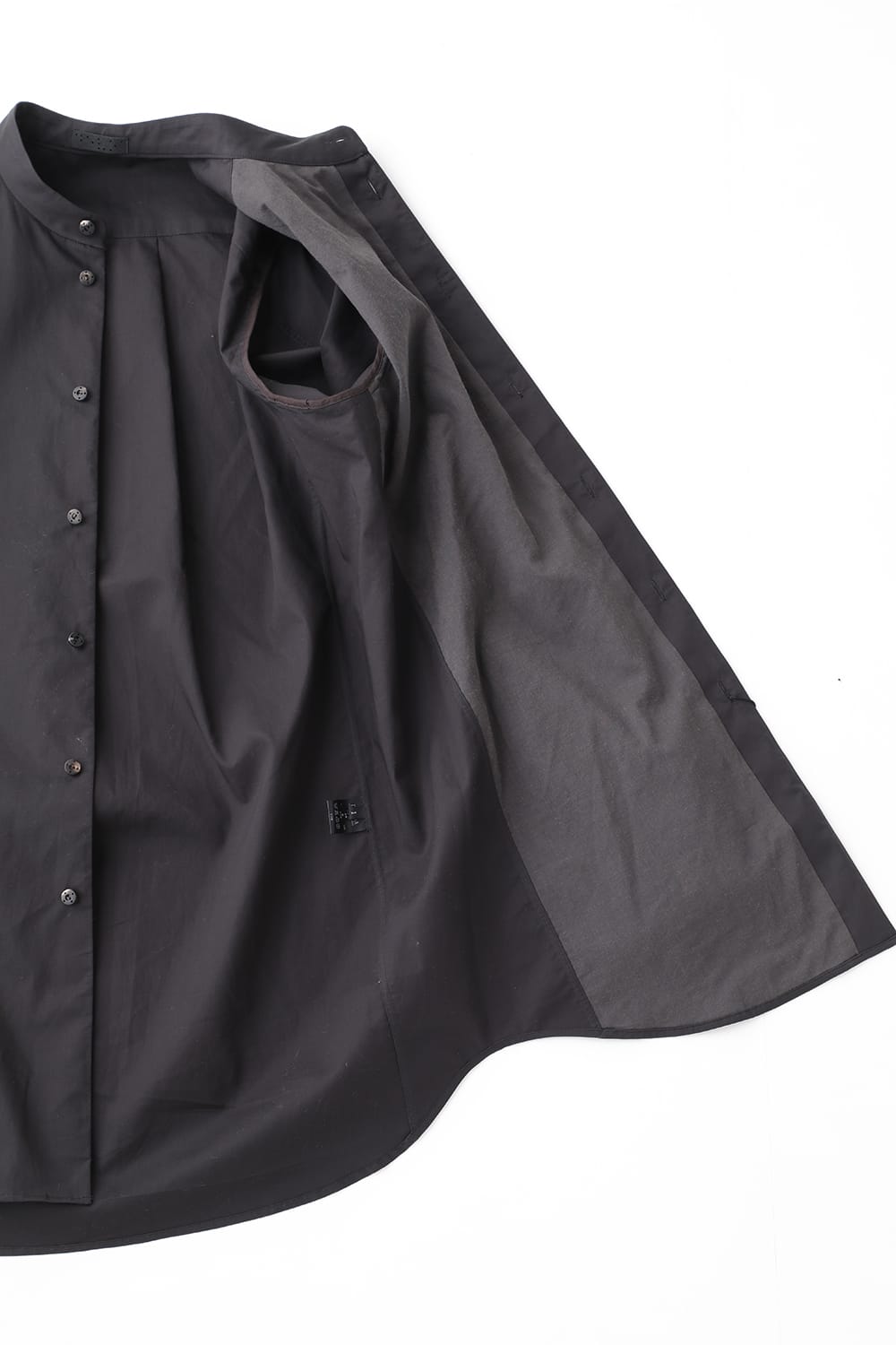 通常、細番手では細かい皺が付きアイロンでのケアが大変ですがこの生地は生地にふくらみがあり透ける事が無く表面に特殊柔軟加工を施し皺が付きにくい様に仕上げています。