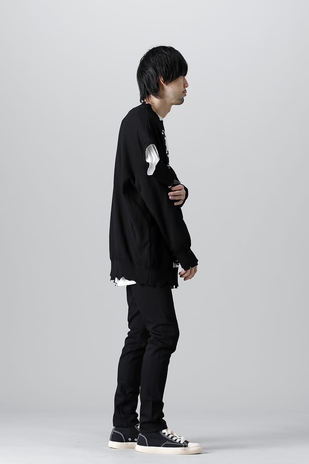 ルーズフィットで全体的に断ち切りデザインを用いるなどグランジ風のデザインを採用している。