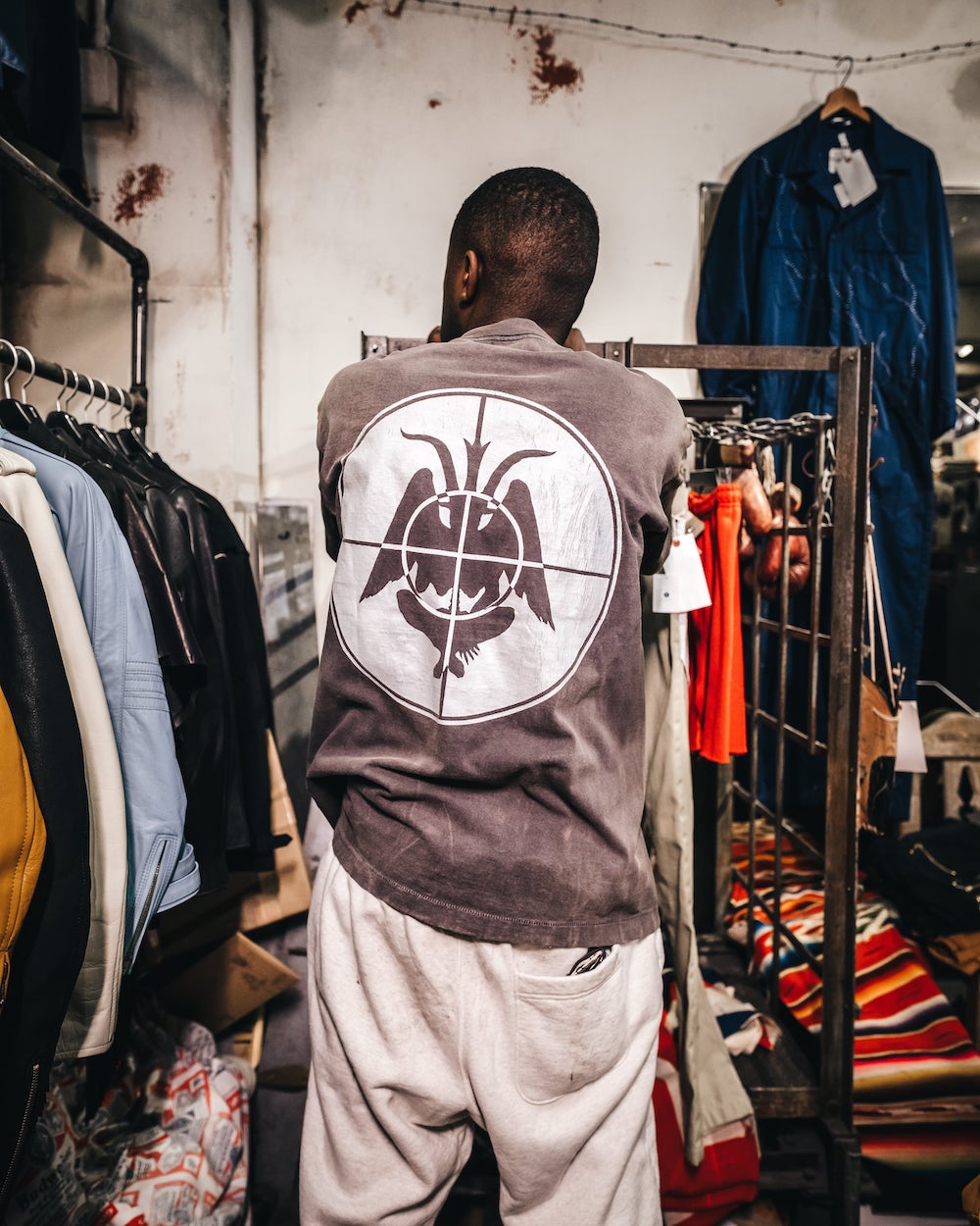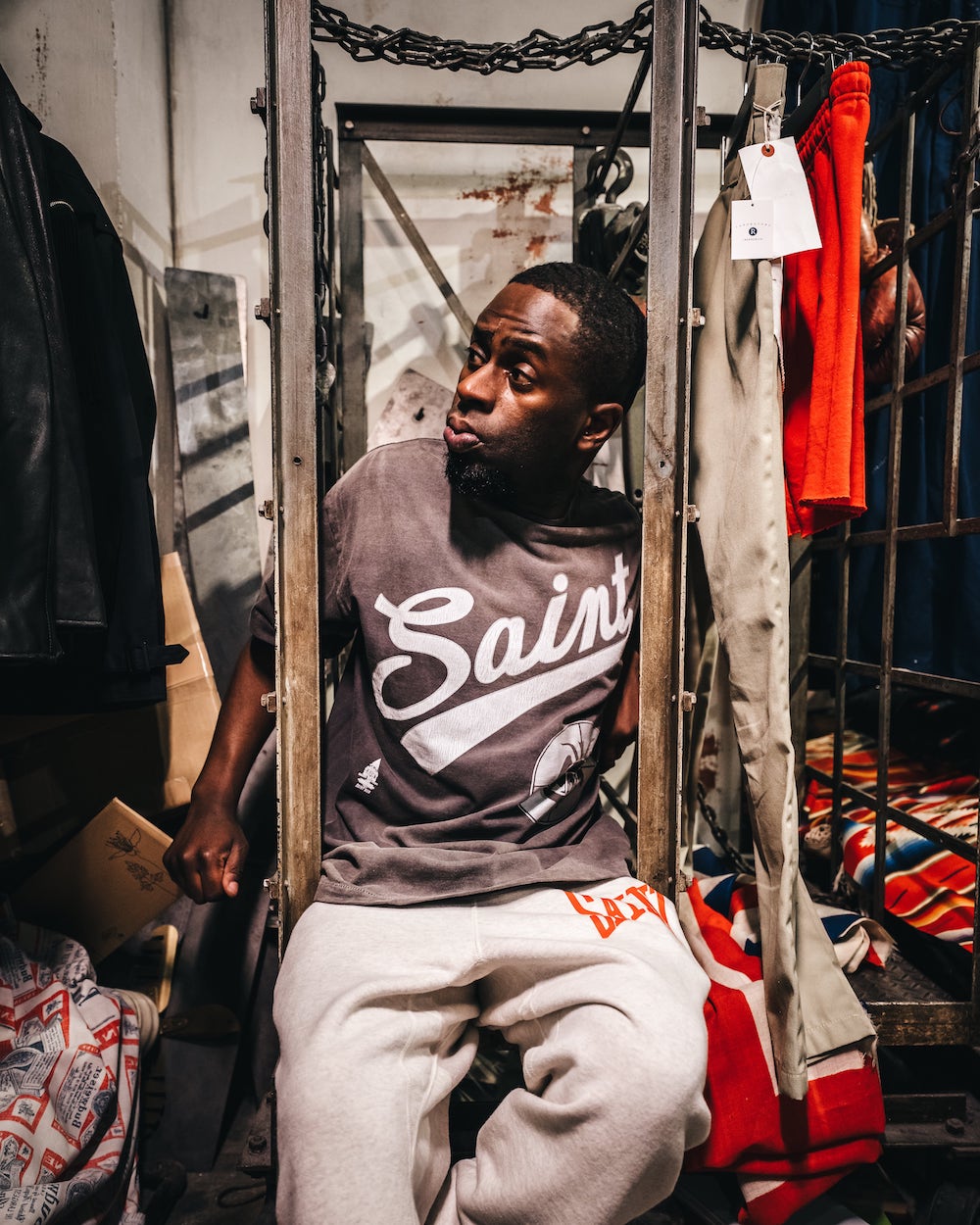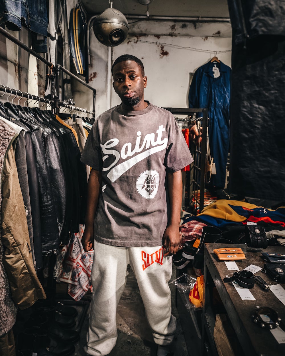 フロントとバックには大きくブランド名の「SAINT」の文字とターゲットマークのプリントを施しています。