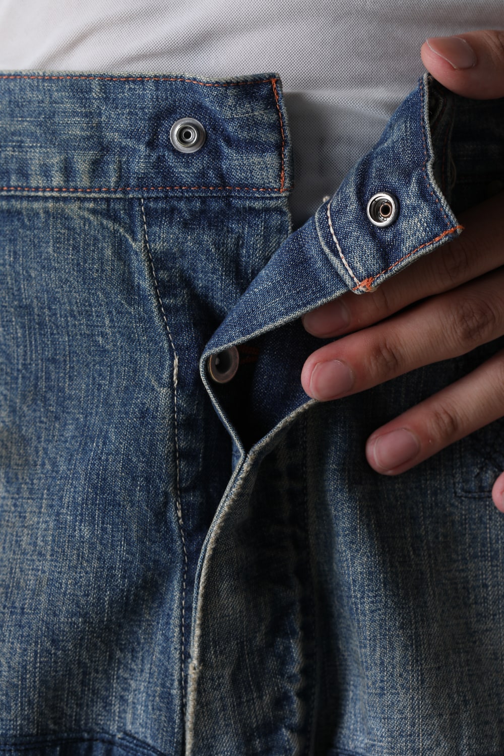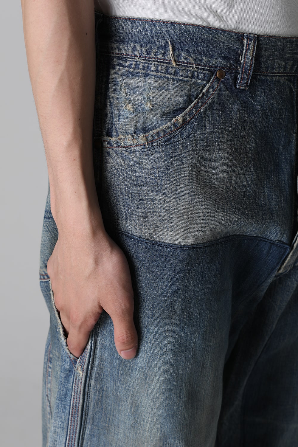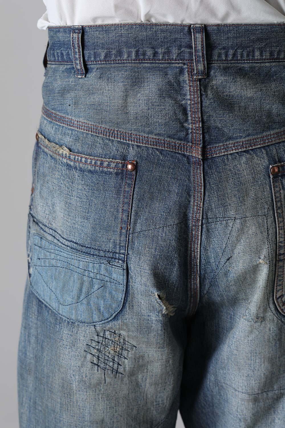 膝部分に当て布を二重に施した、ダブルニー仕様のデニムパンツ。