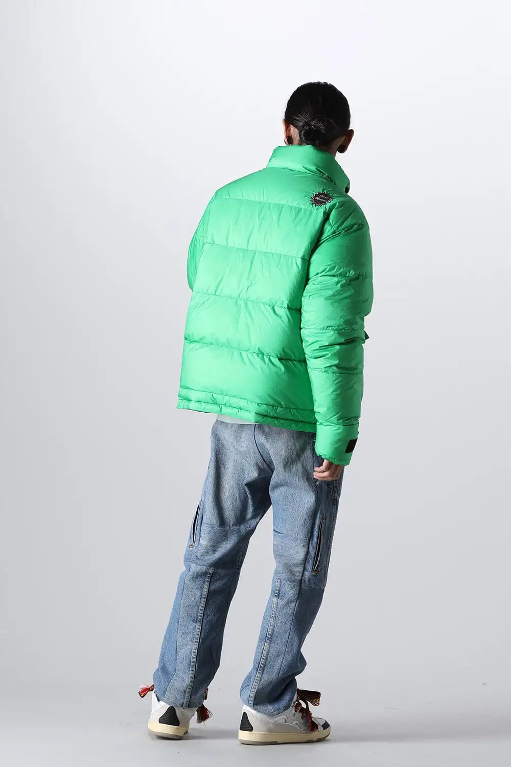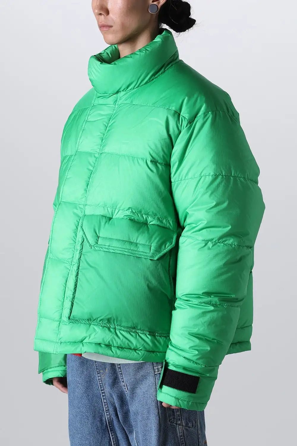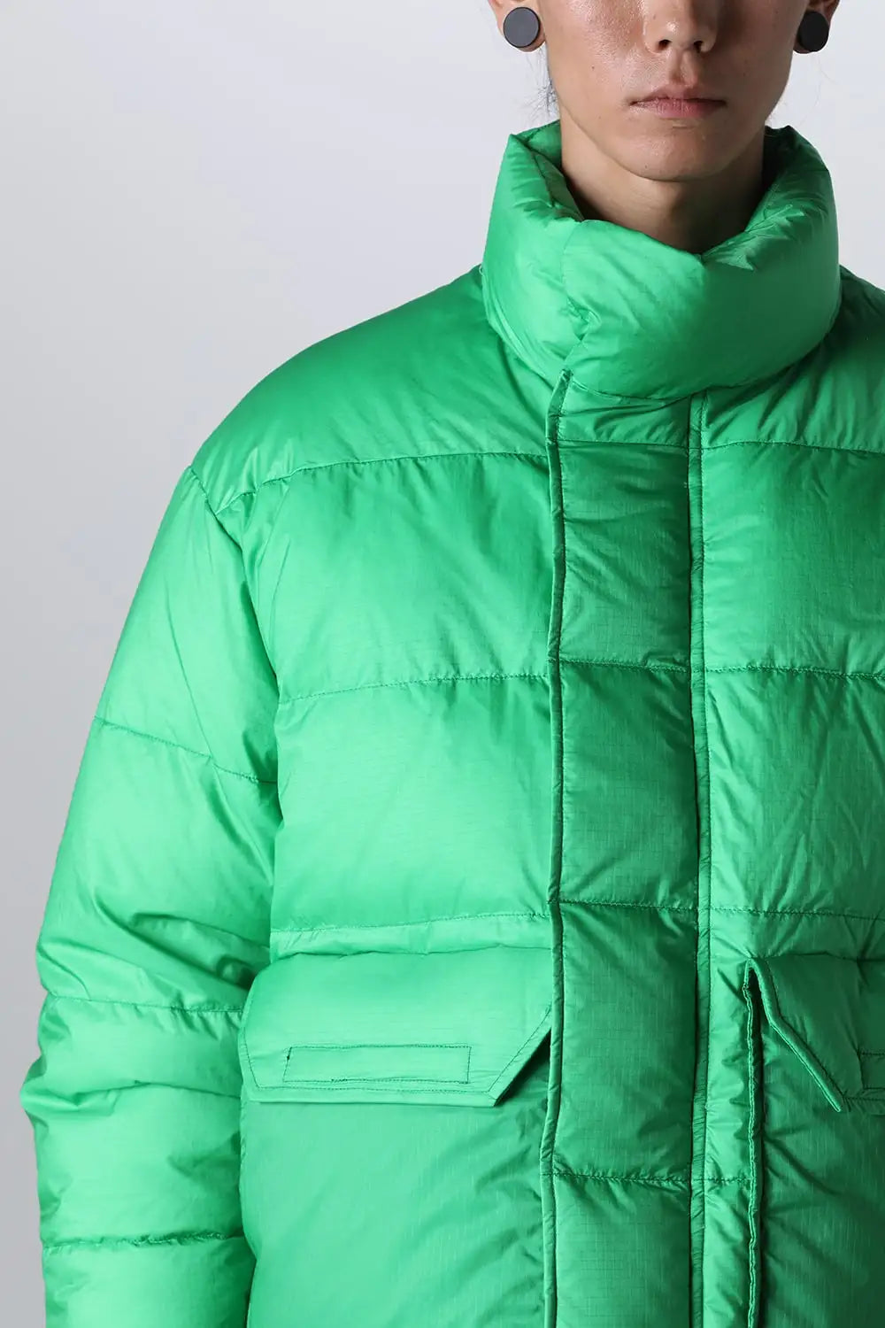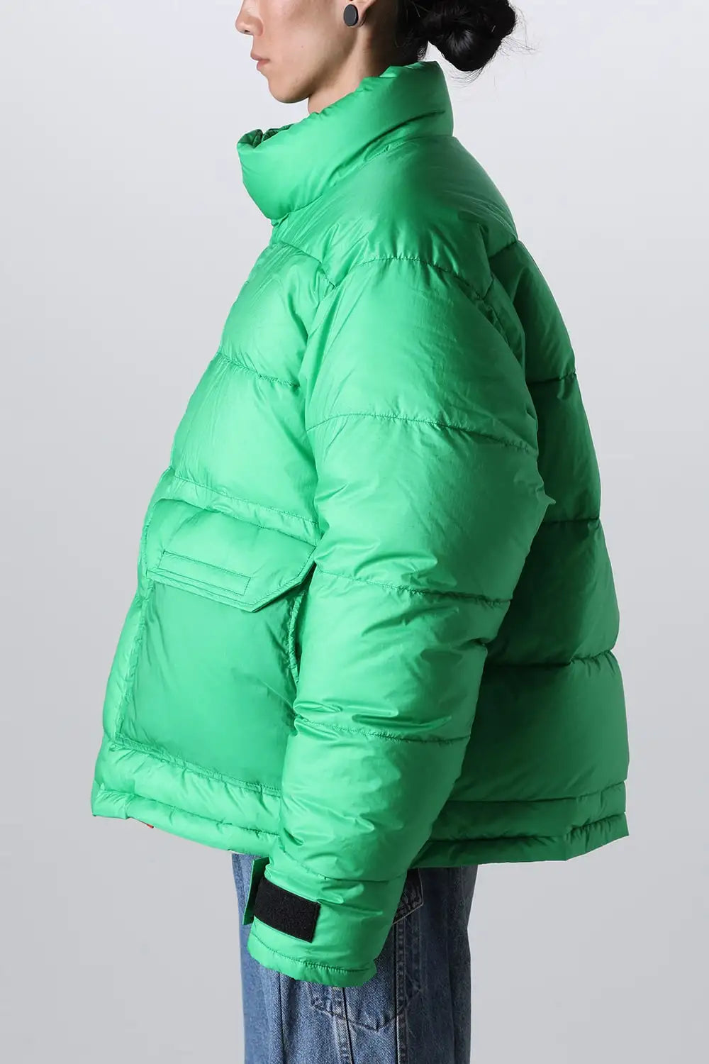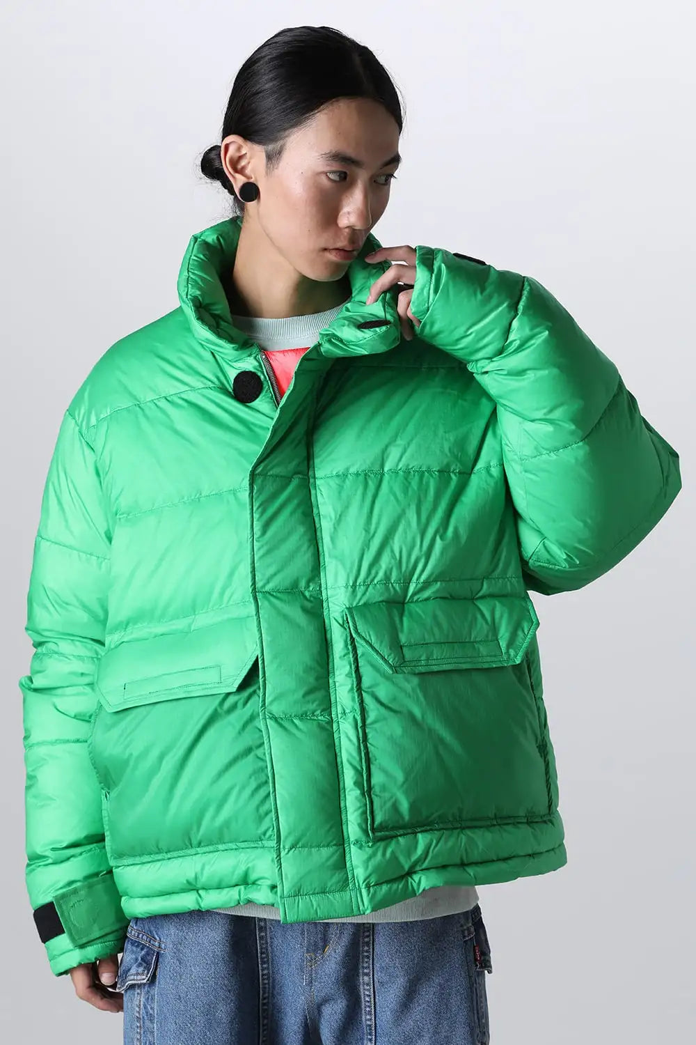 ボリューミーなフォルムに鮮やかなグリーンカラーを採用したブランド初めての展開となるダウンジャケット。