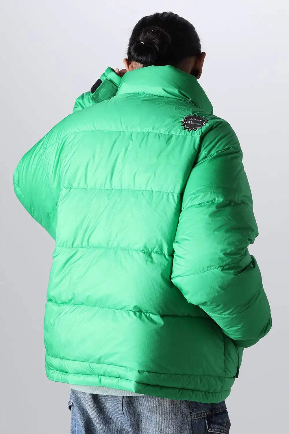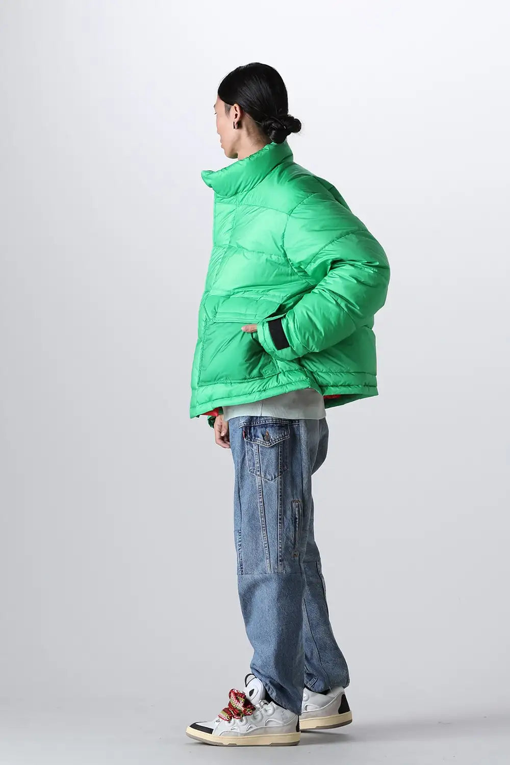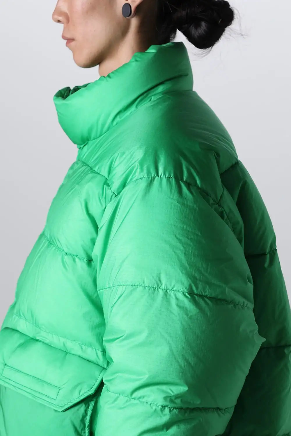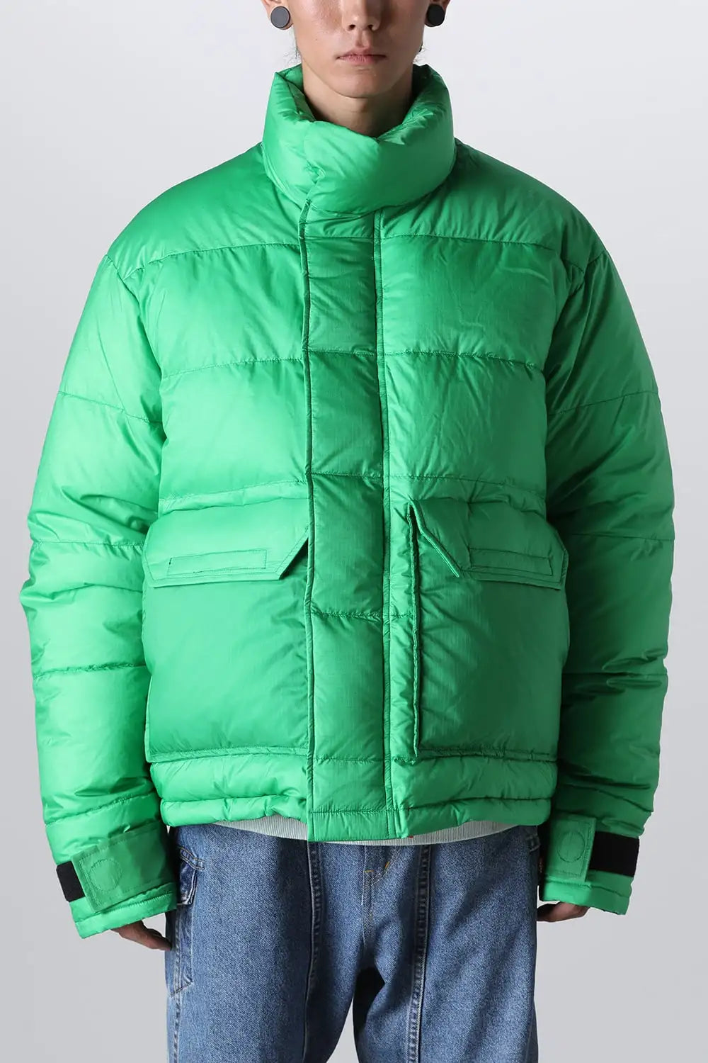 ボリューミーなフォルムに鮮やかなグリーンカラーを採用したブランド初めての展開となるダウンジャケット。