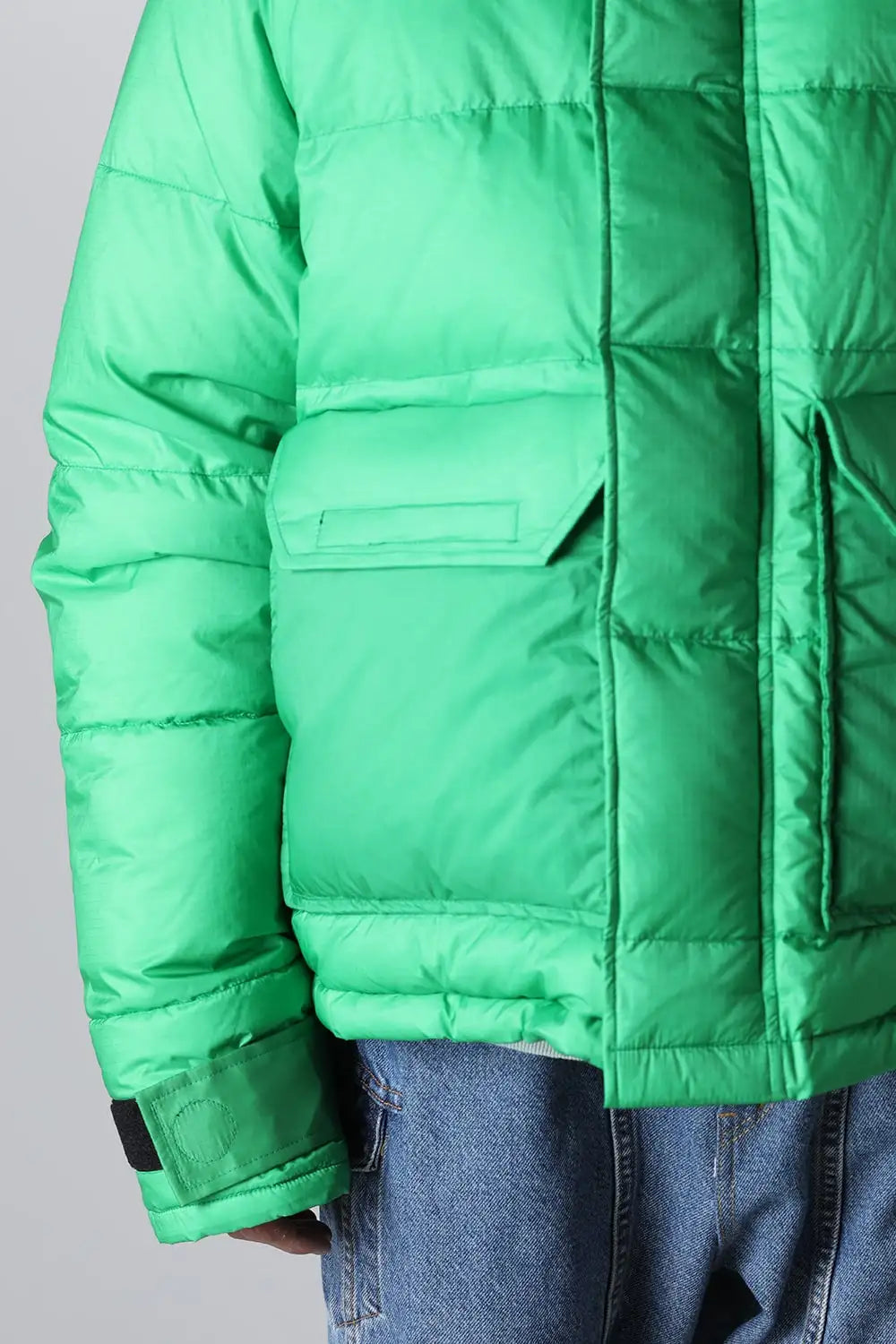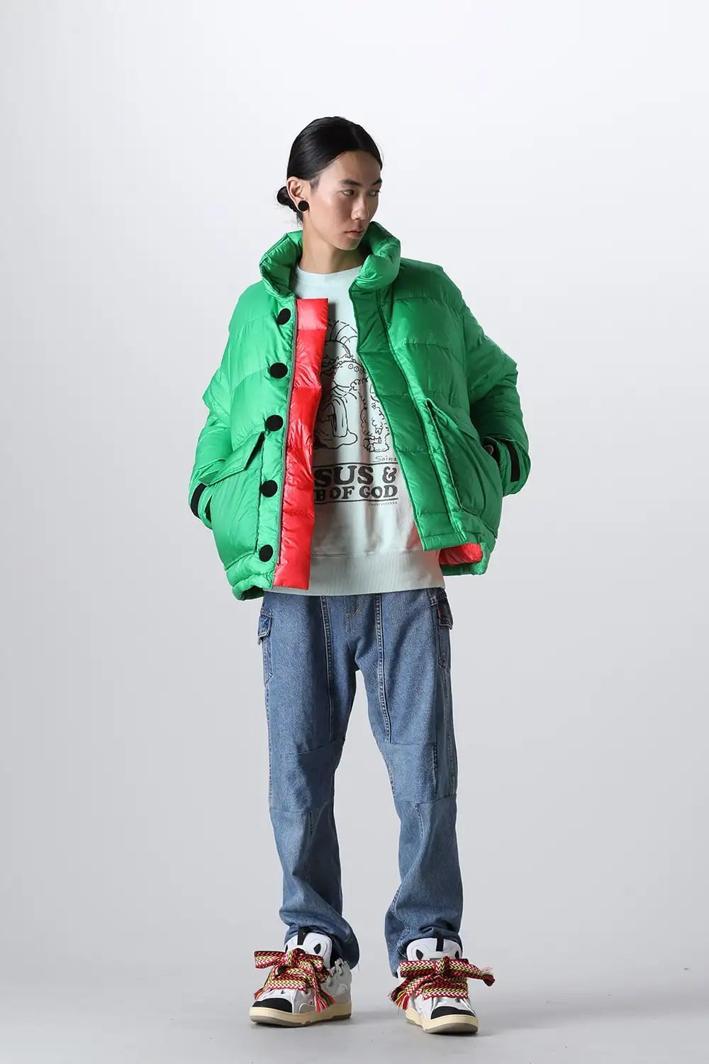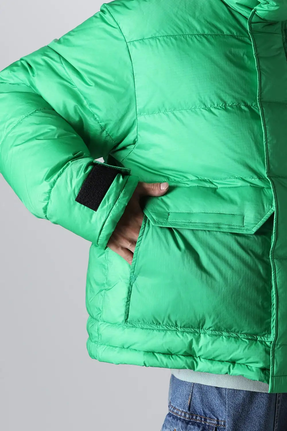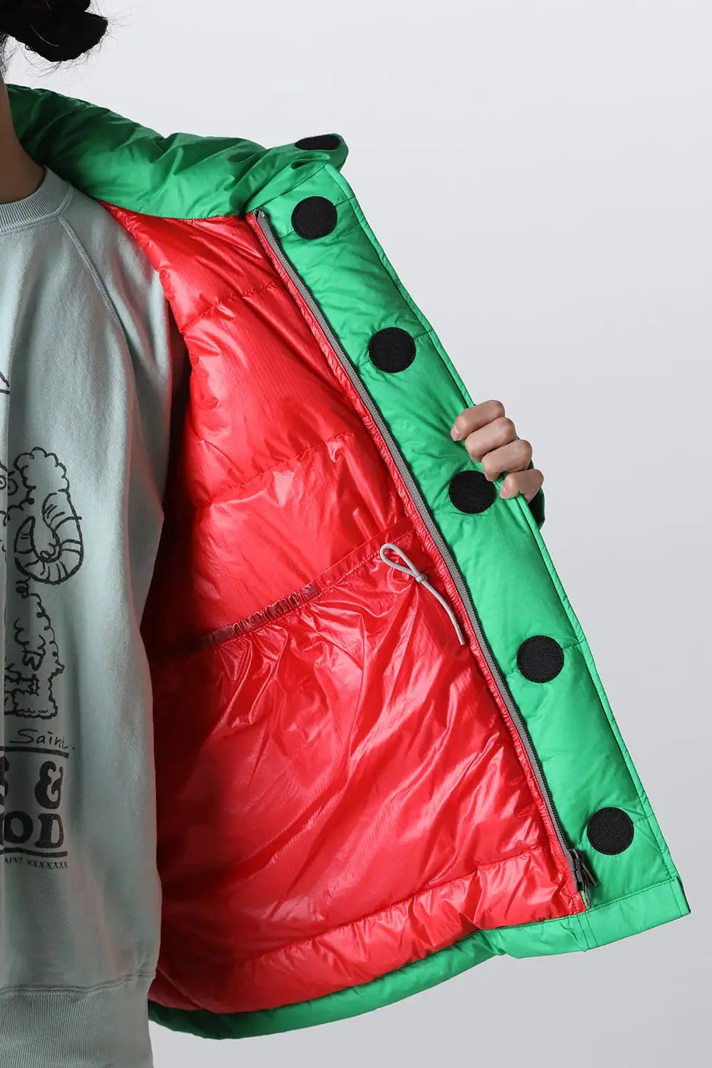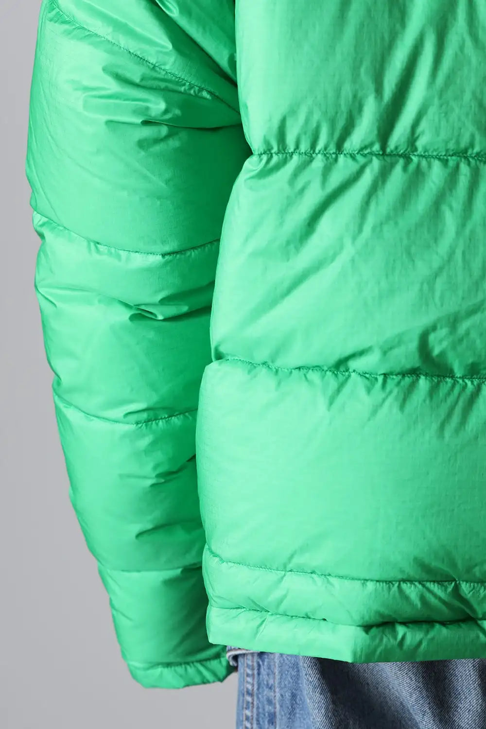 ボリューミーなフォルムに鮮やかなグリーンカラーを採用したブランド初めての展開となるダウンジャケット。