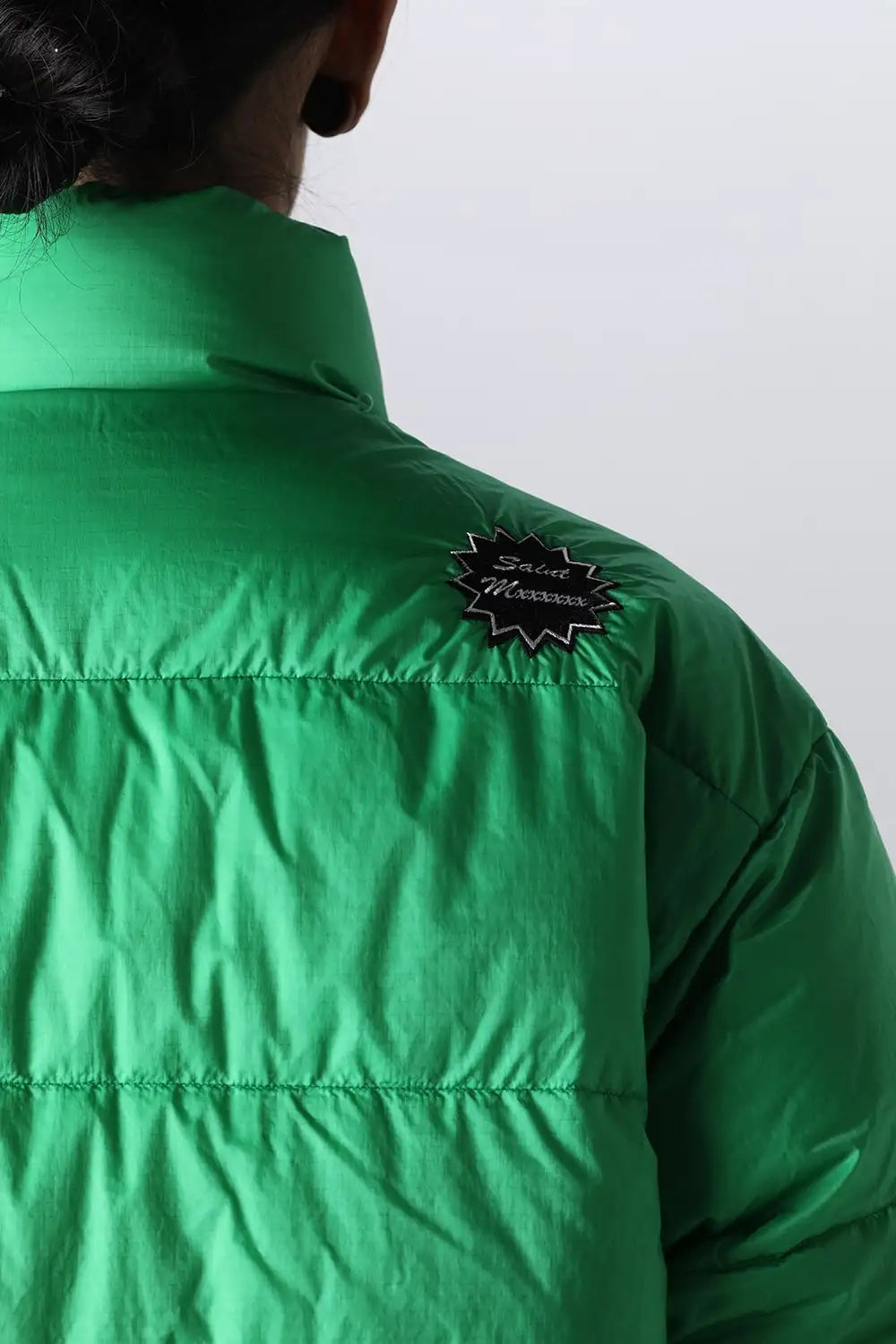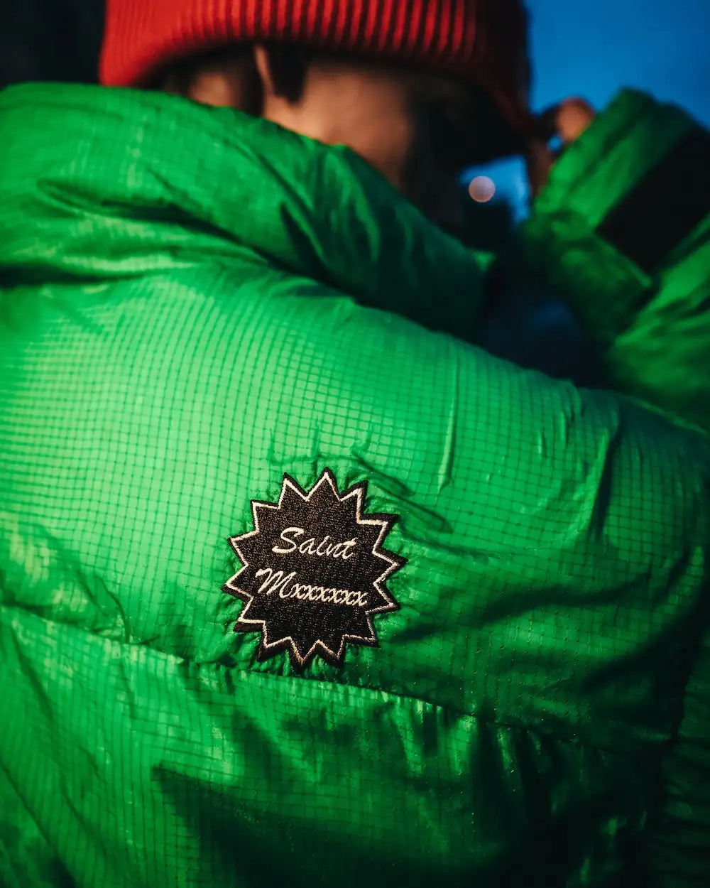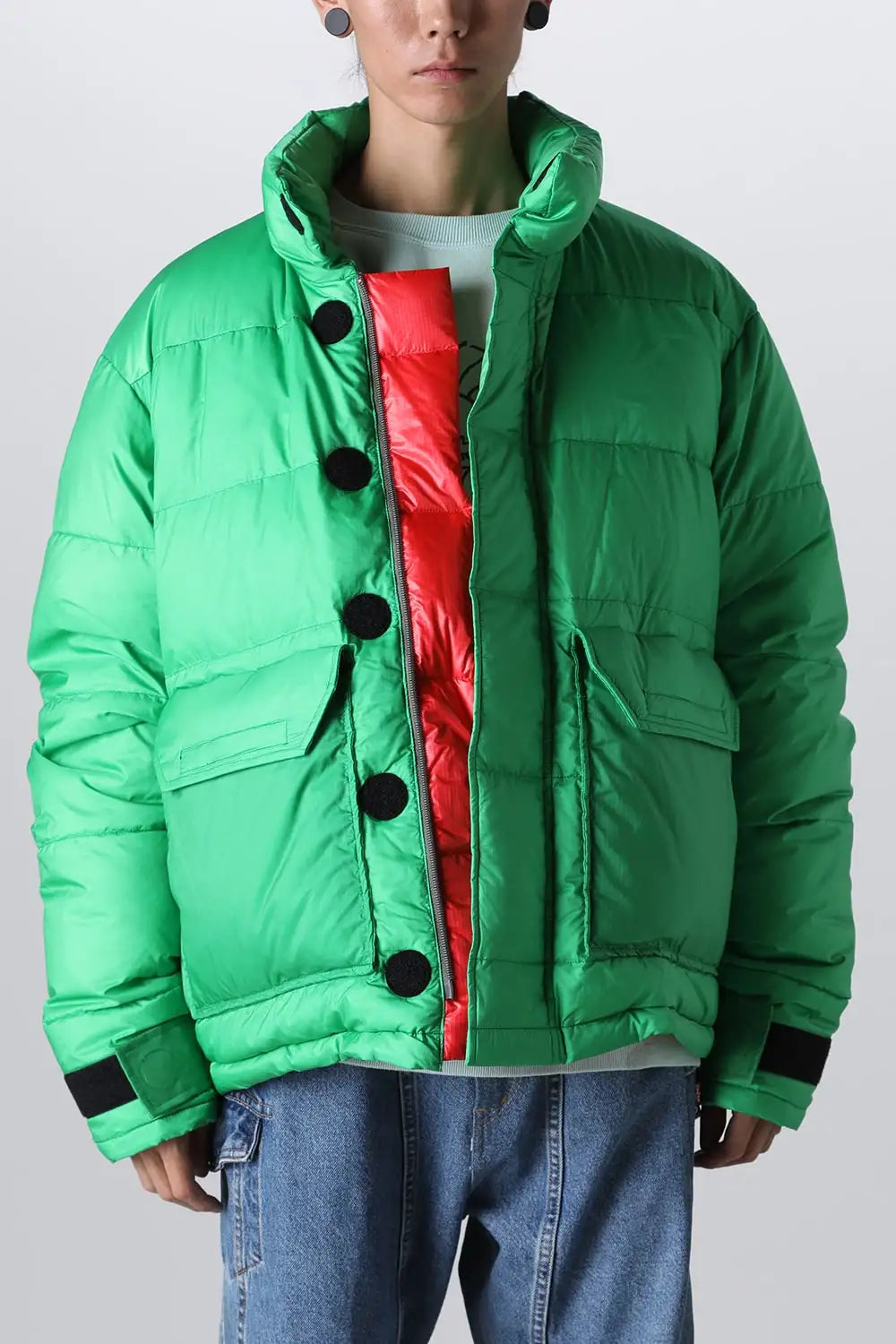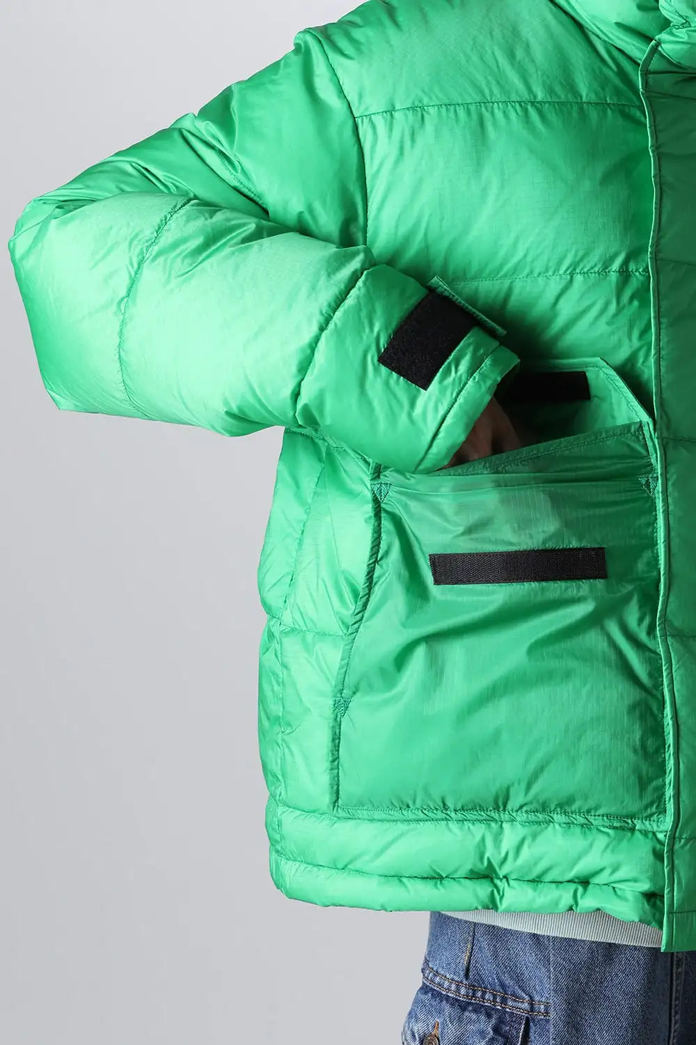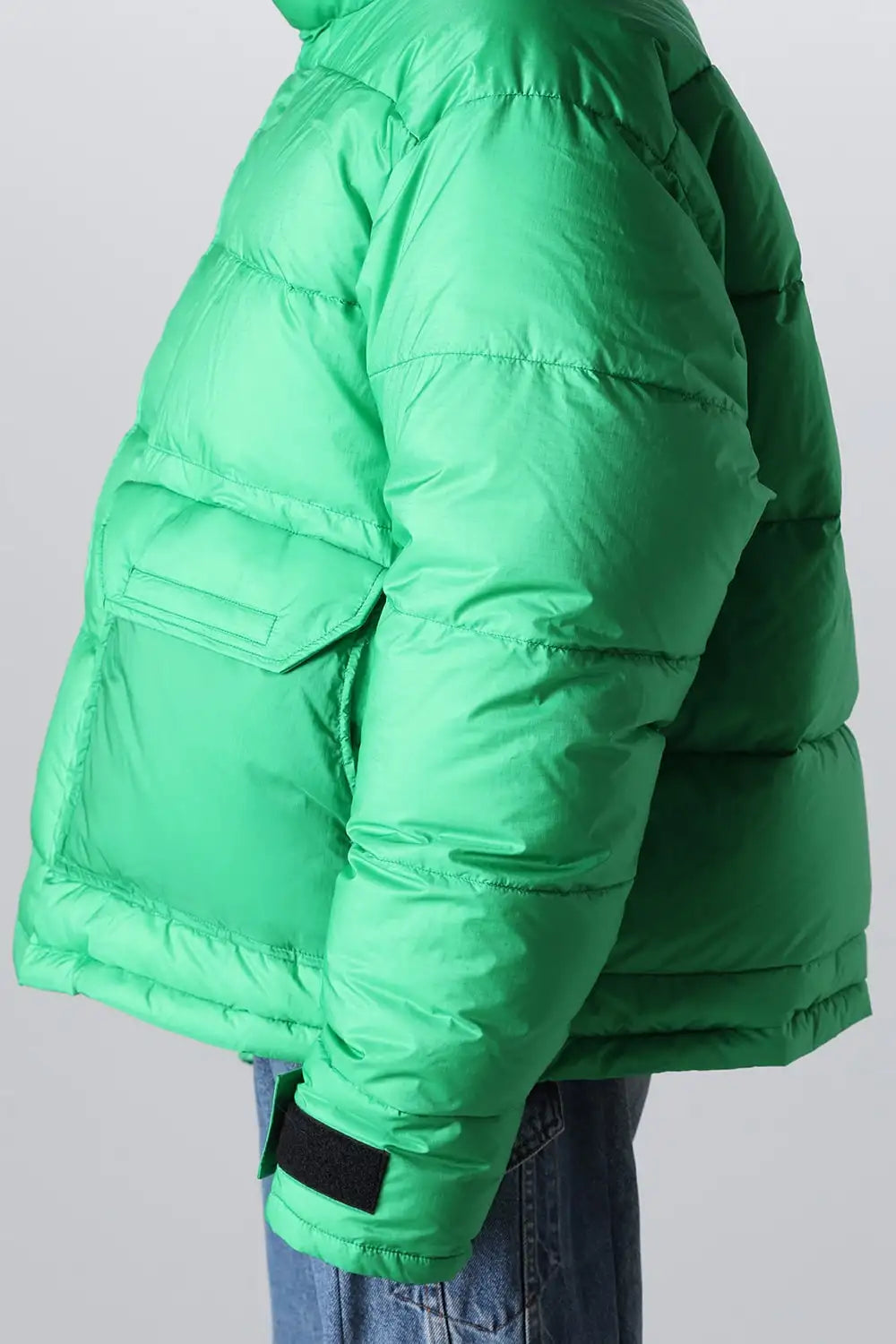 ボリューミーなフォルムに鮮やかなグリーンカラーを採用したブランド初めての展開となるダウンジャケット。