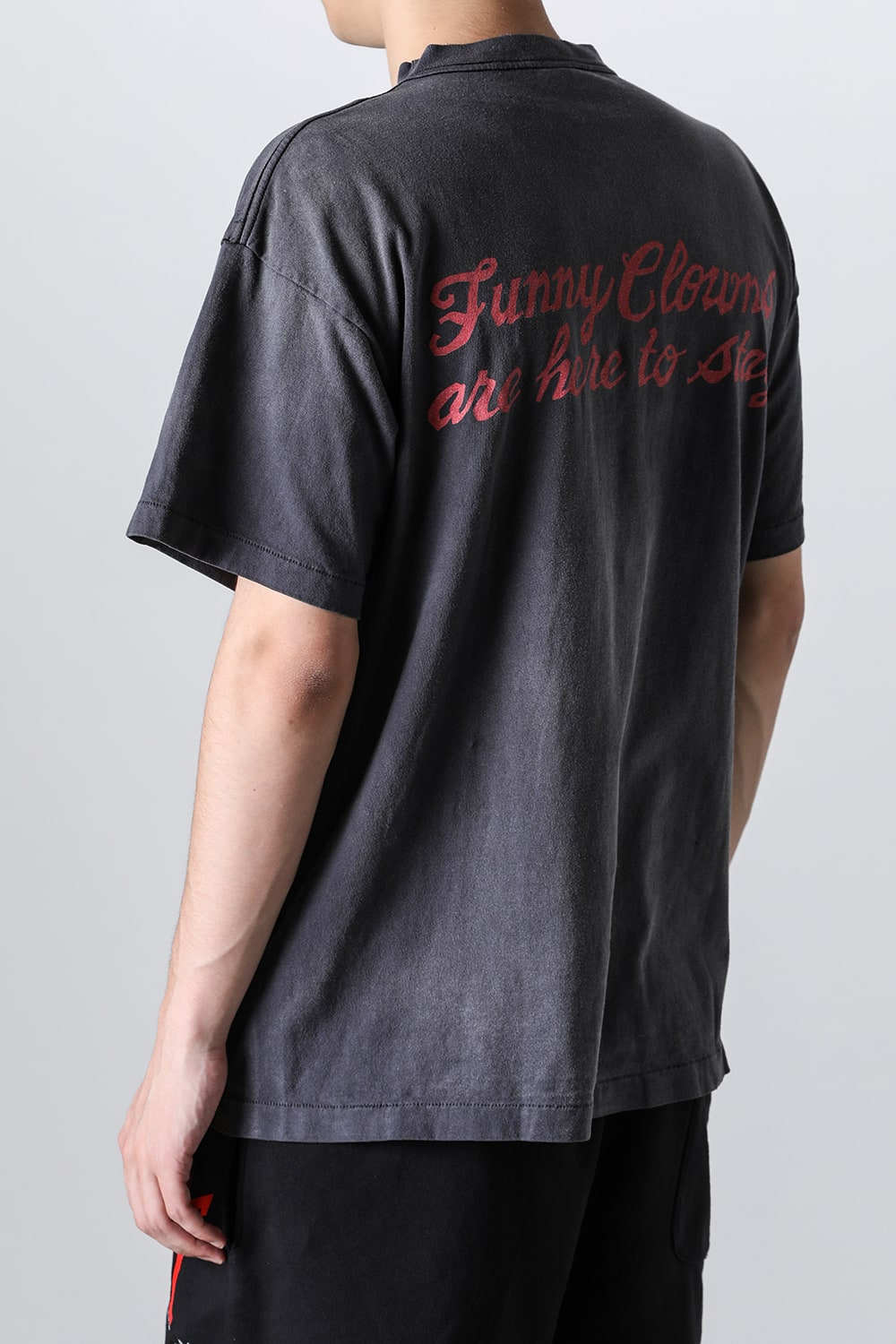 いばらの冠を被ったイエス・キリストにダーク印象を織り交ぜったグラフィックが魅力の半袖Tシャツ。