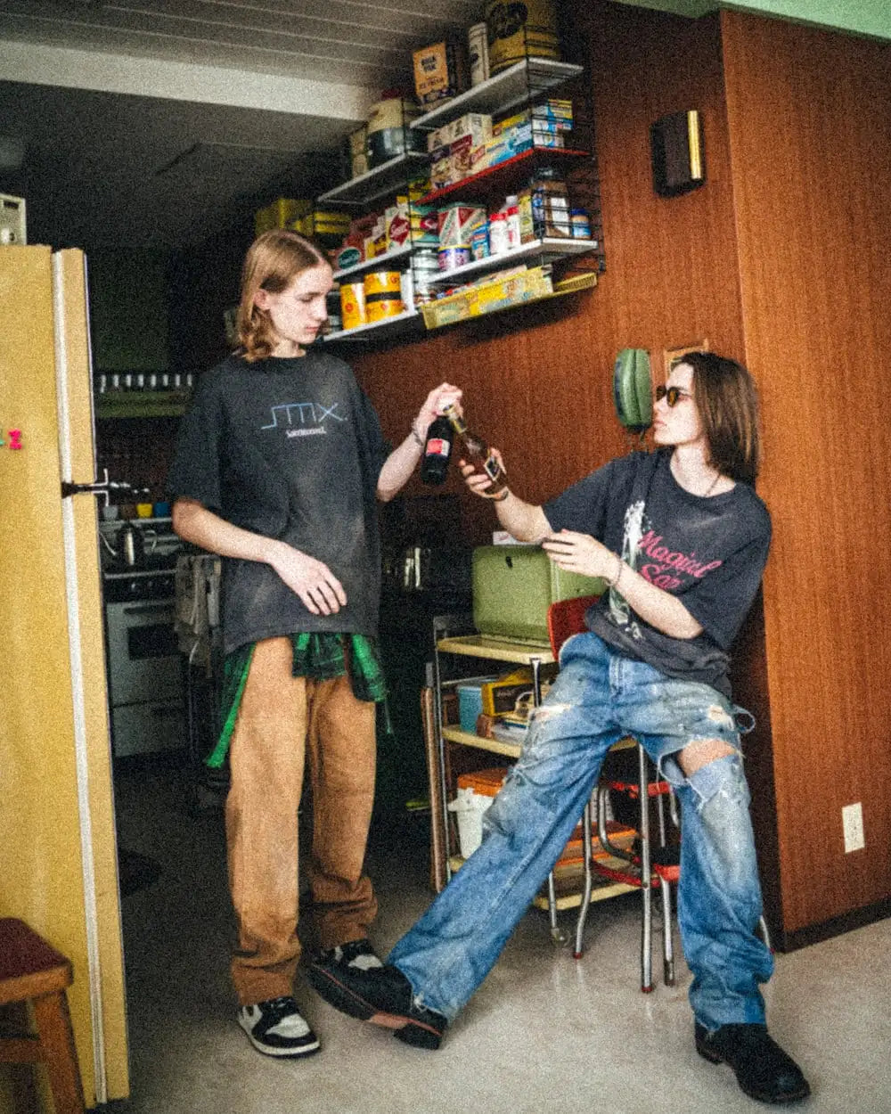 プリントは着たり洗ったりすると生地表面の毛羽立ちやプリント部分のひび割れが自然におき、よりヴィンテージの風合いをお楽しみ頂けます。
