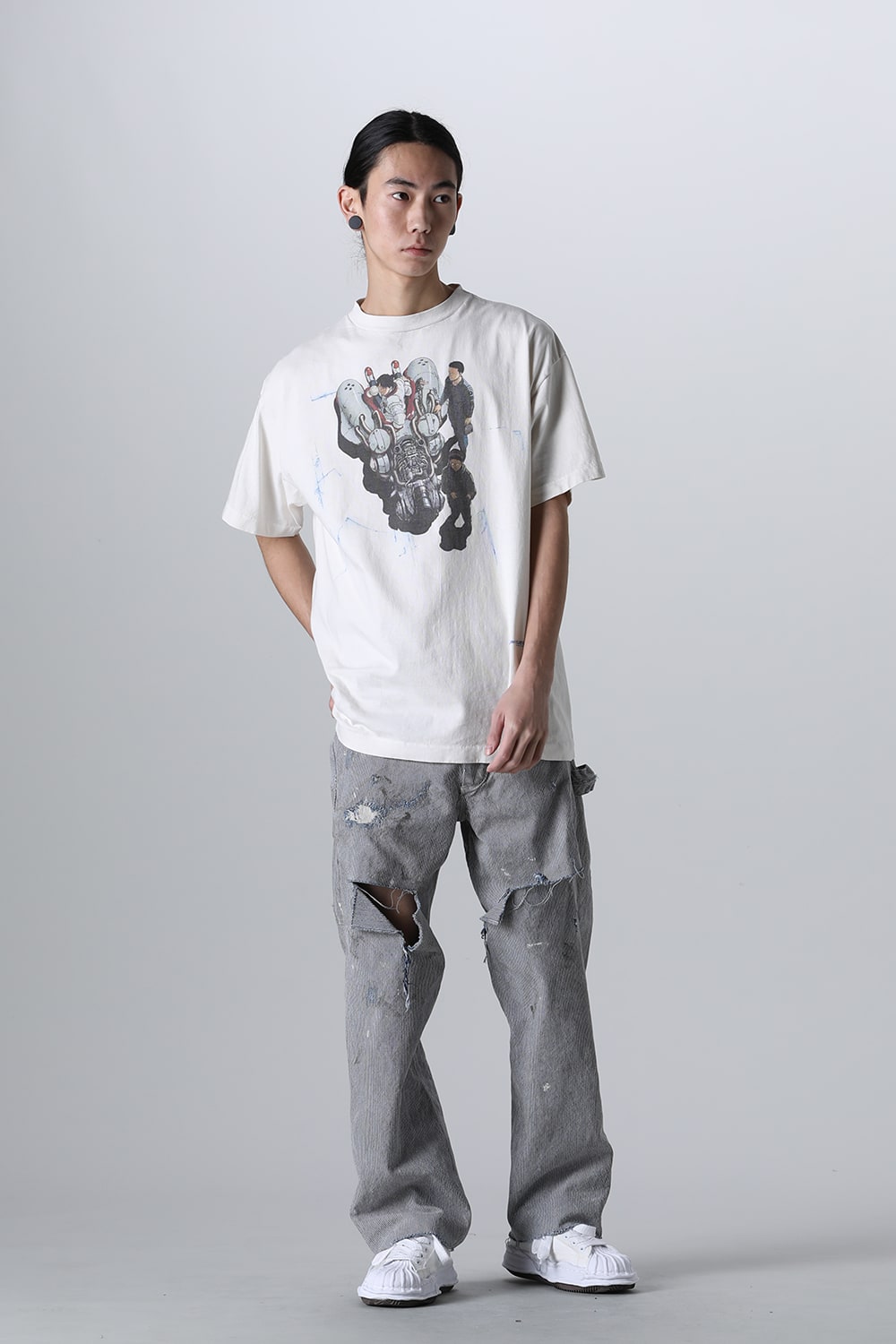 プリントは着たり洗ったりすると生地表面の毛羽立ちやプリント部分のひび割れが自然におき、よりヴィンテージの風合いをお楽しみ頂けます。