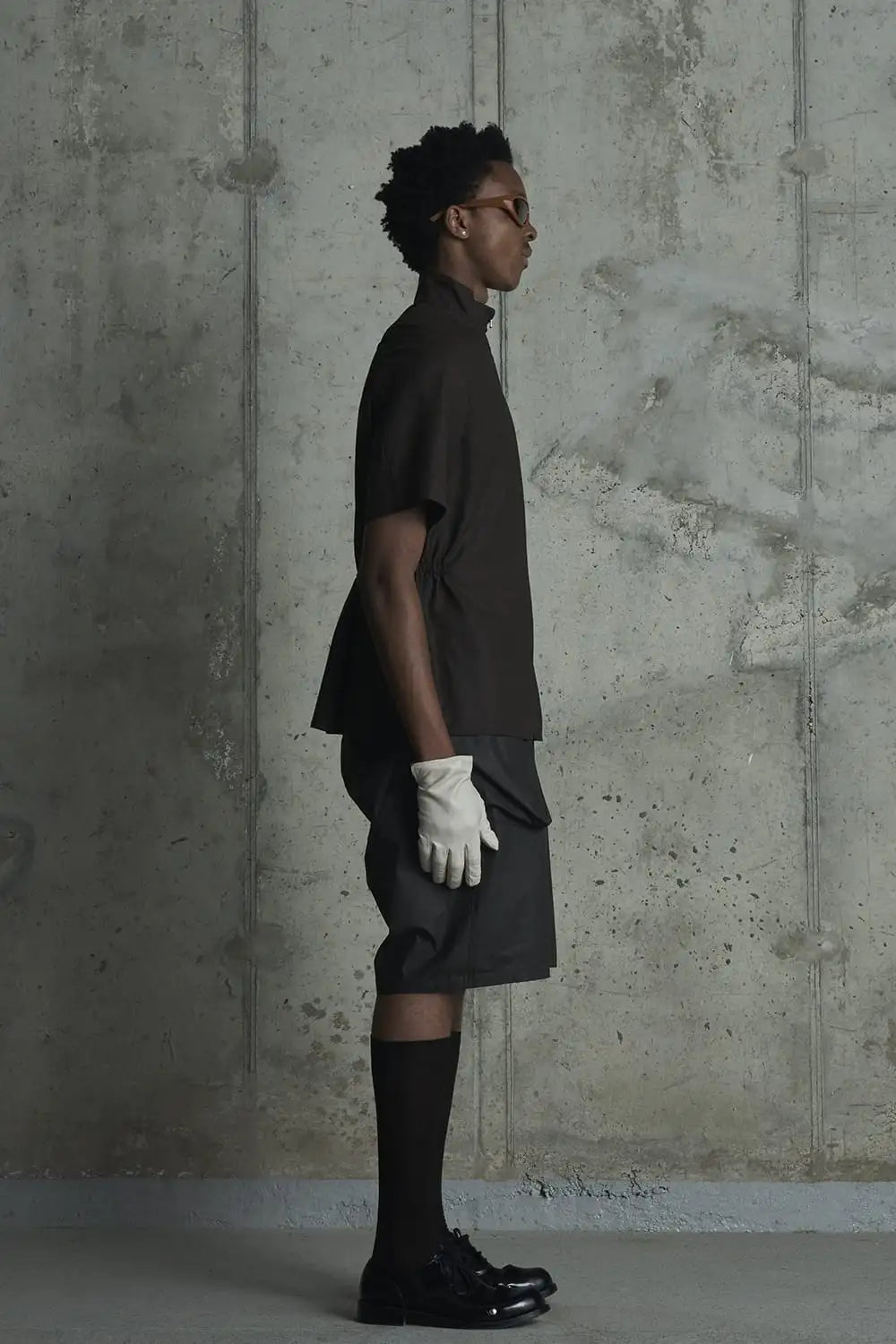 ・生地にはドライな質感のポリエステル 51% / トリアセテート 49%のシアー生地を使用し、ドレープ感も楽しめる仕様