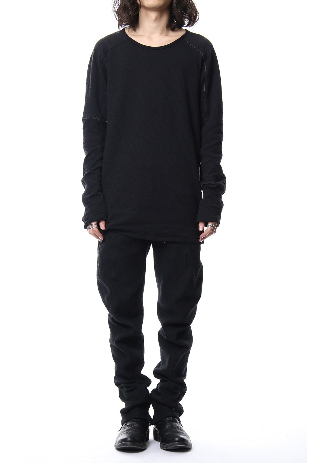 Double cloth cotton jersey overlock long sleeve T-shirt