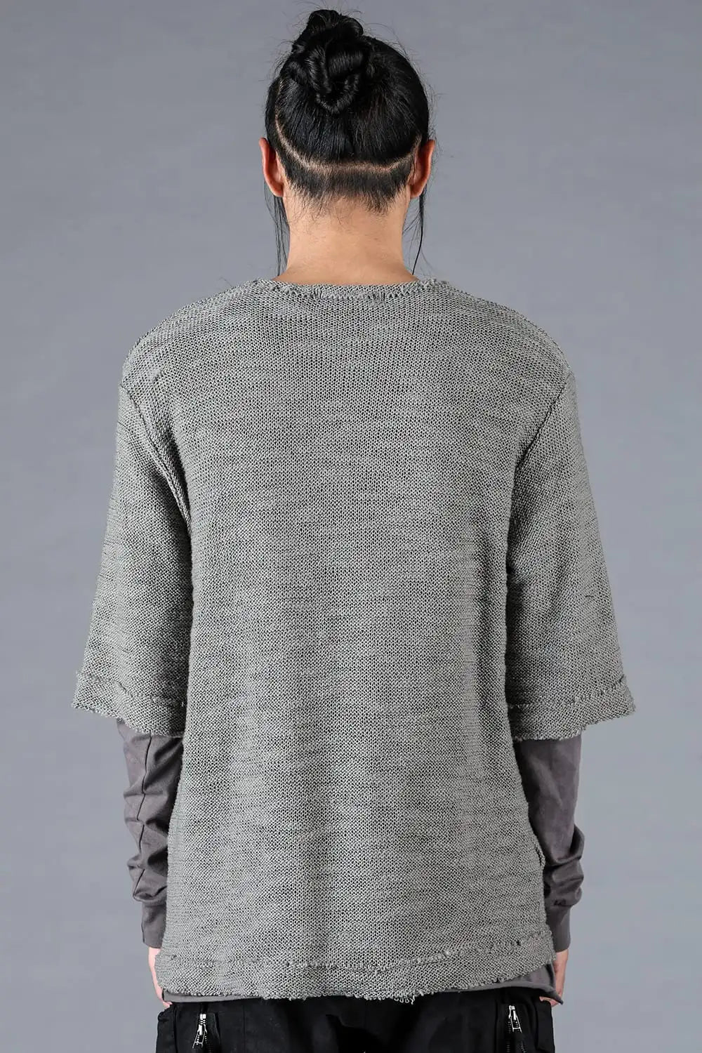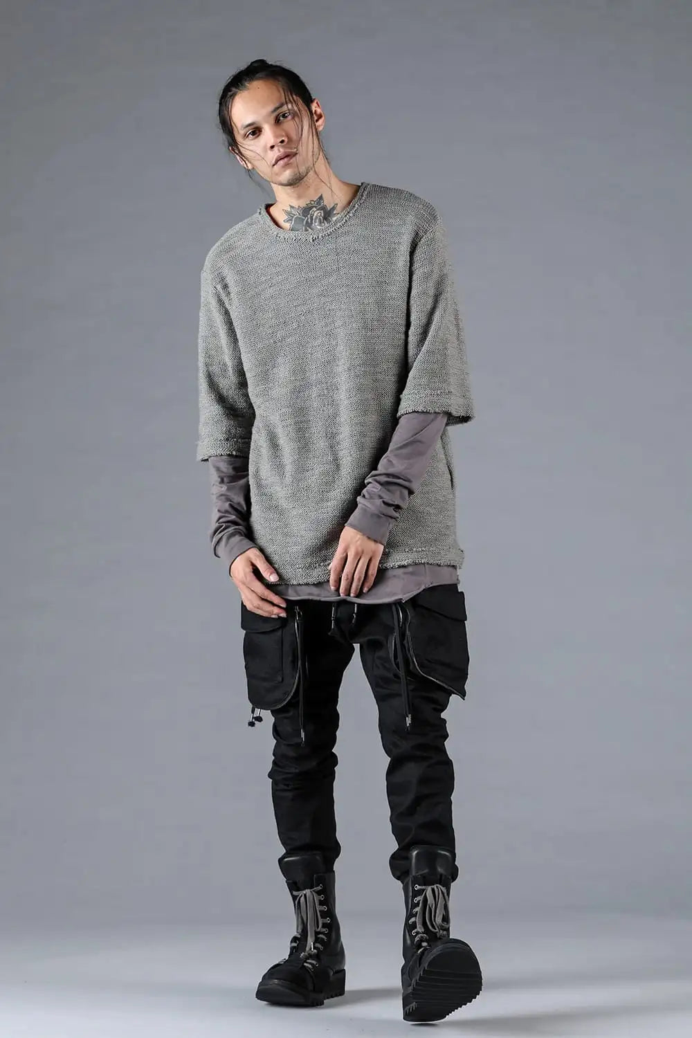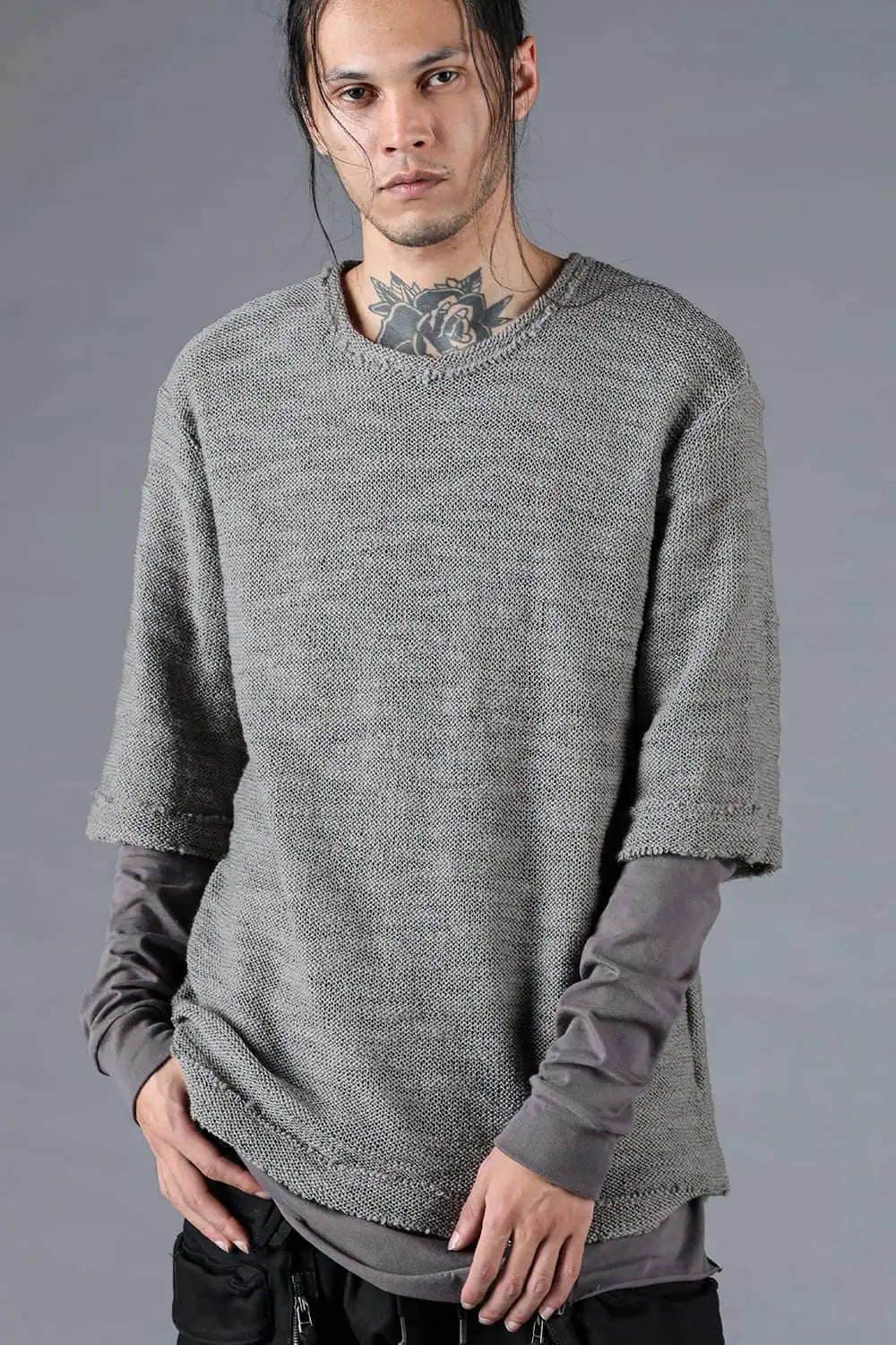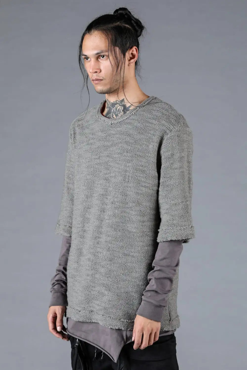 ローゲージニット×コットンジャージレイヤードTシャツ グレー