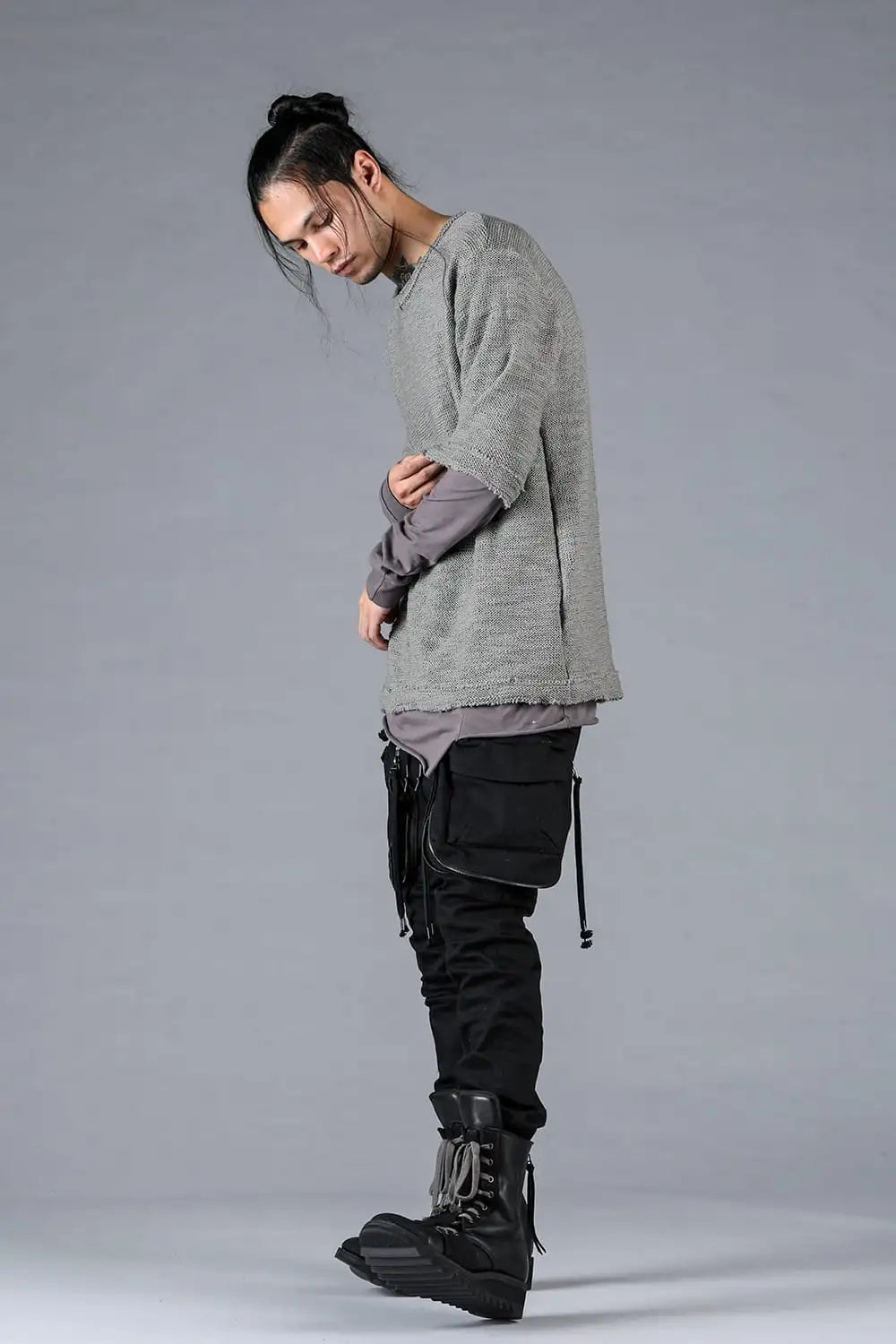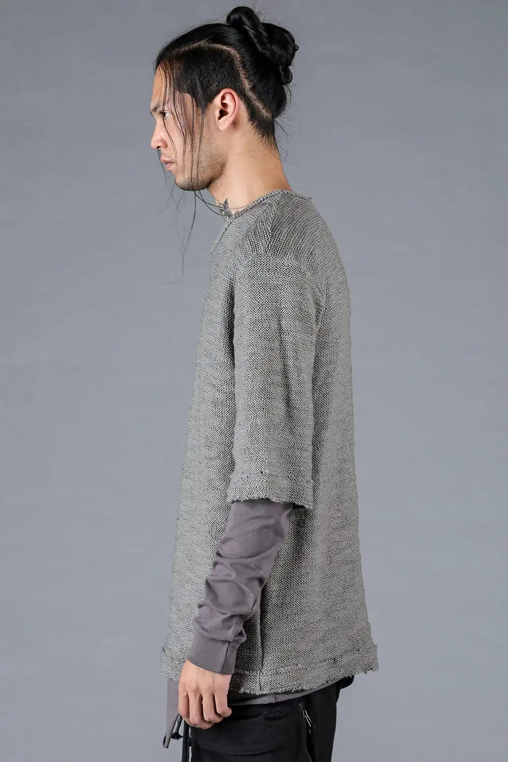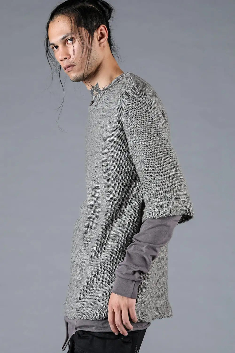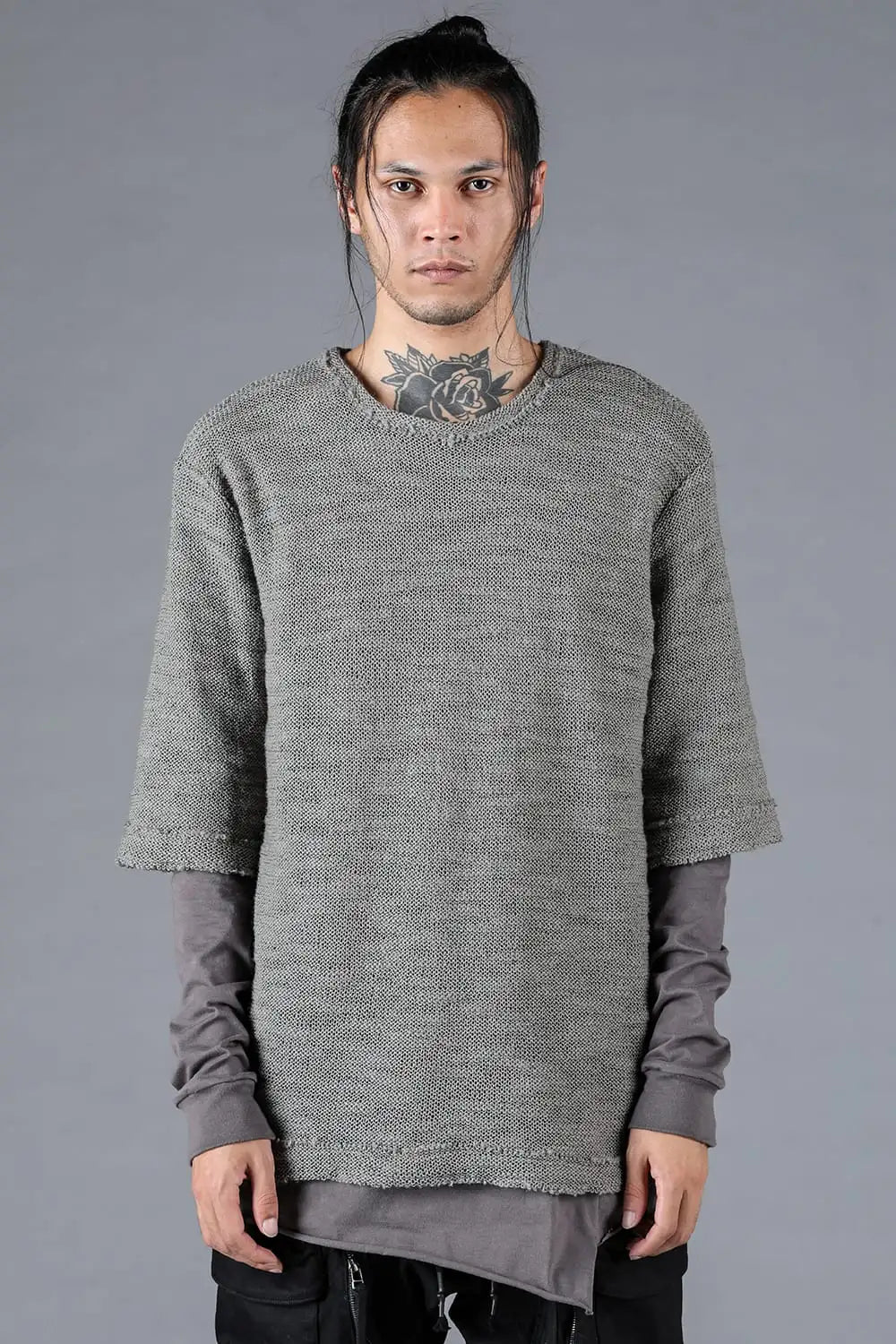 ローゲージニット×コットンジャージレイヤードTシャツ グレー