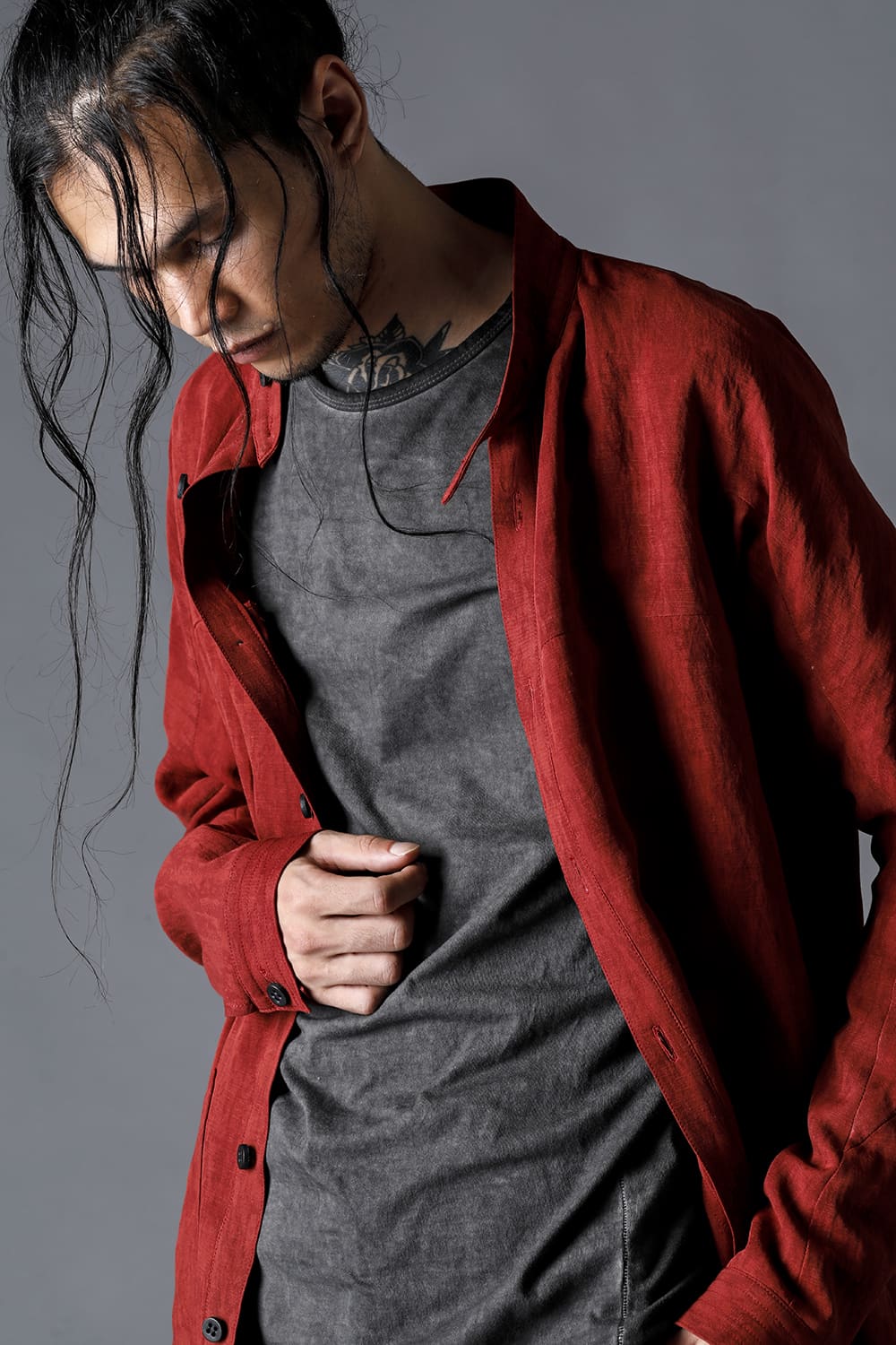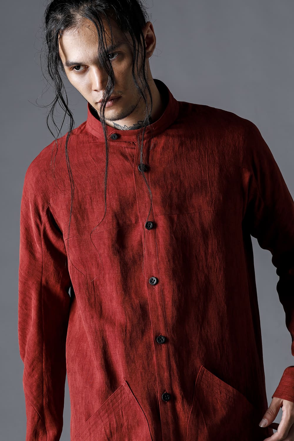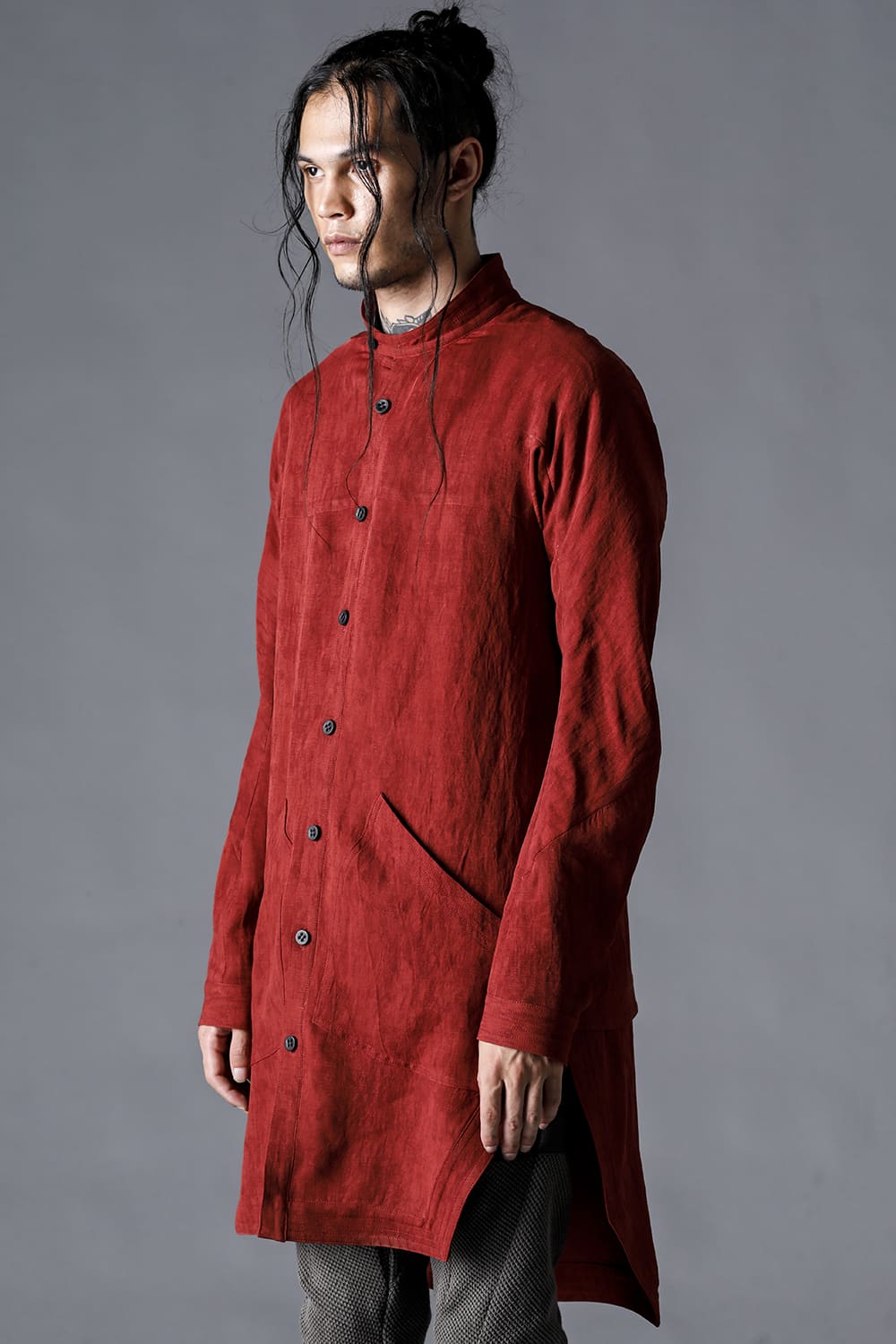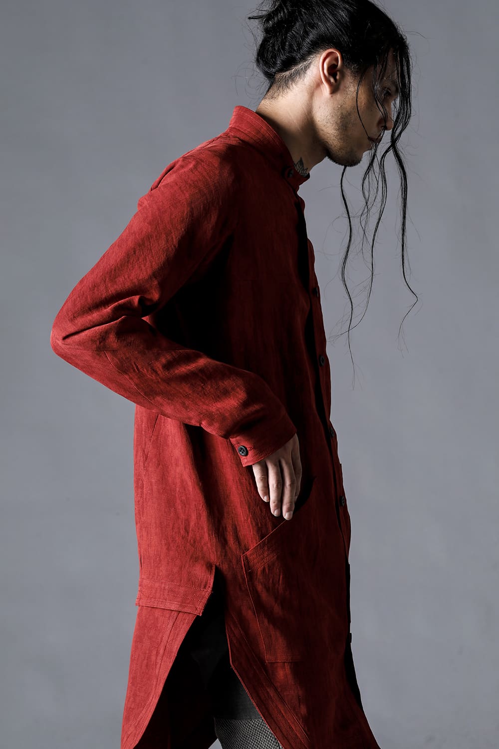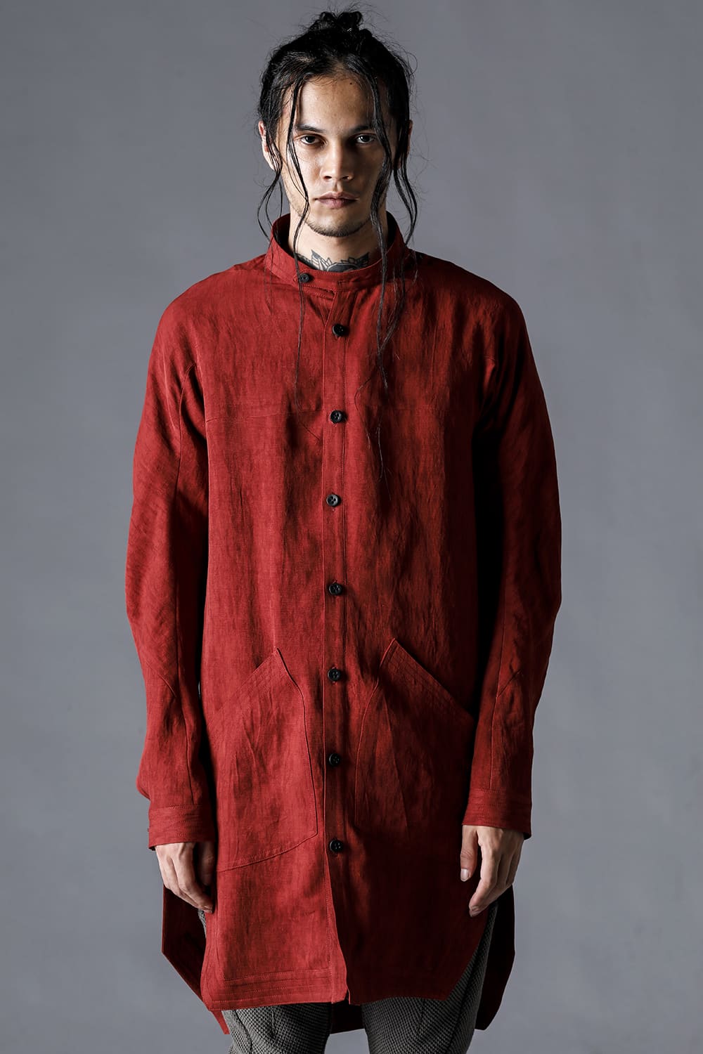 リネン×レーヨン塩縮染ロングワーキングシャツ ブリック