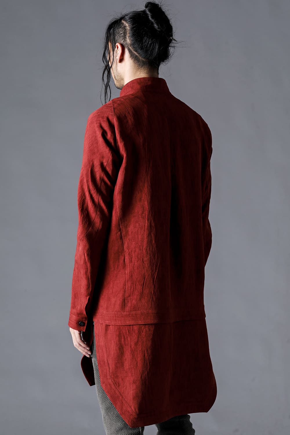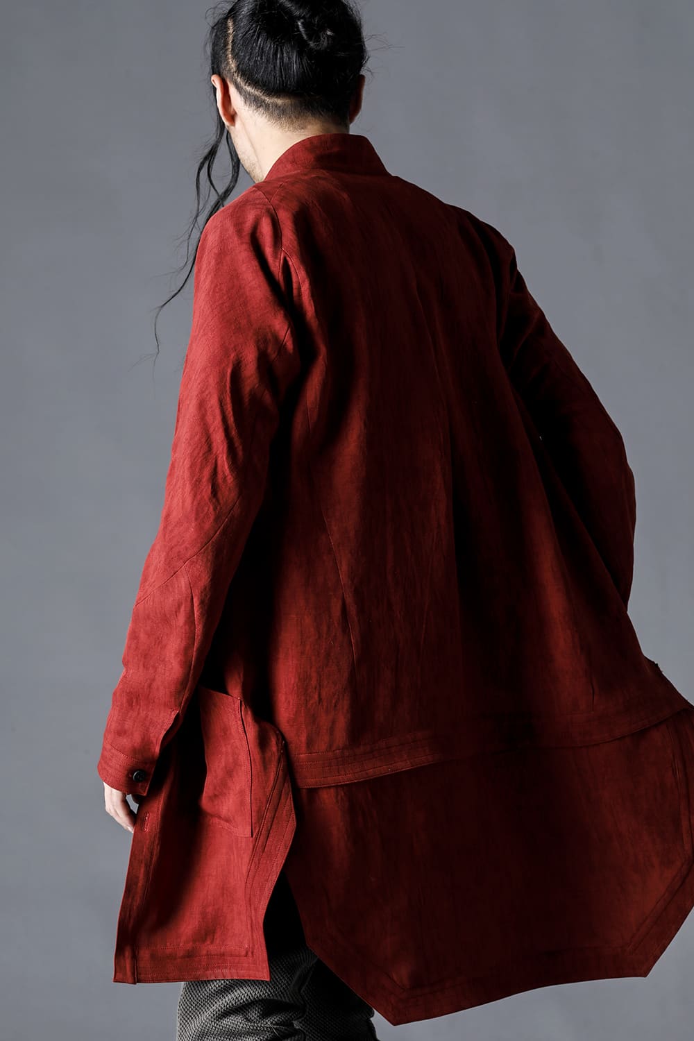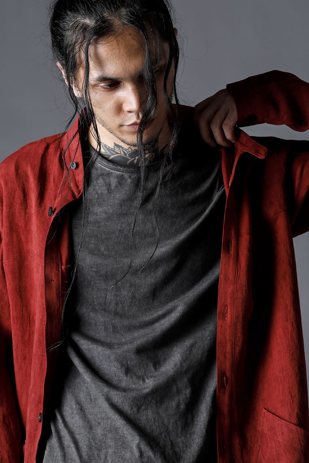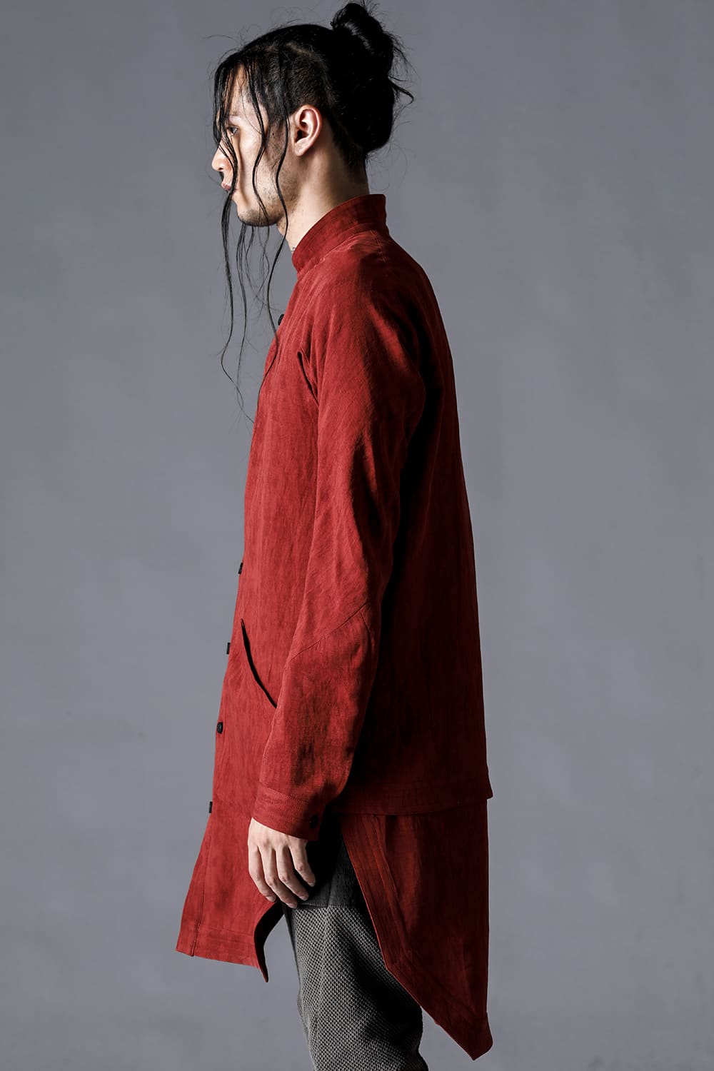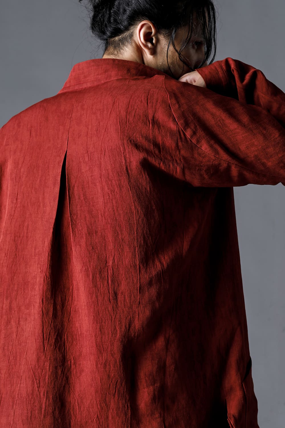 リネン×レーヨン塩縮染ロングワーキングシャツ ブリック