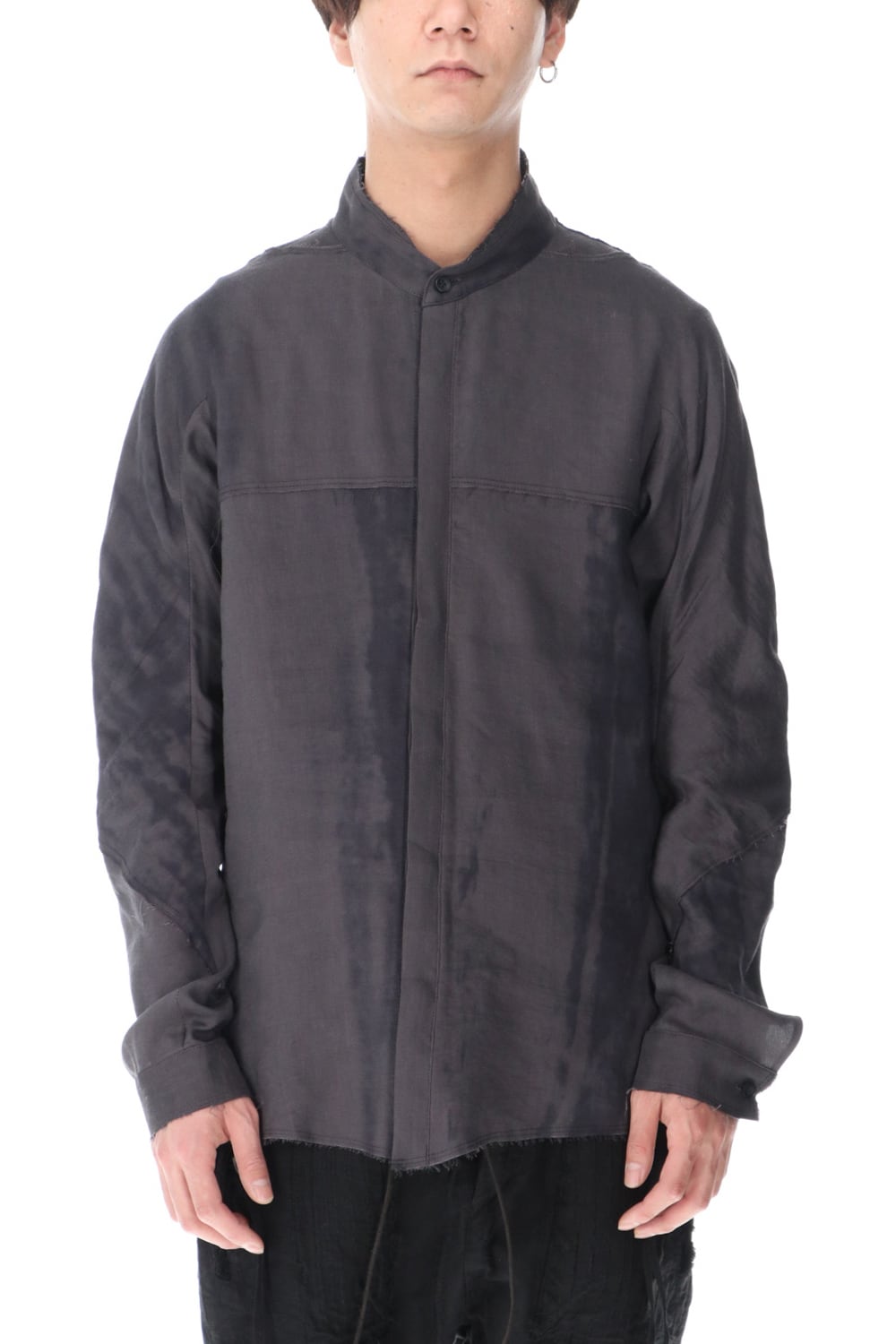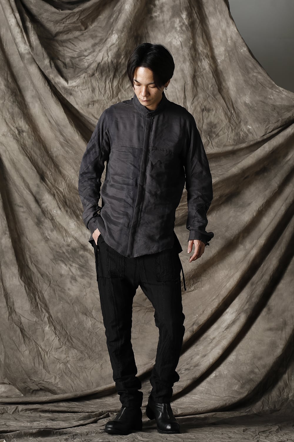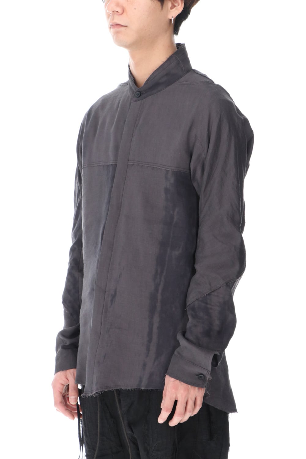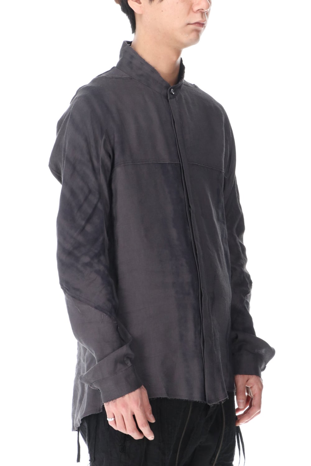リネン×レーヨンプリントバンドカラーシャツ Charcoal