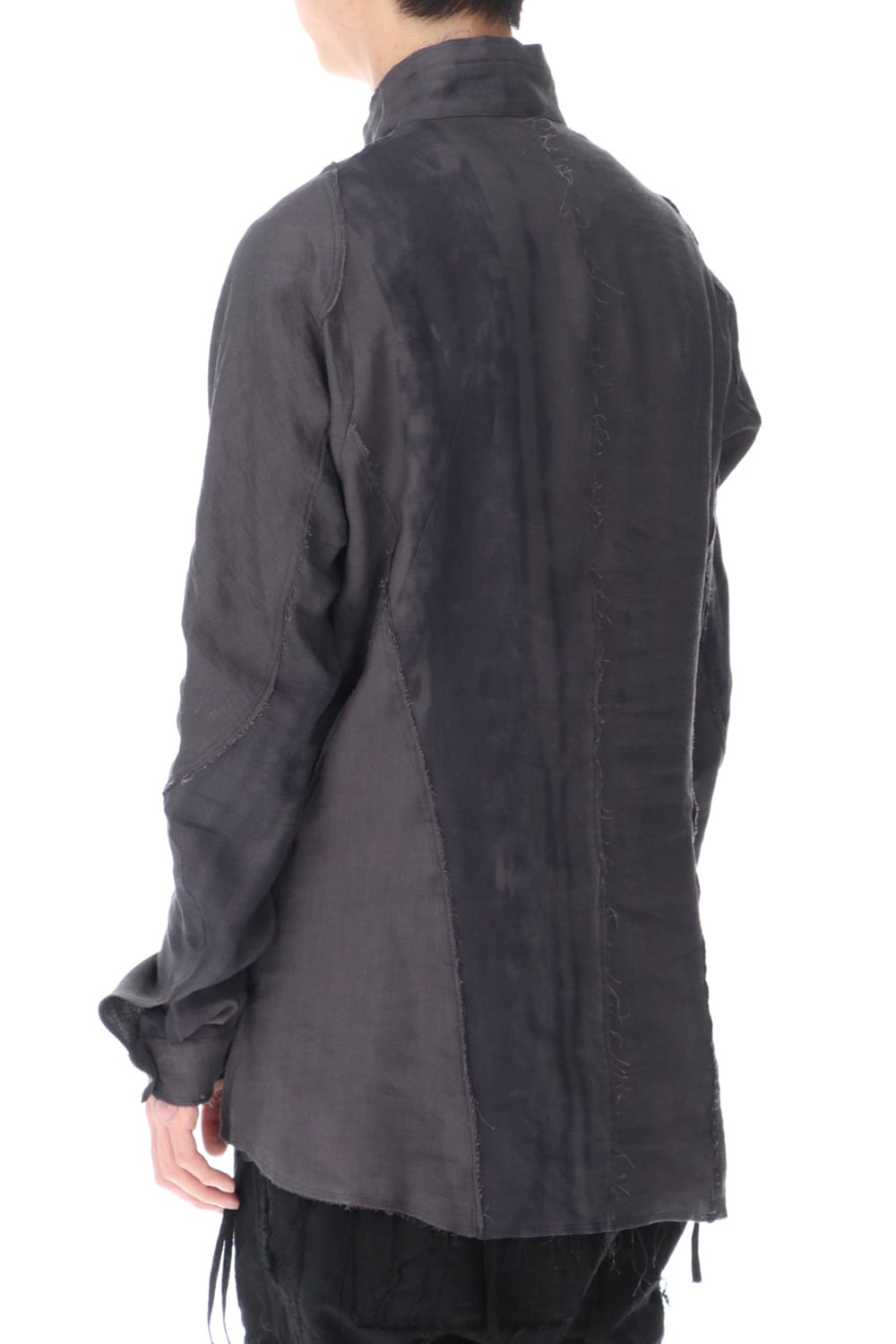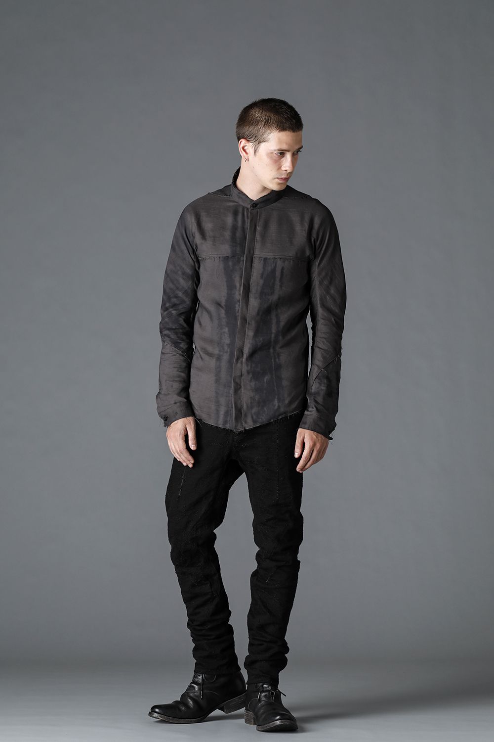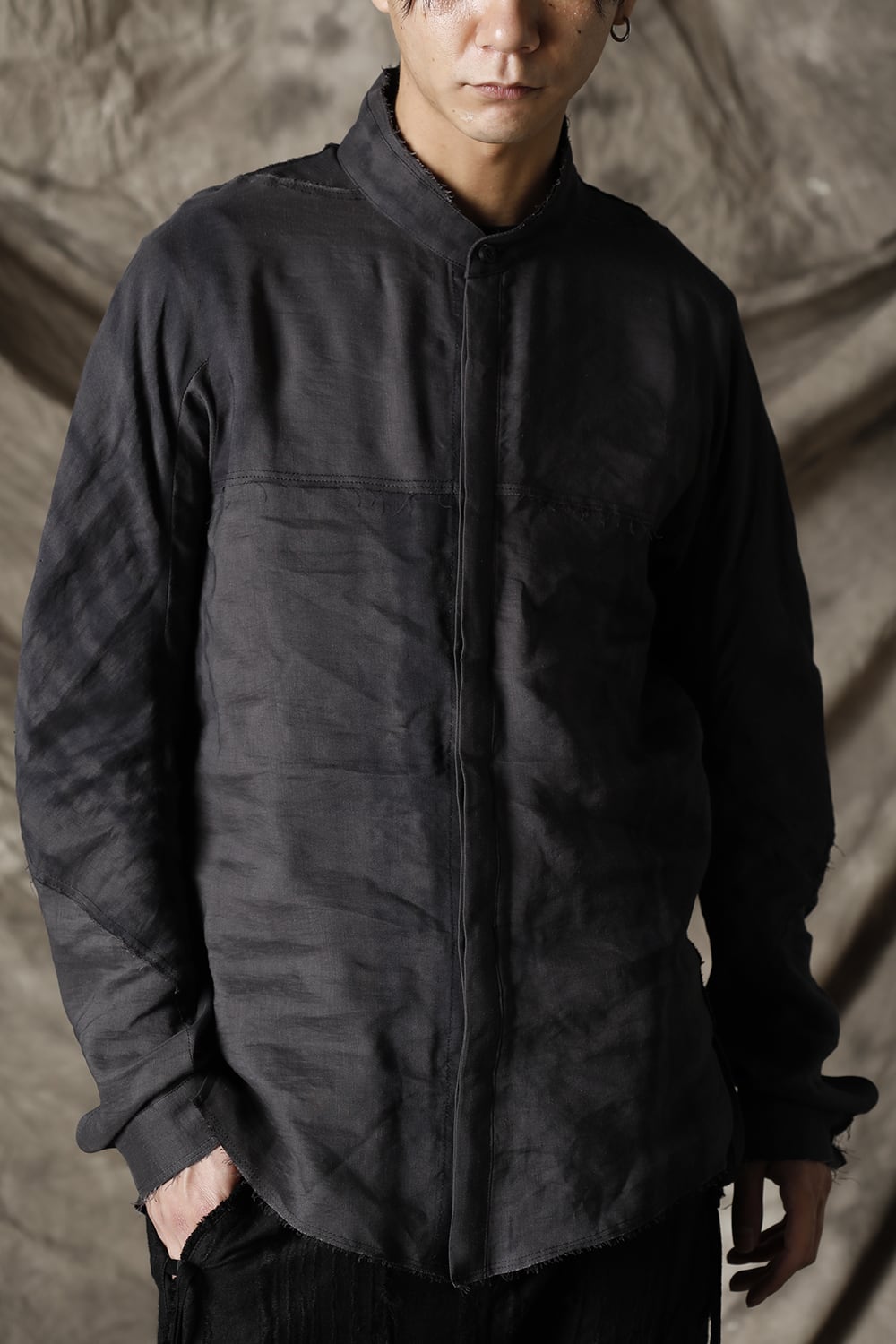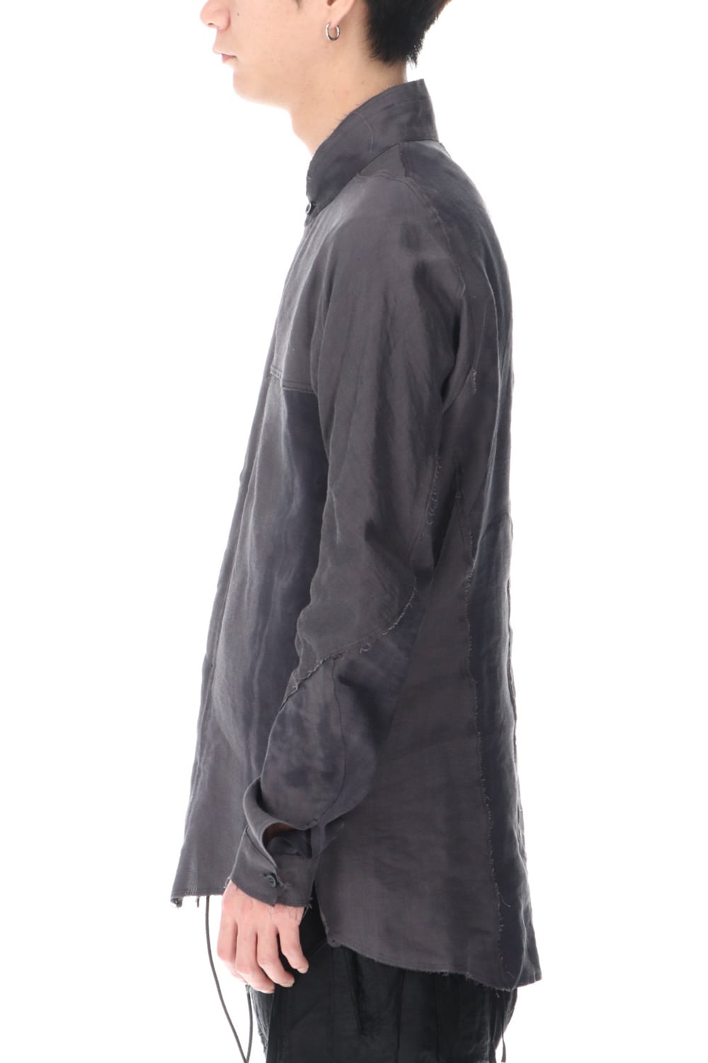 リネン×レーヨンプリントバンドカラーシャツ Charcoal
