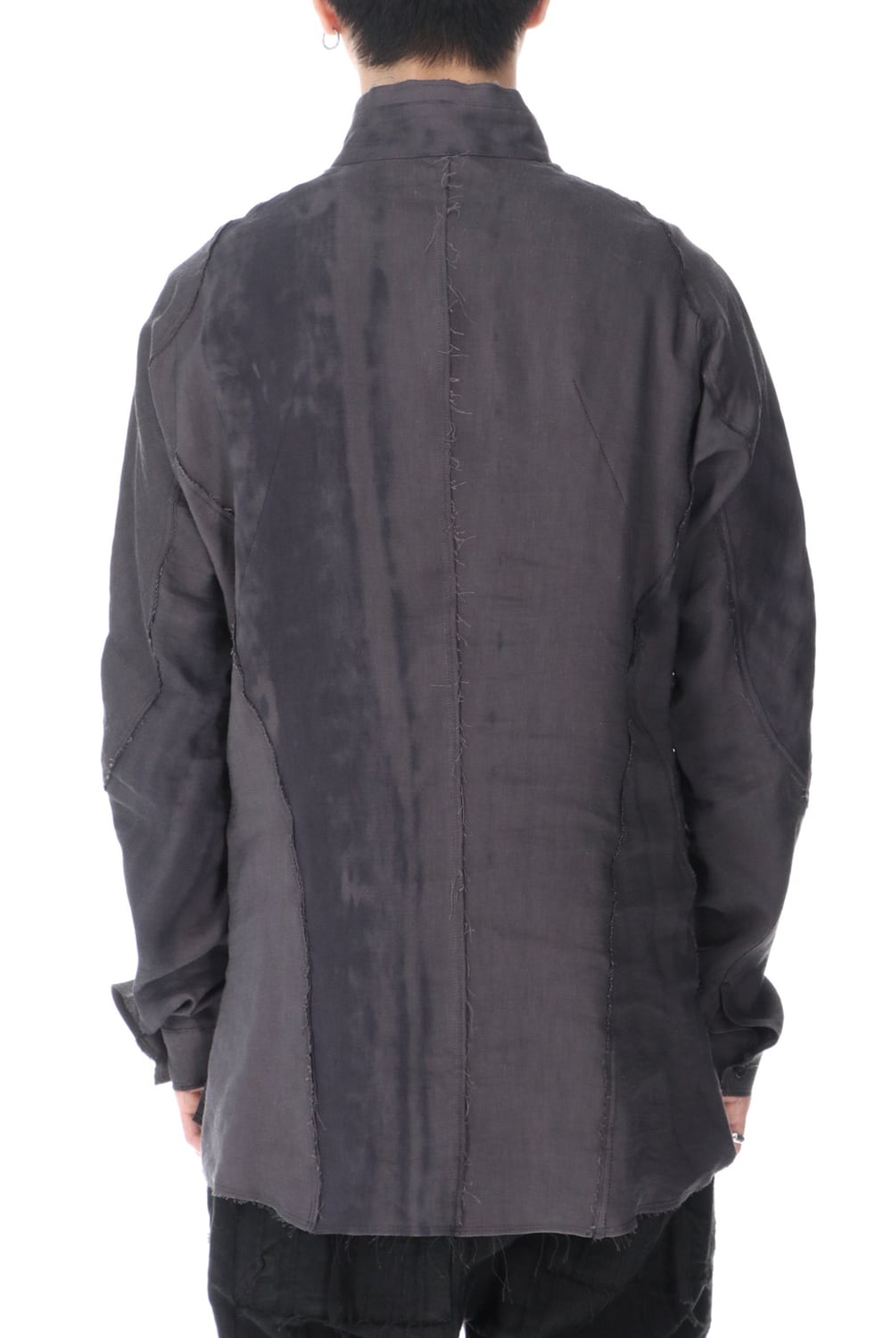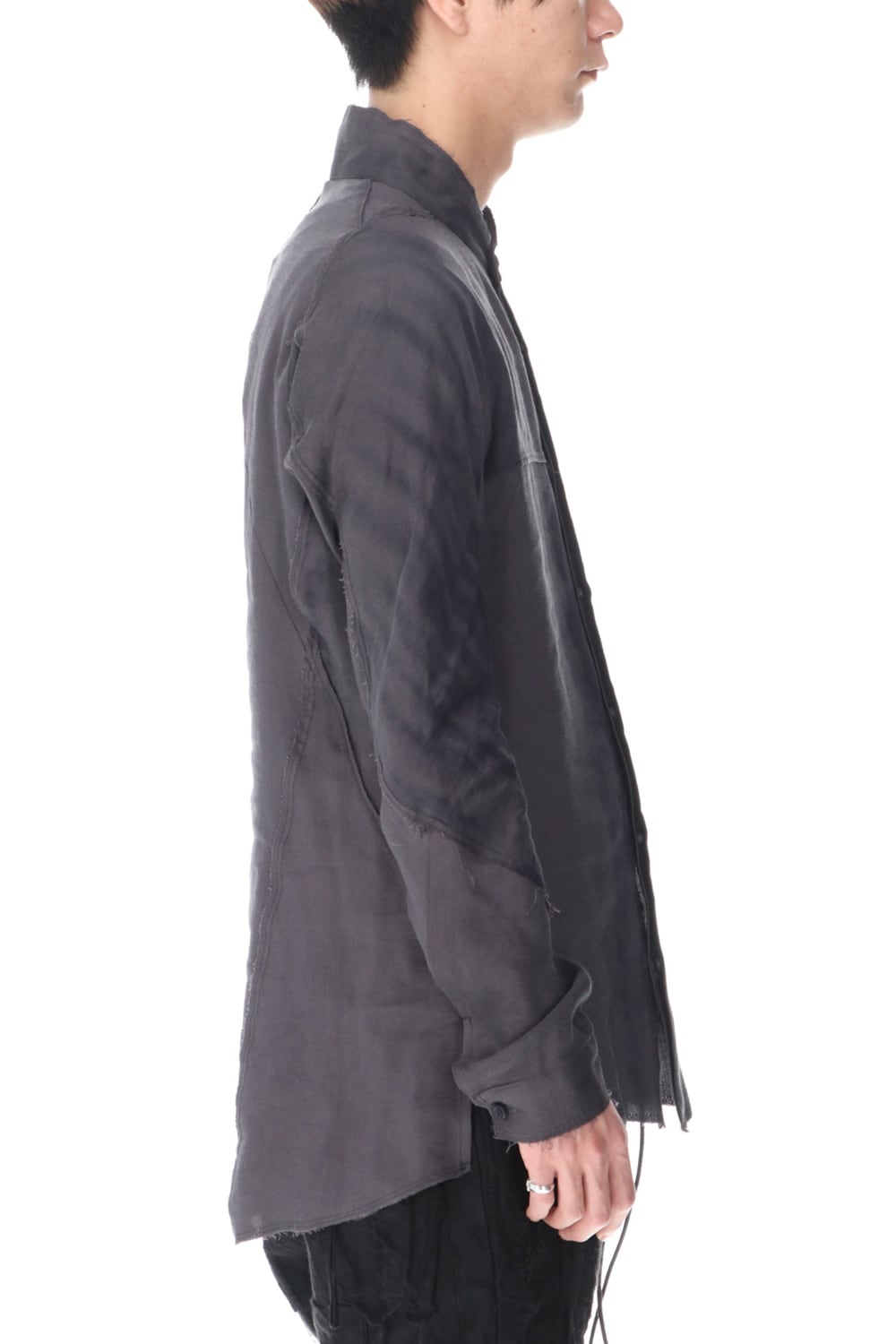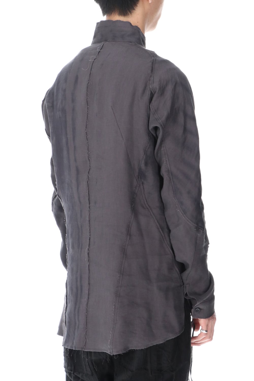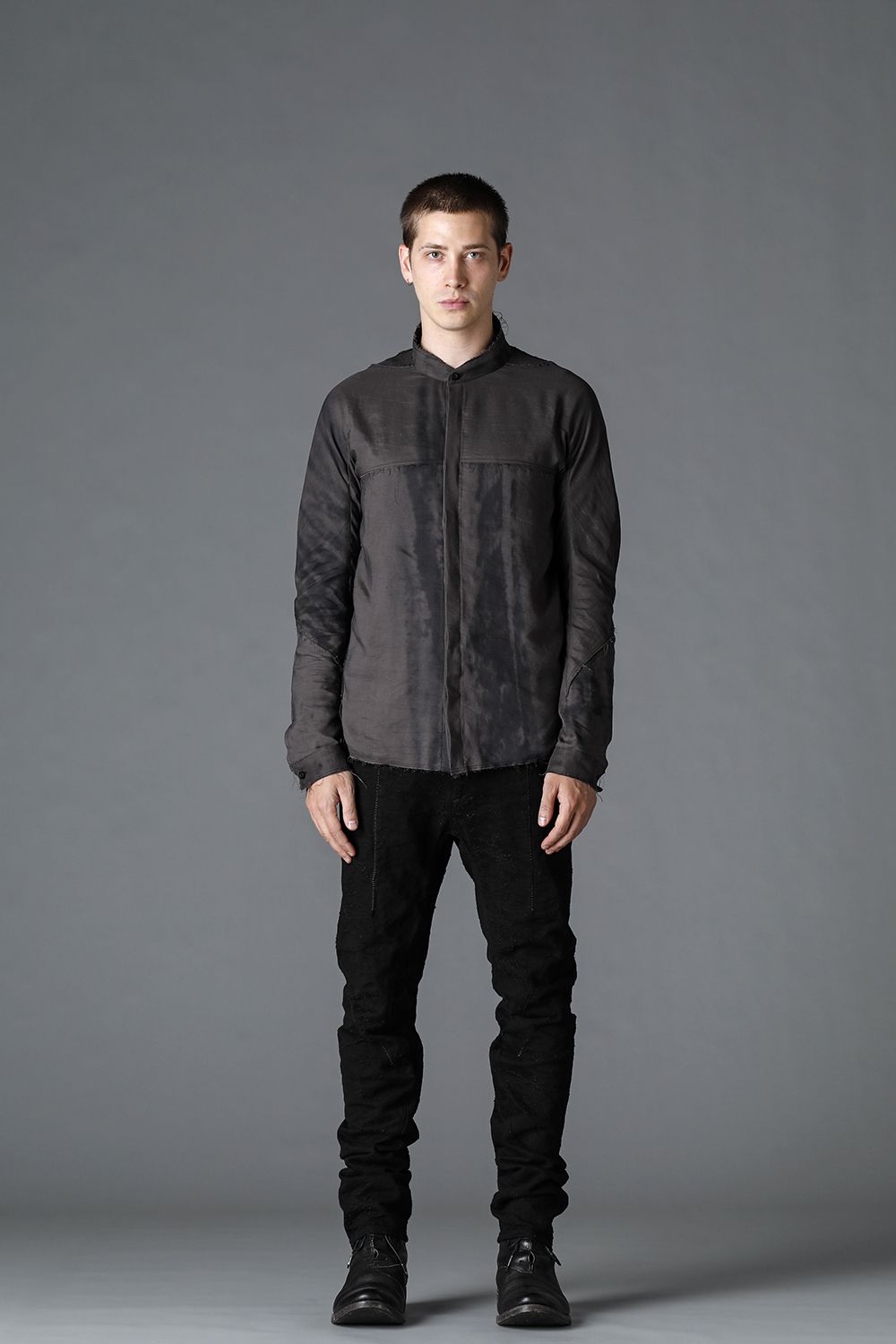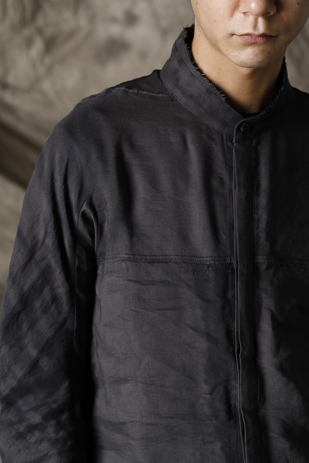 リネン×レーヨンプリントバンドカラーシャツ Charcoal