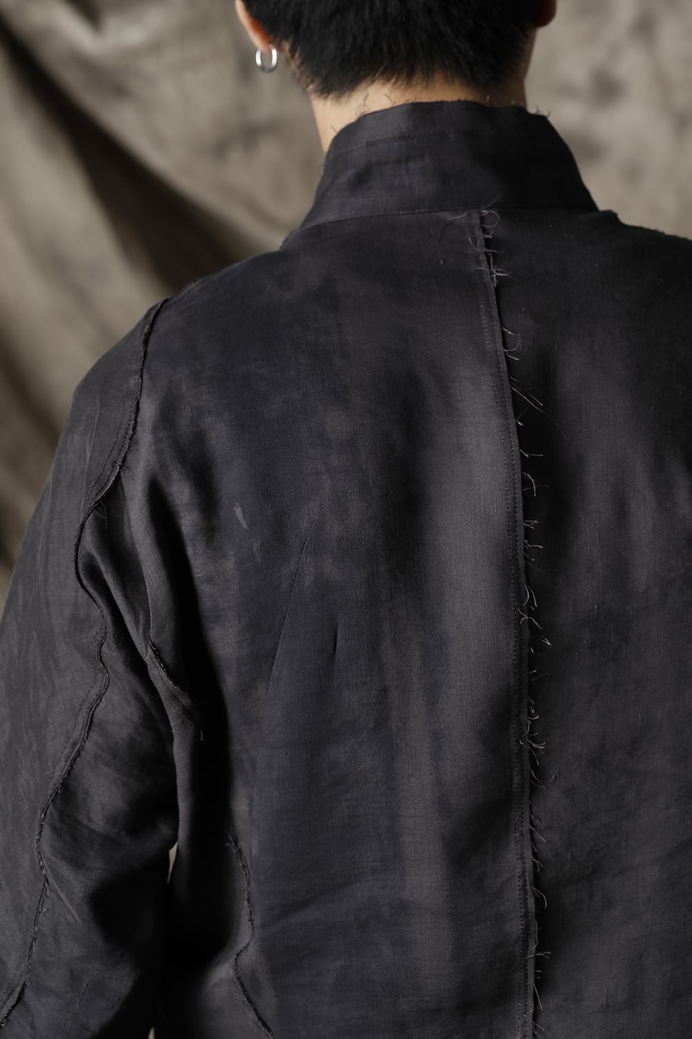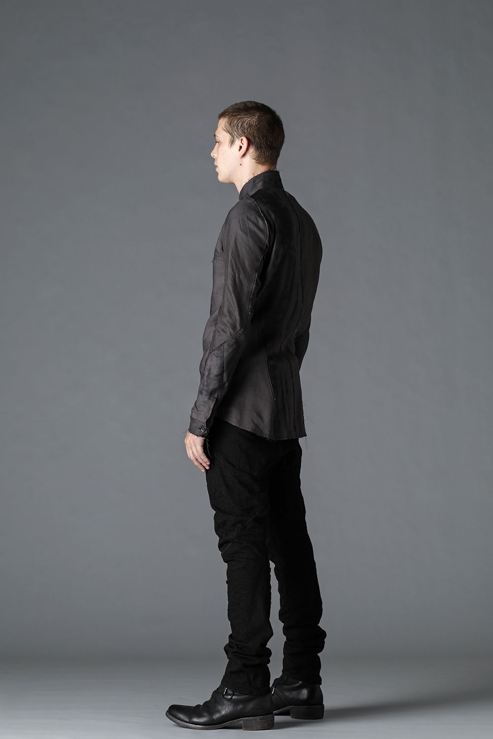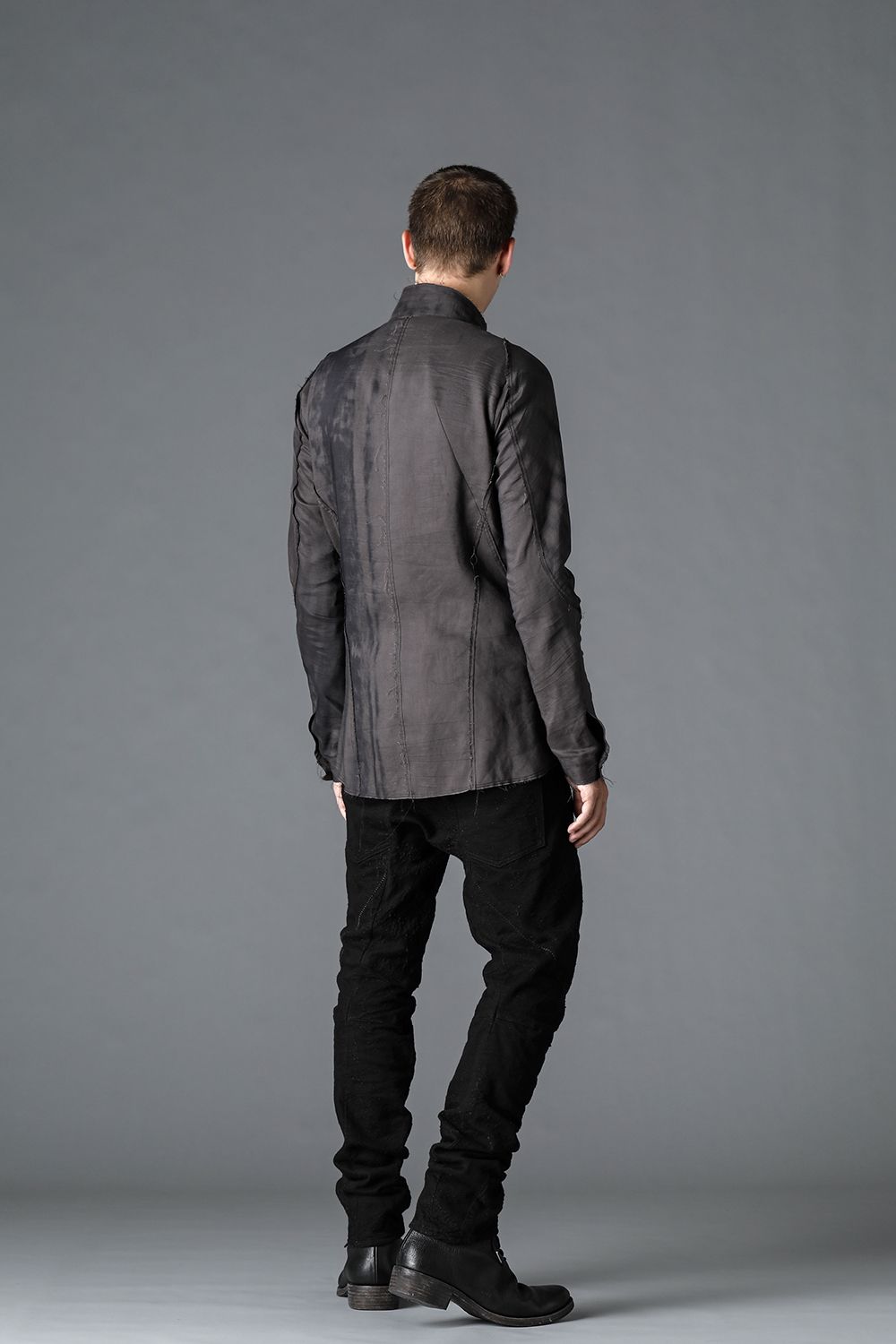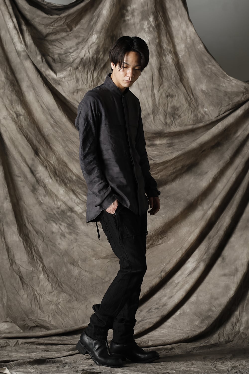 リネン×レーヨンプリントバンドカラーシャツ Charcoal