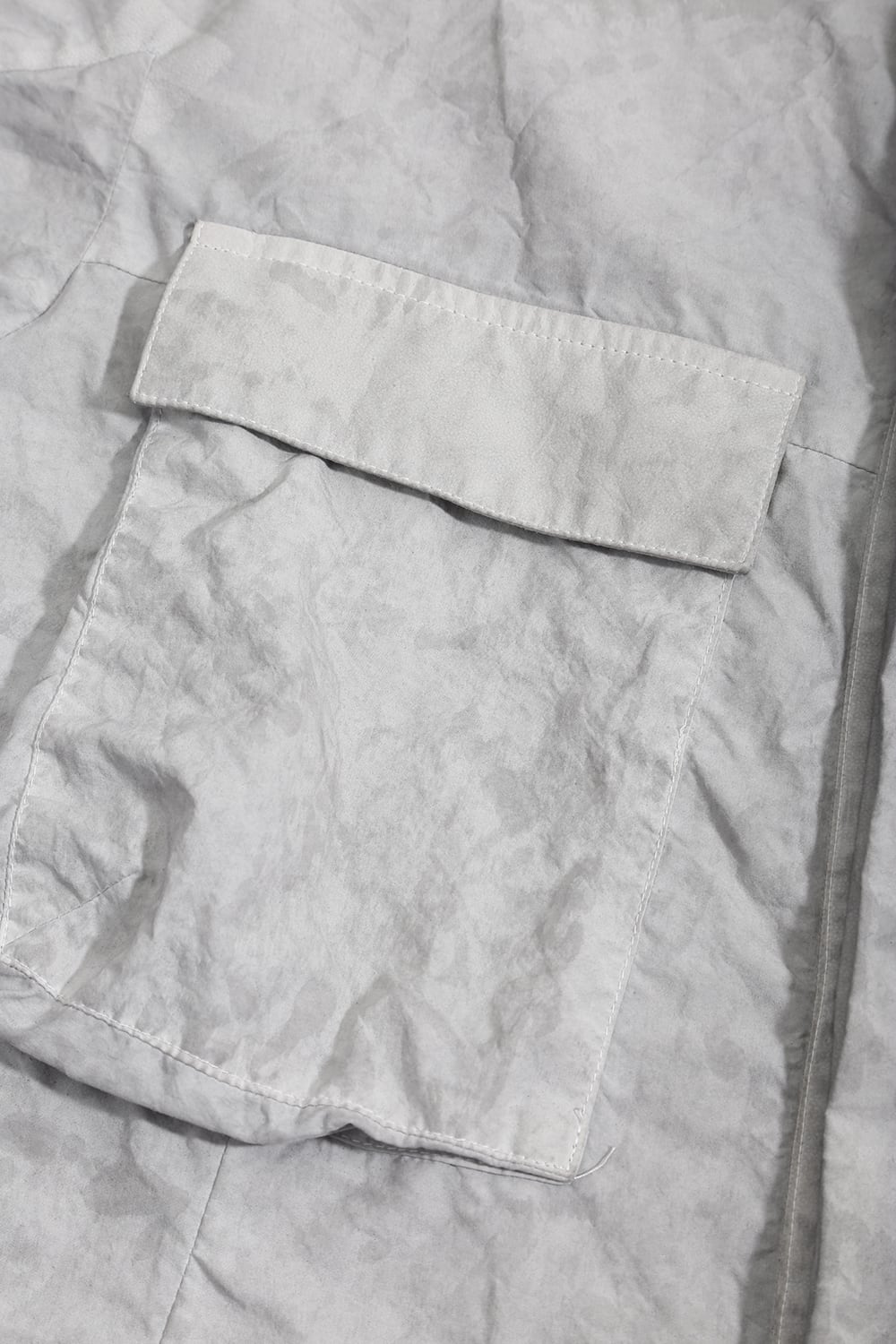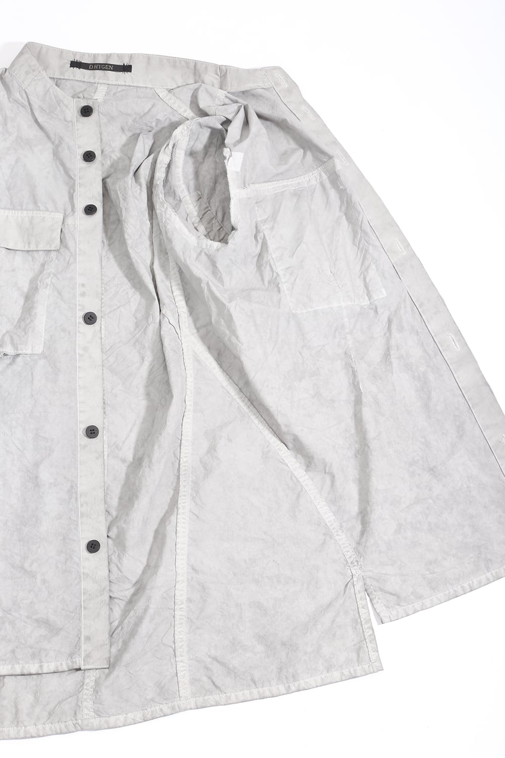 ・経糸は綿、緯糸はナイロン糸の薄手で高密度のダンプ生地に塩縮加工を施しボコボコとした表情を生んでいます。