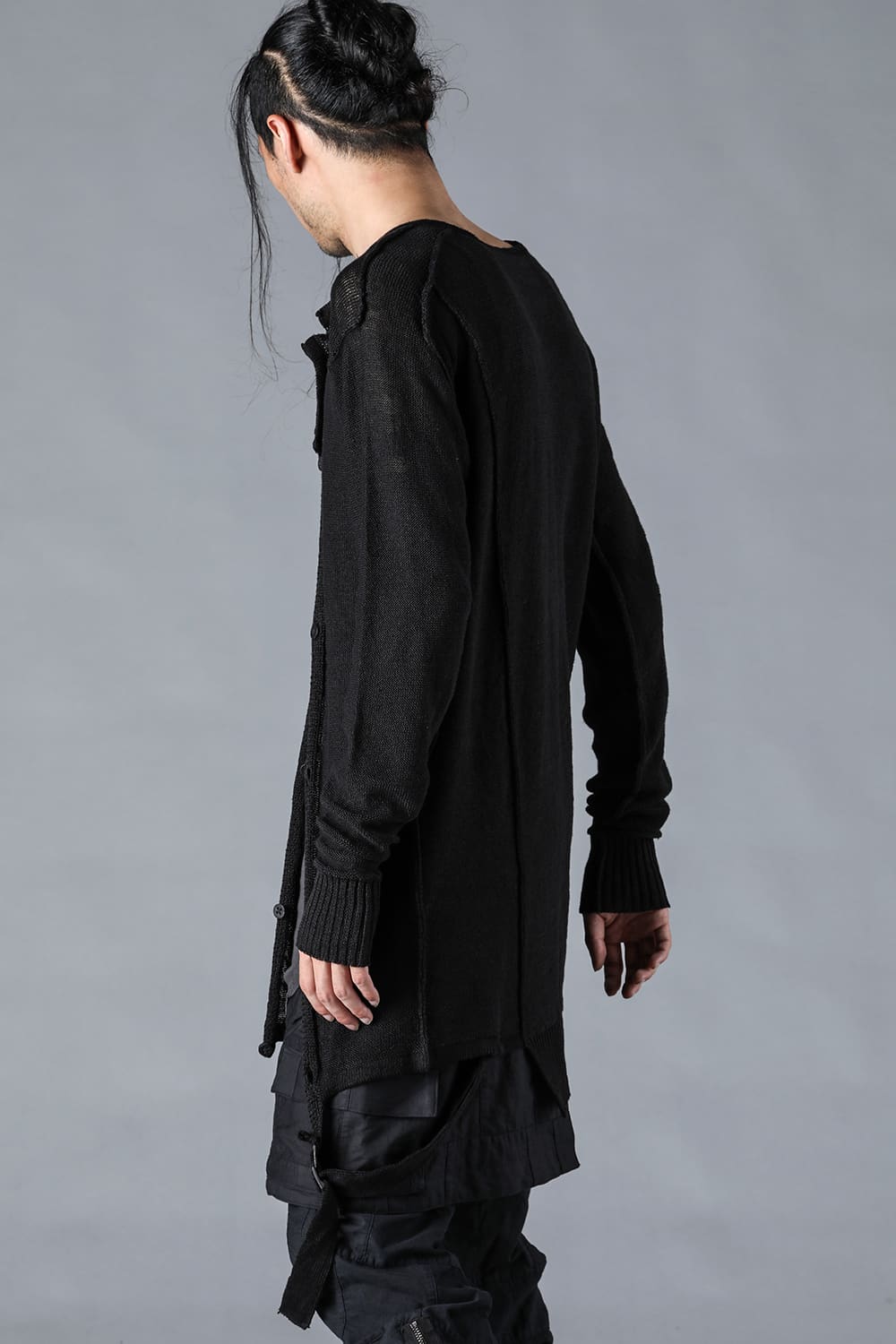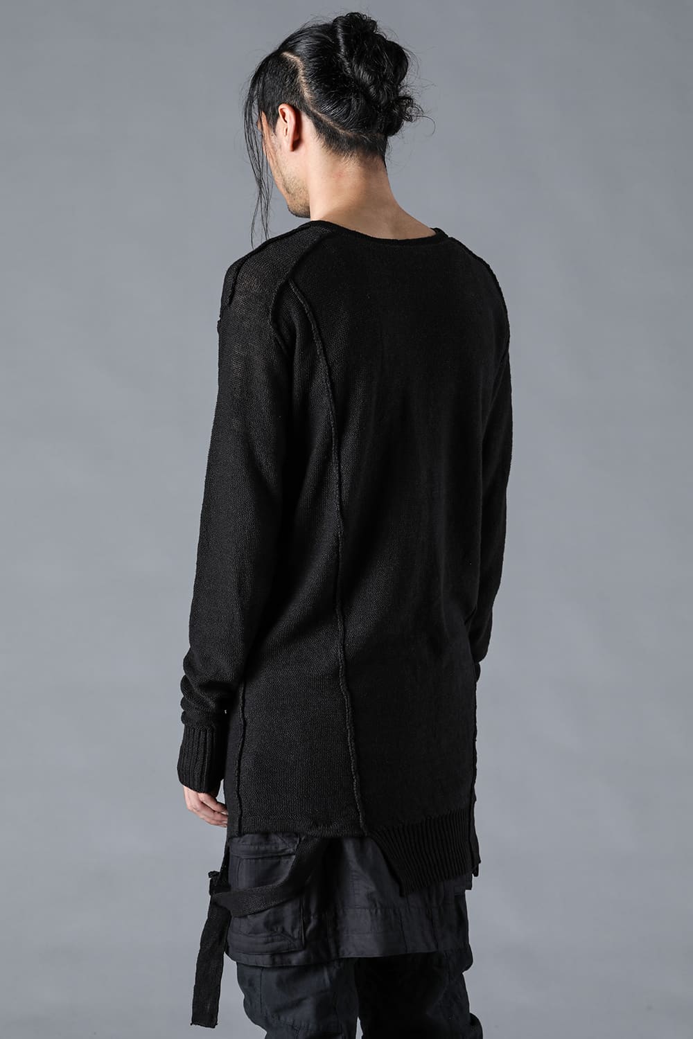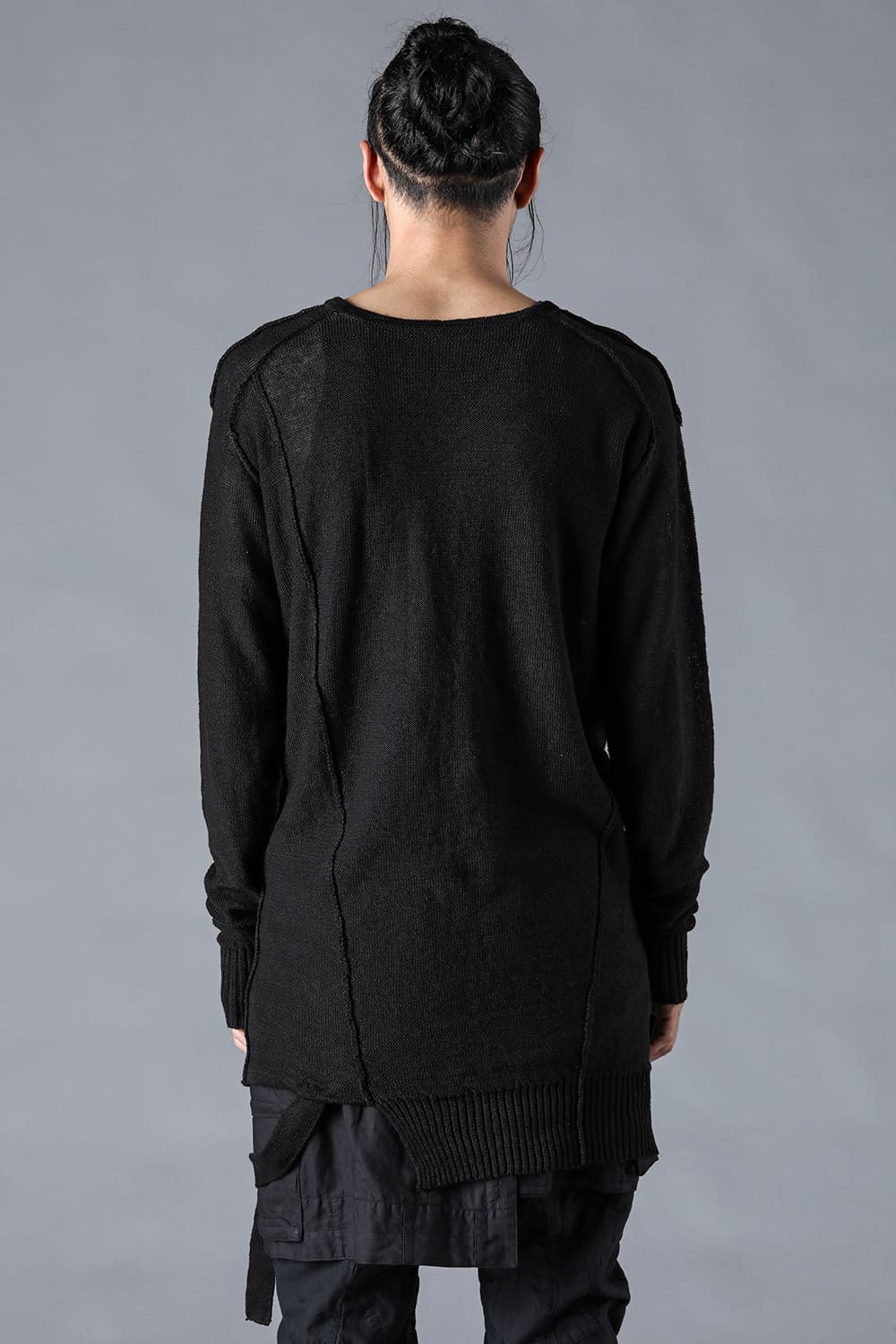・身頃を捩じった様にシームを走らせ、裾のラインもランダムに仕上げています。