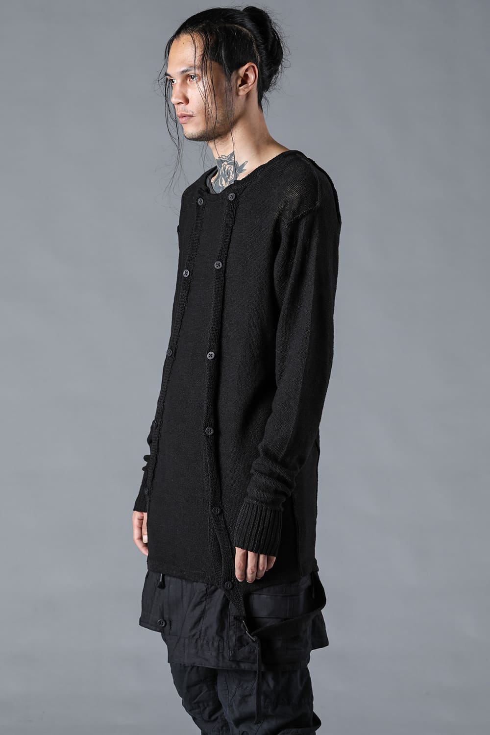 ・リネン糸を使用し裏目天竺編みで編んだサマーニット。C/#DARKNAVYはNAVYとBLACKの糸をミックスし奥行きのあるムラを生み出しています。
