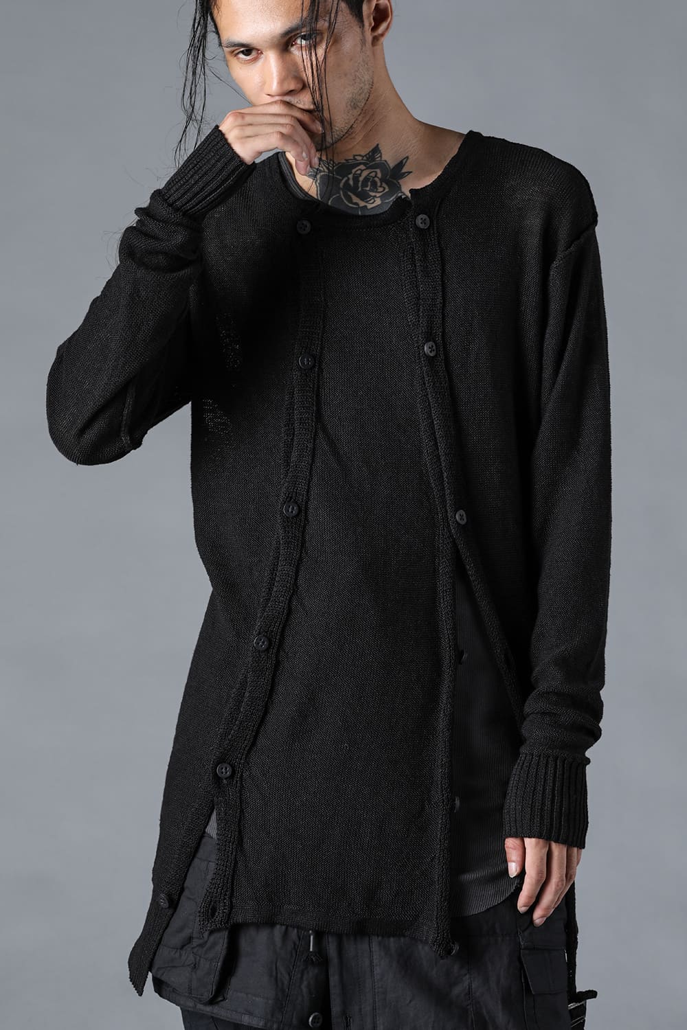 リネンニットWオープンカーディガン
