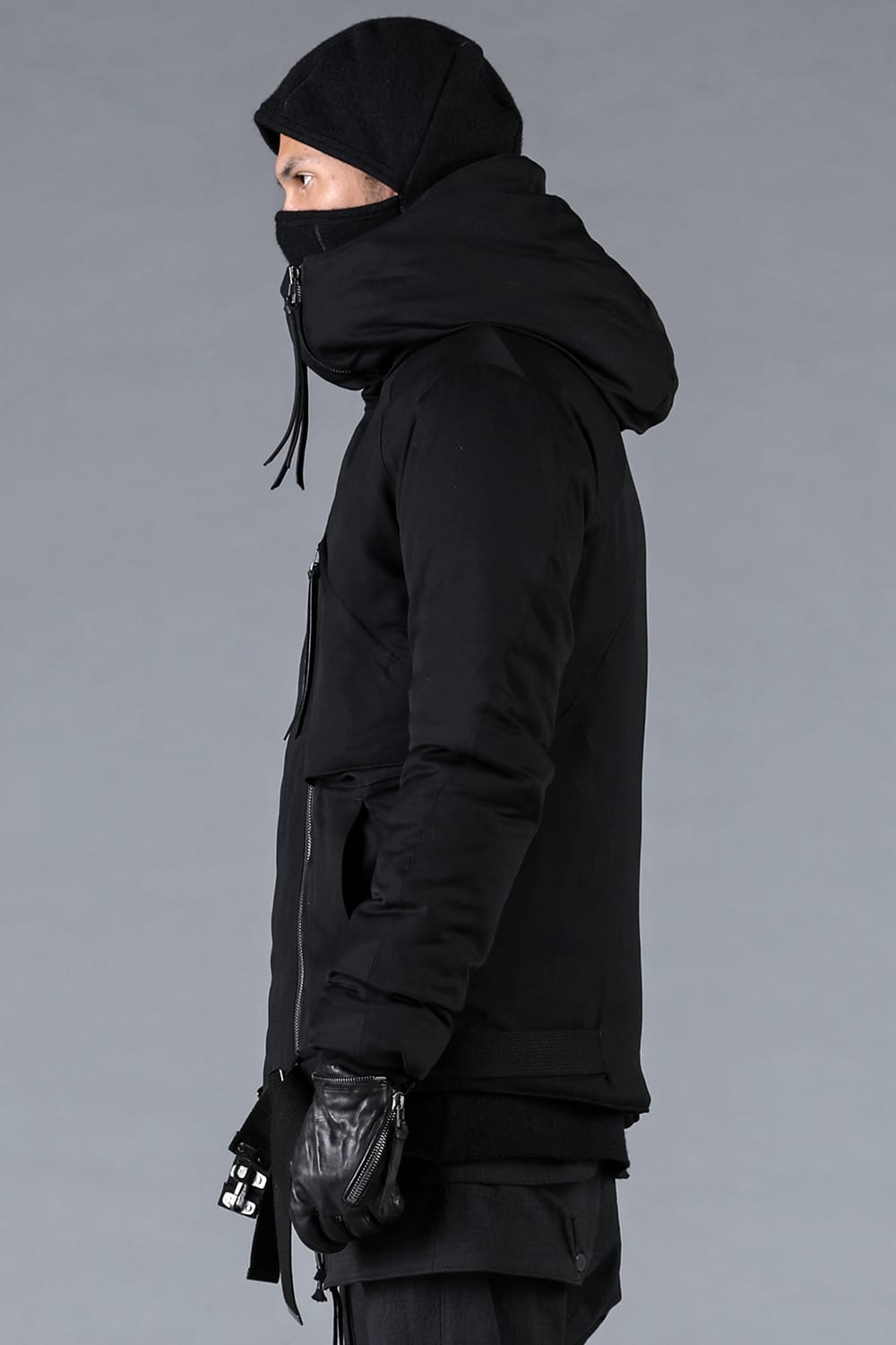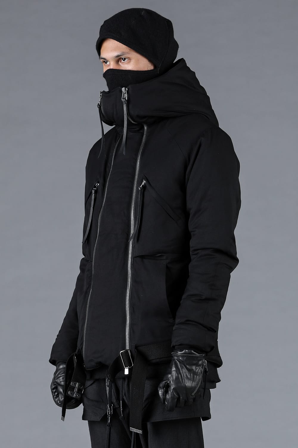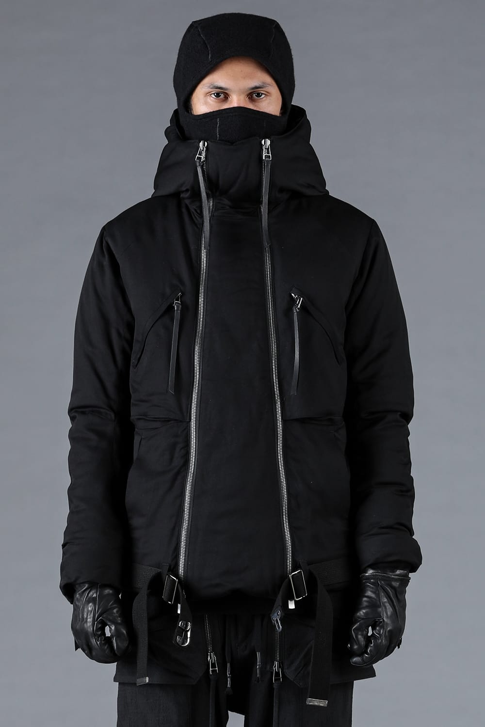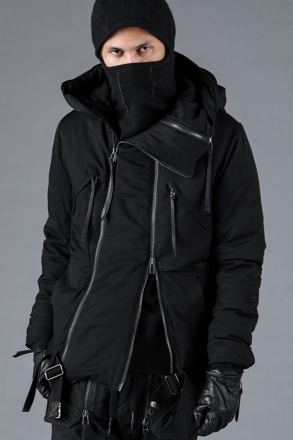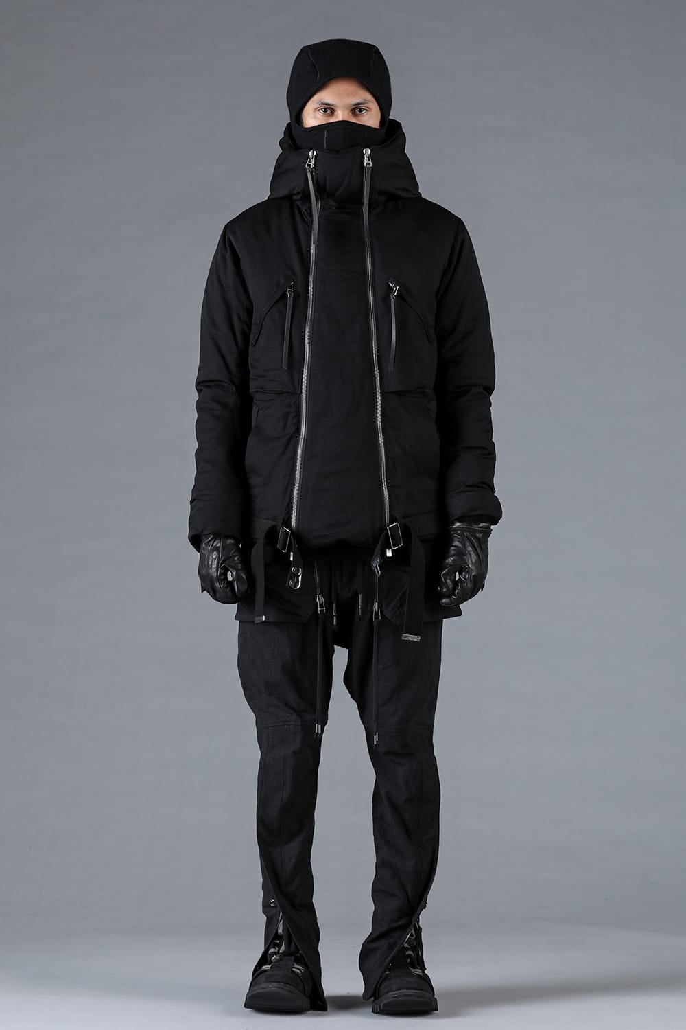 レーヨンツイルWジップフーデッドダウンジャケット ブラック