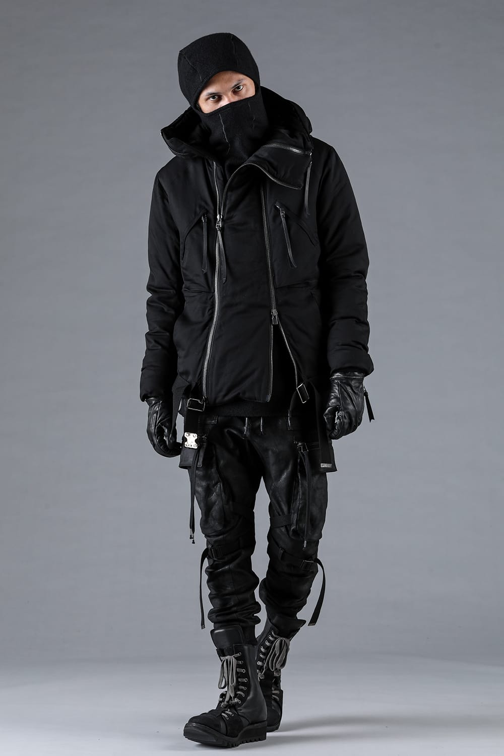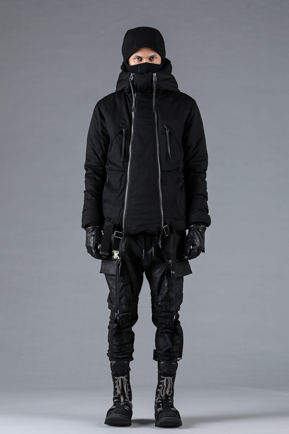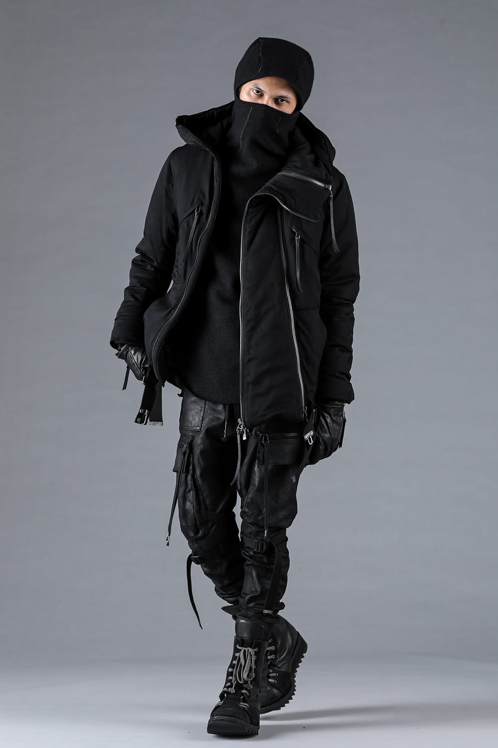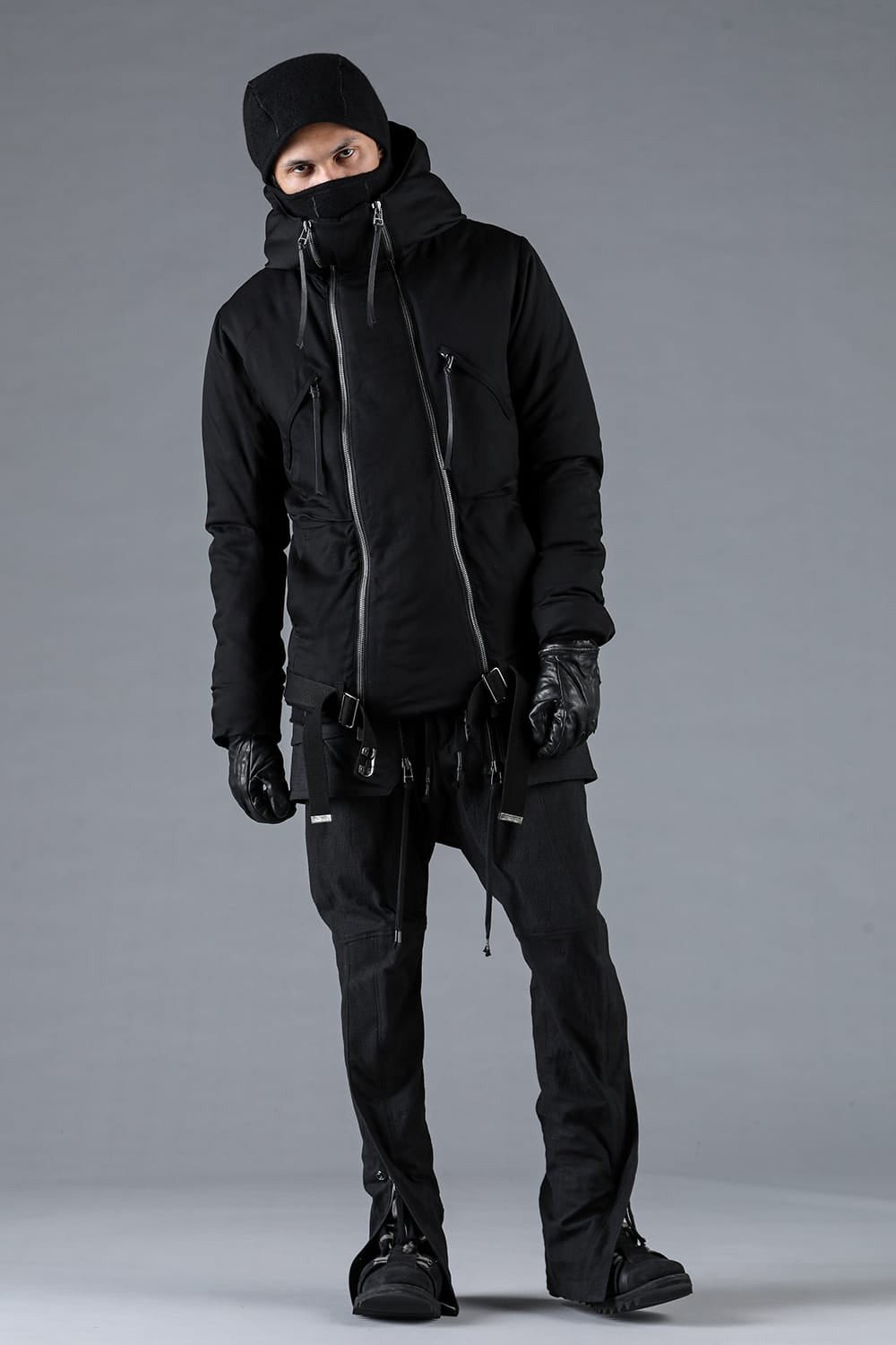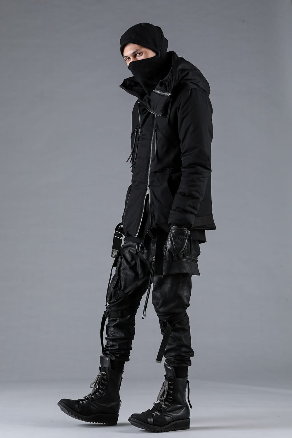 レーヨンツイルWジップフーデッドダウンジャケット ブラック