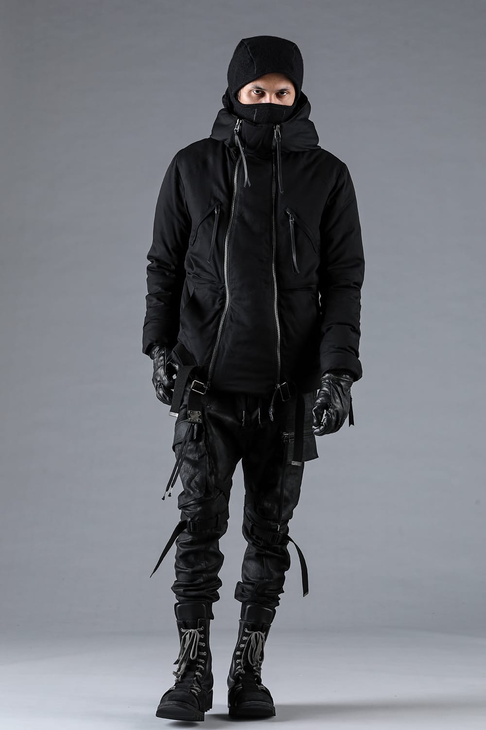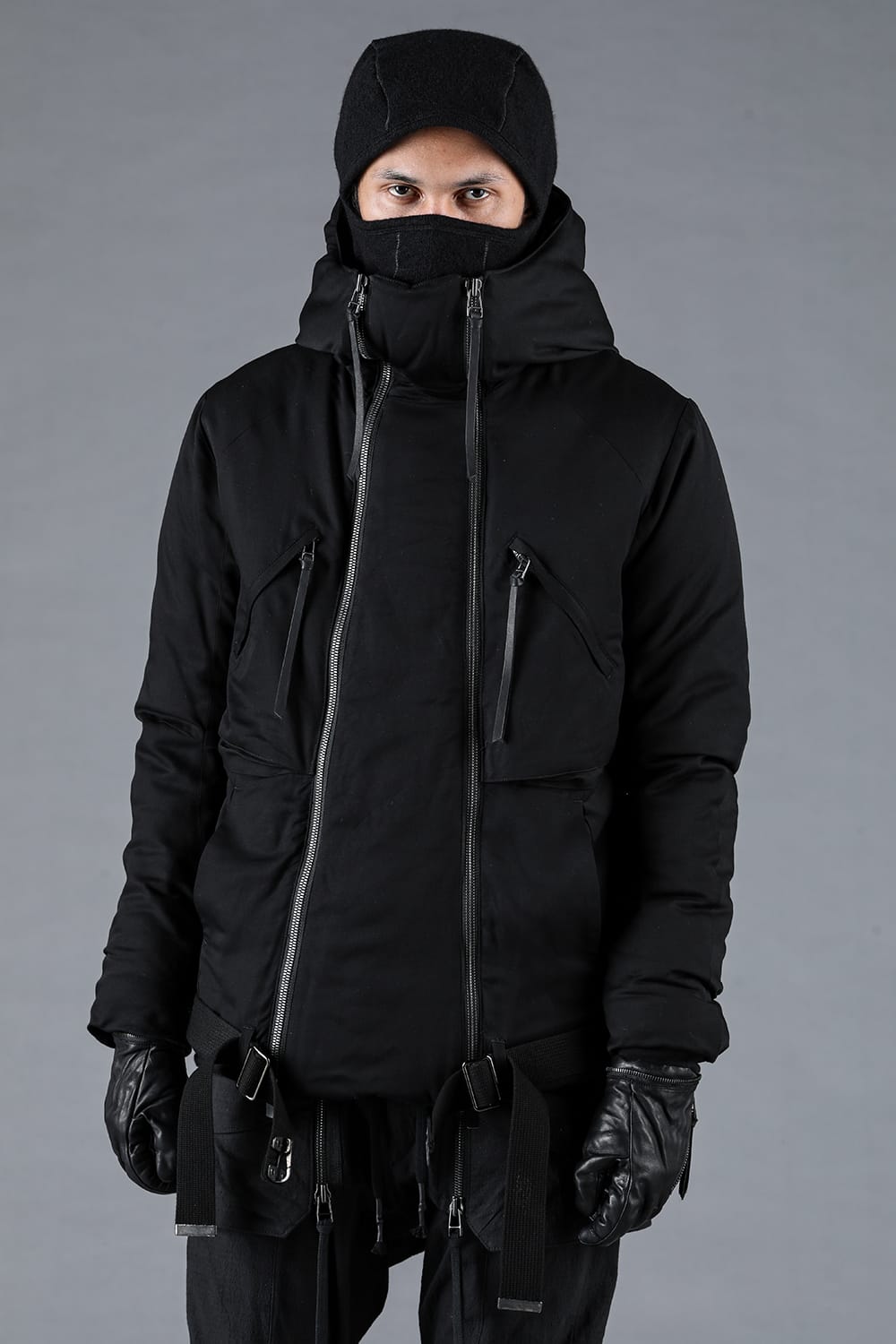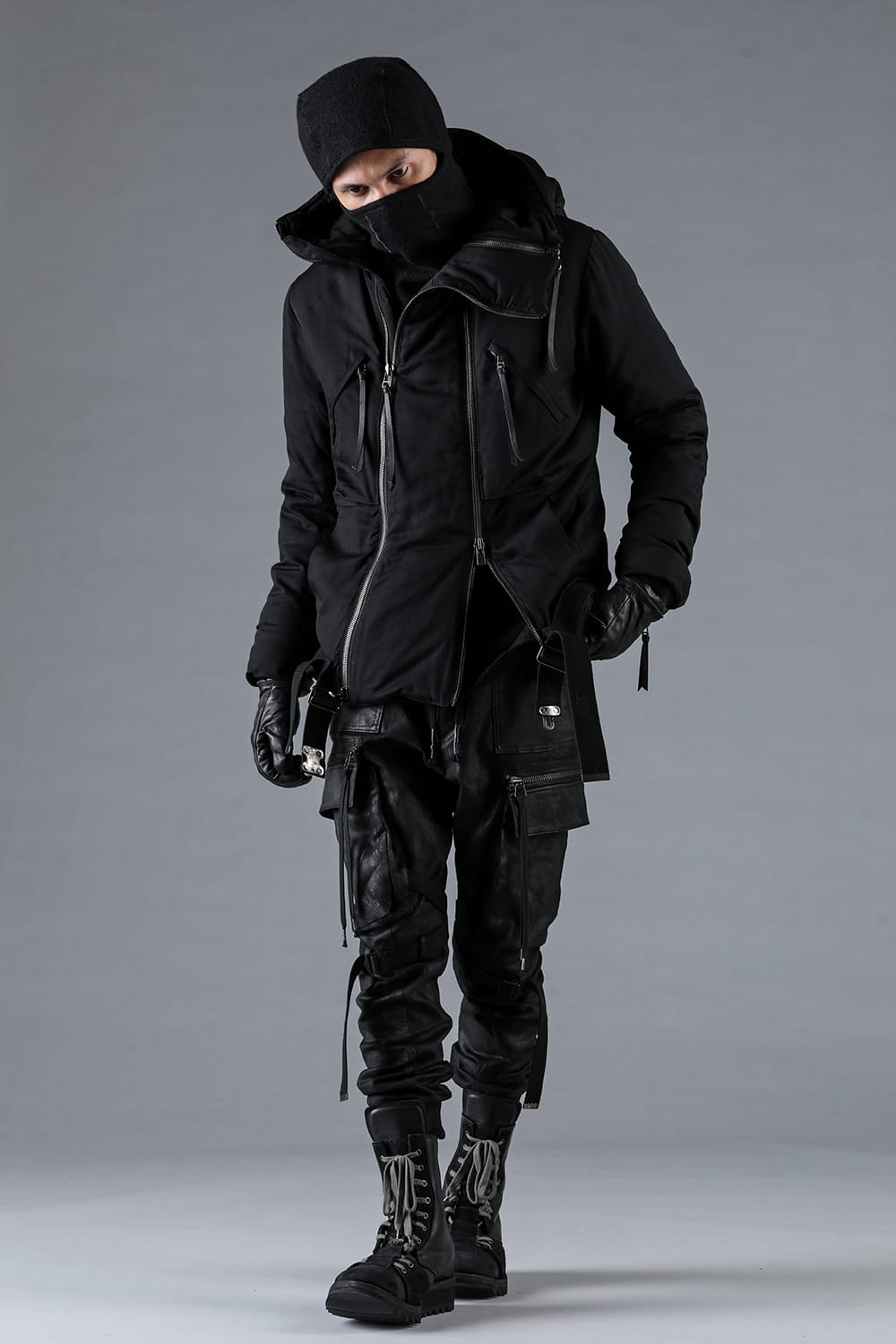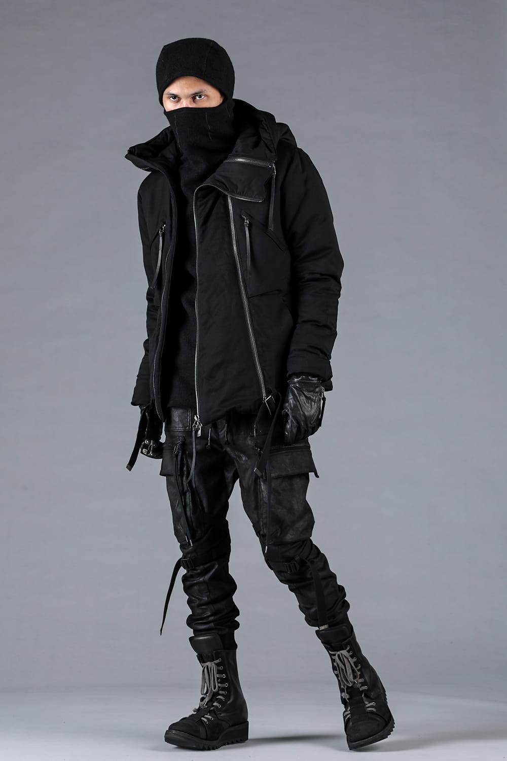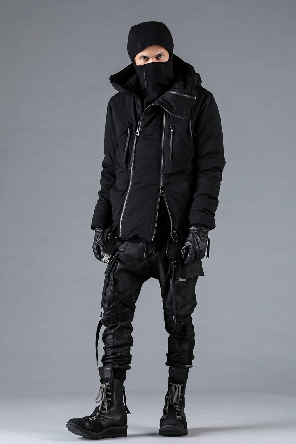 レーヨンツイルWジップフーデッドダウンジャケット ブラック