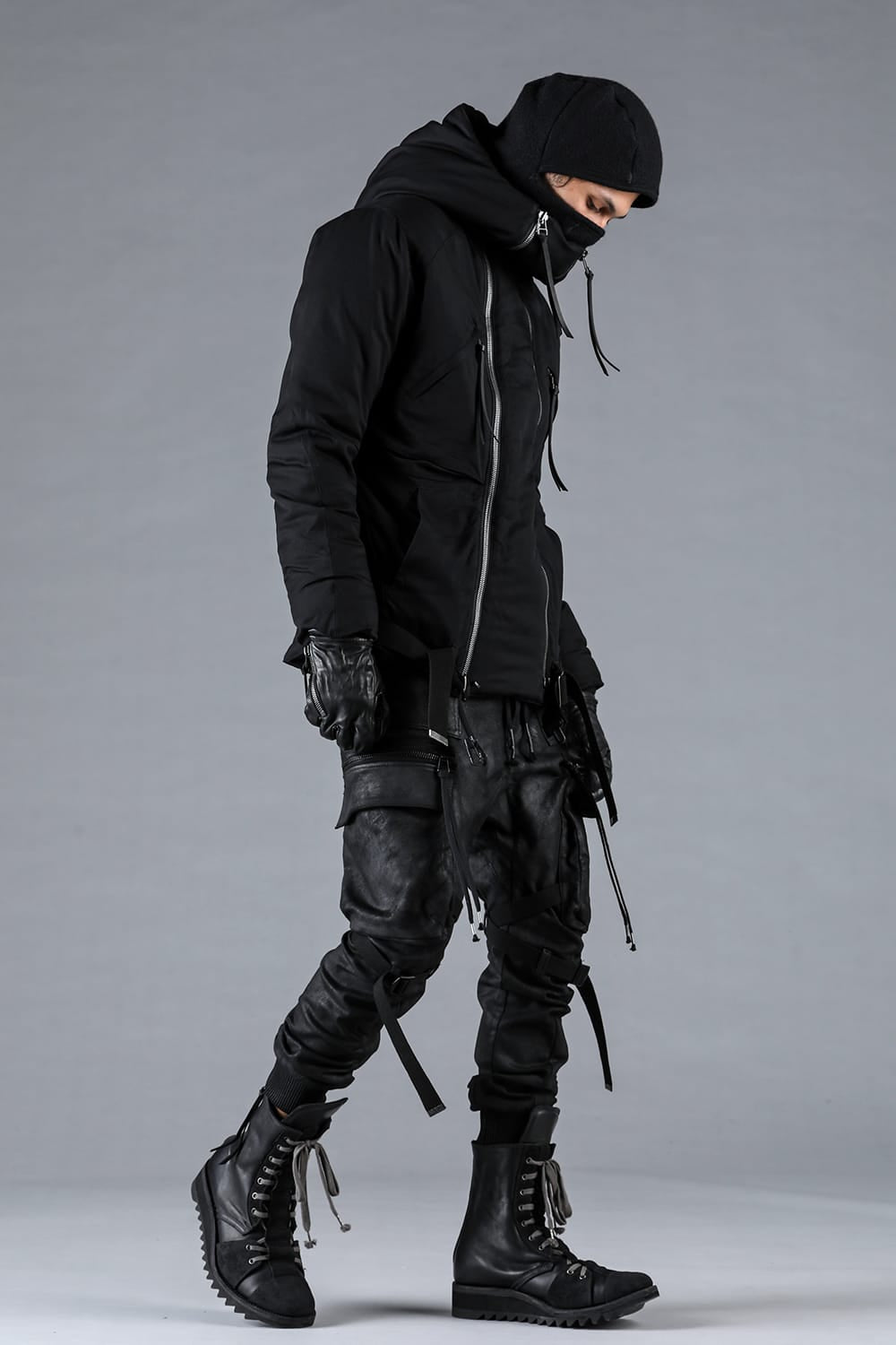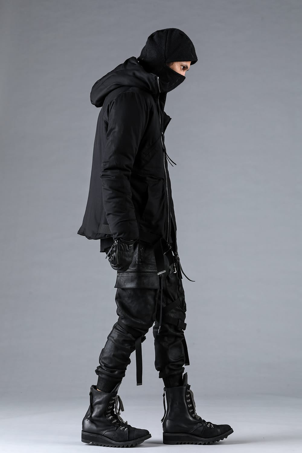 ・ベルトバックルには独自の加工を施したインダストリアルパーツを使用。・袖口にボンバーヒート素材のリブ付き。