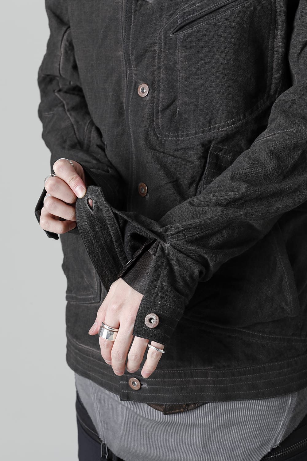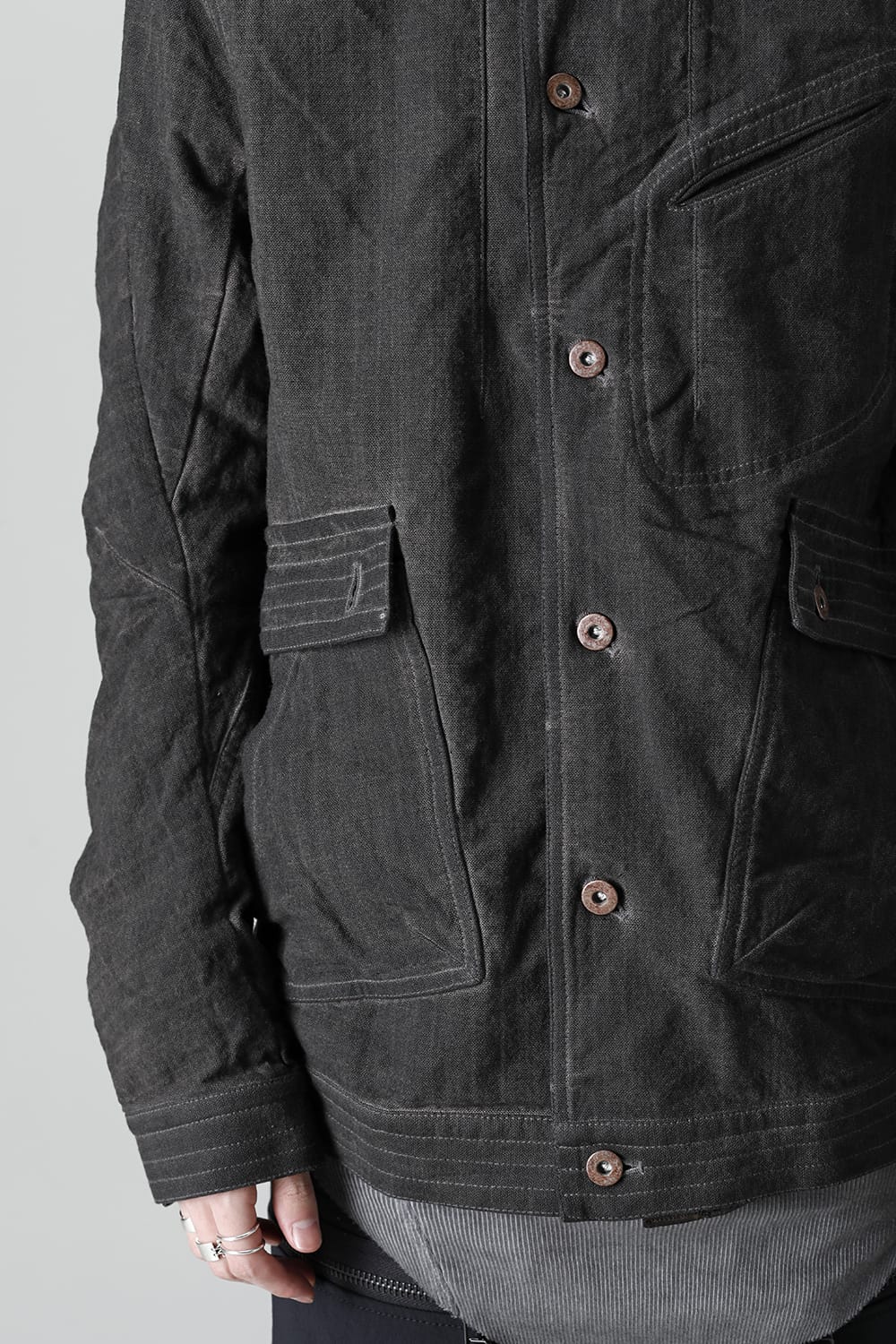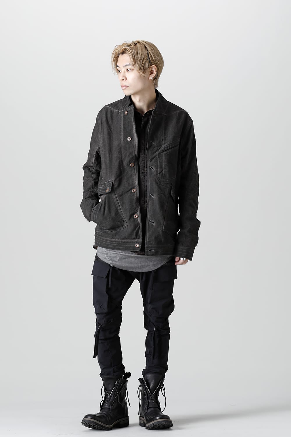 ヘビーデューティーなワークウェアをイメージしたポケット使いやステッチワークが製品加工によって強い印象を引き立たせています。