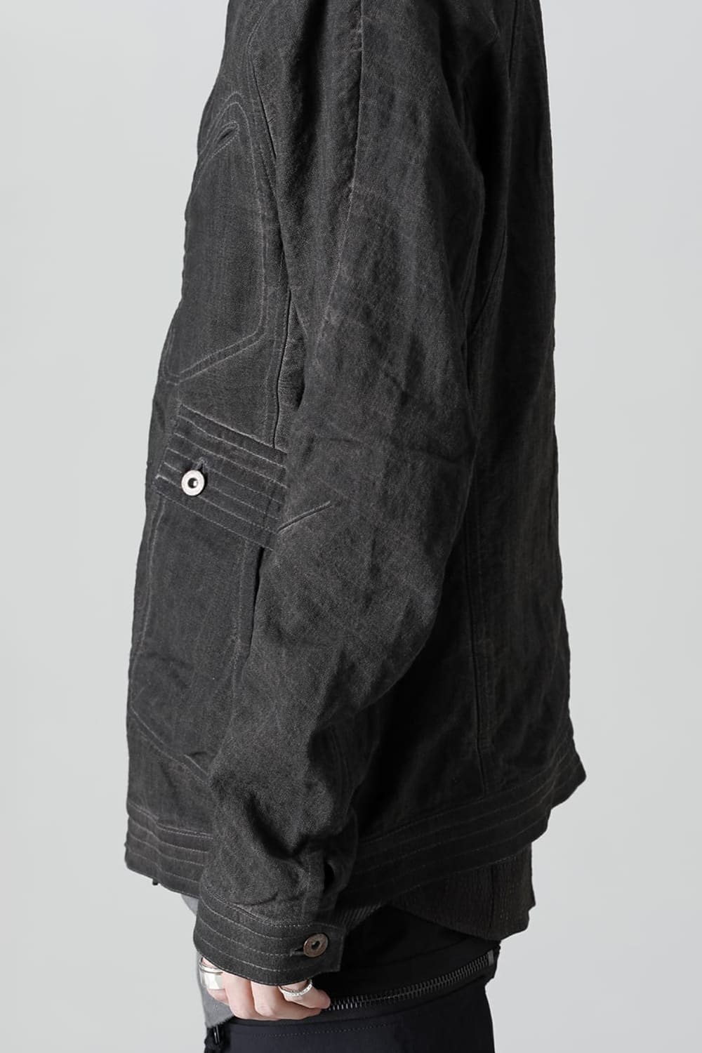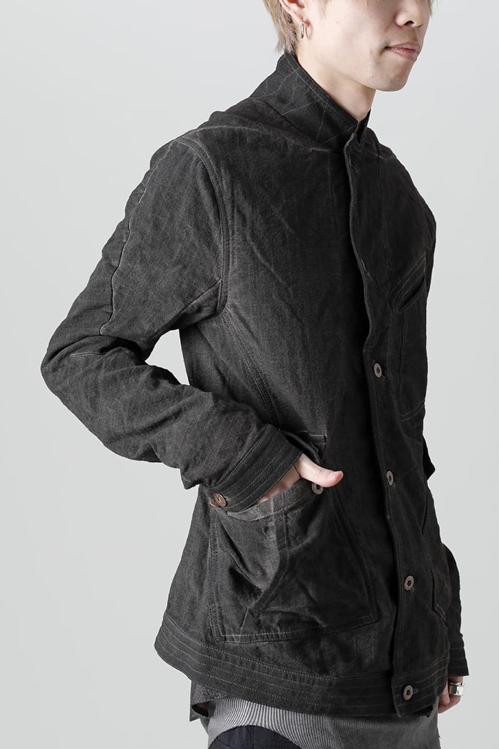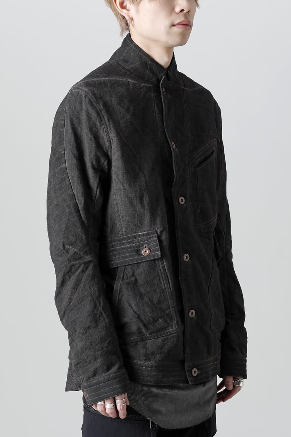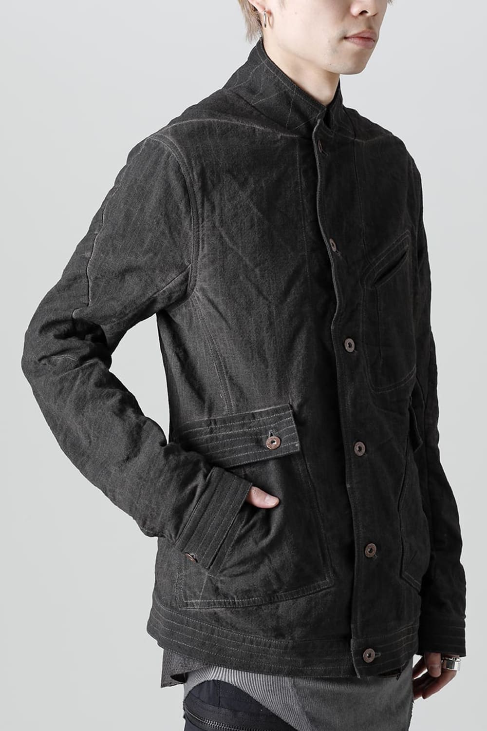 コットン×リネンランダムディンプルストレッチワーカージャケット マッドブラウン