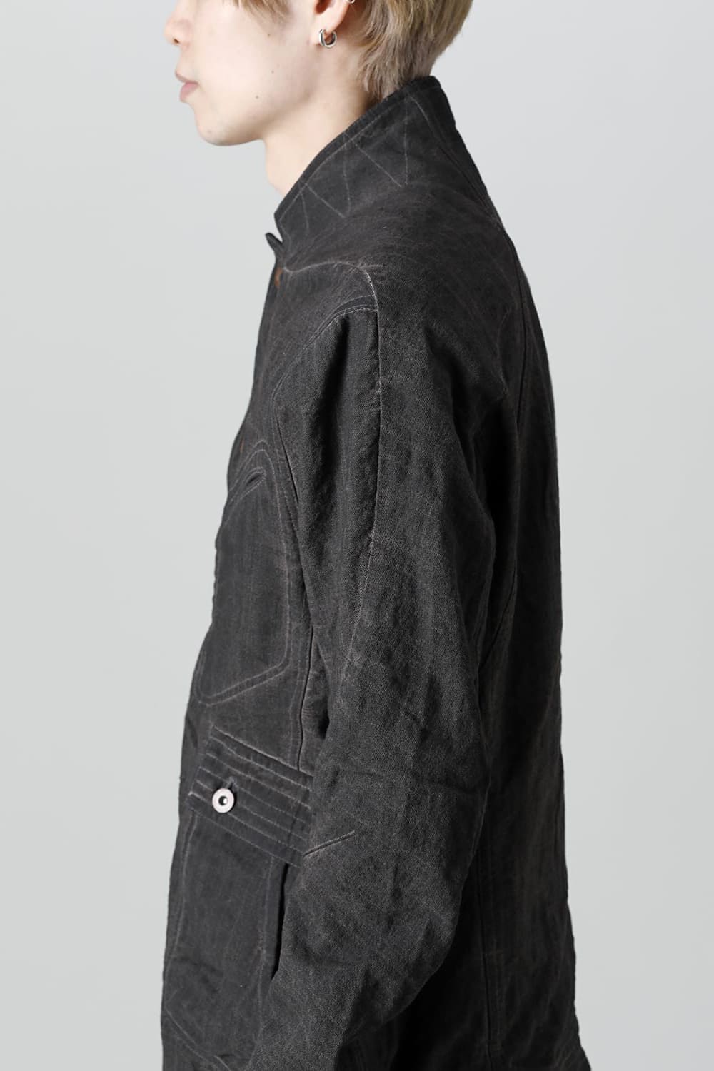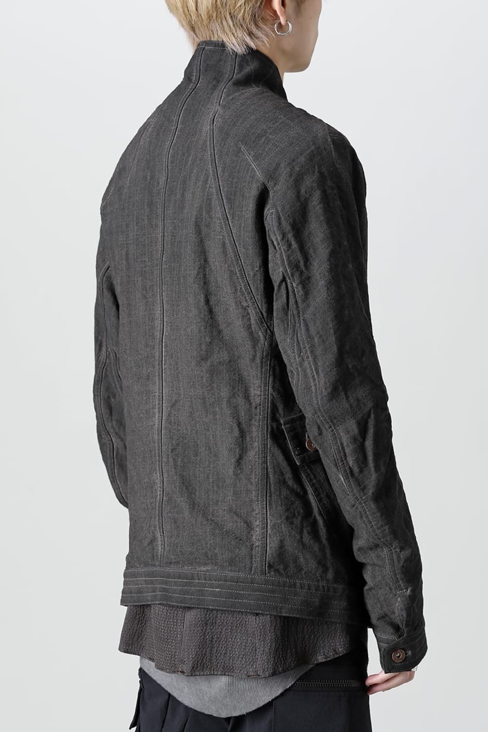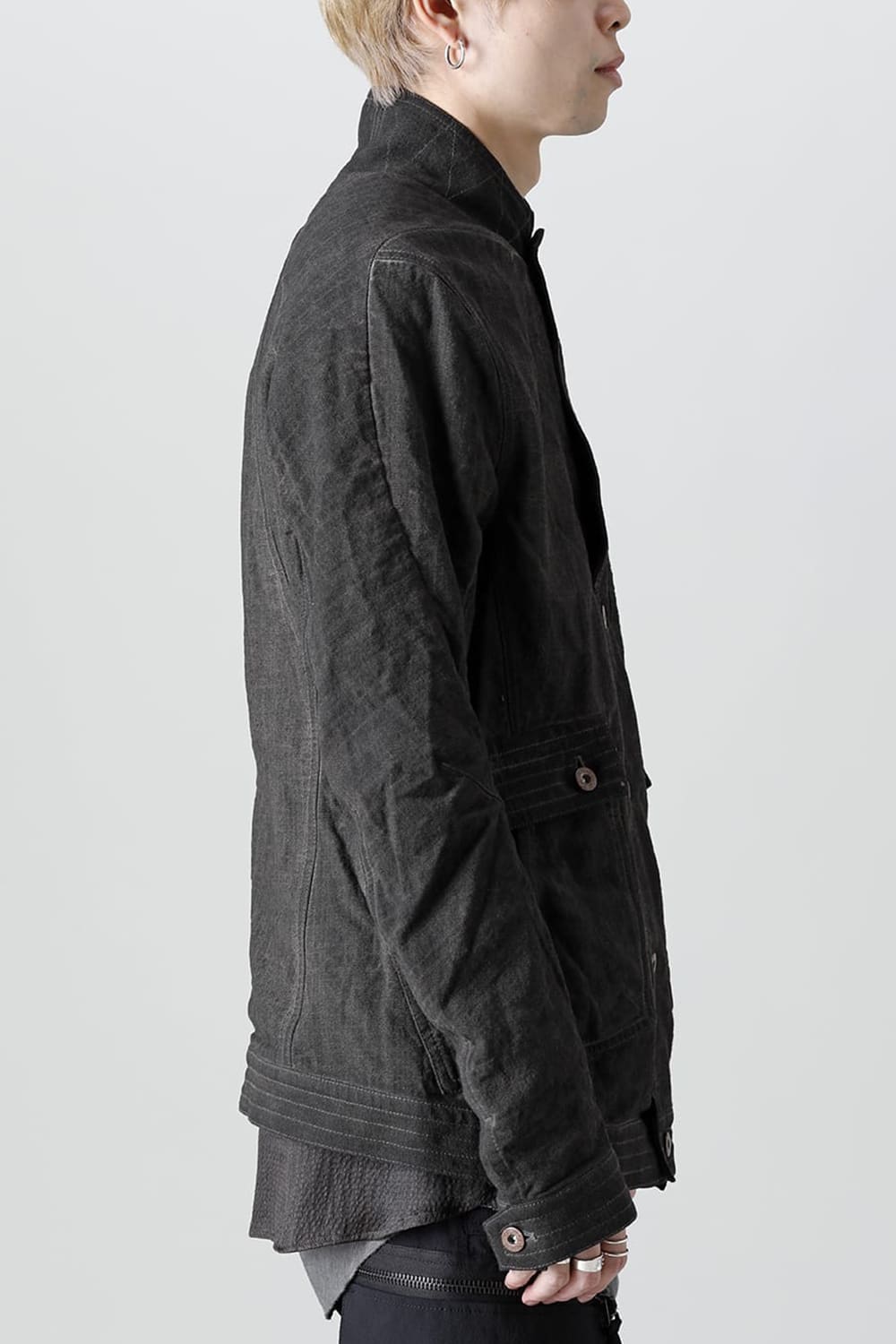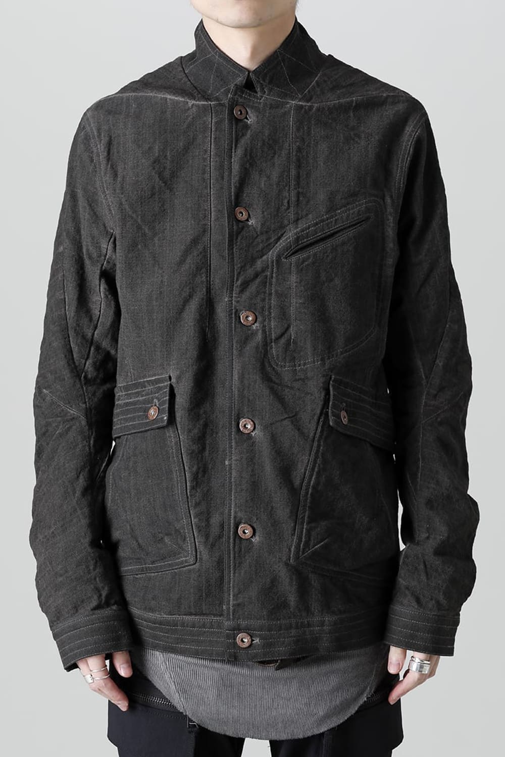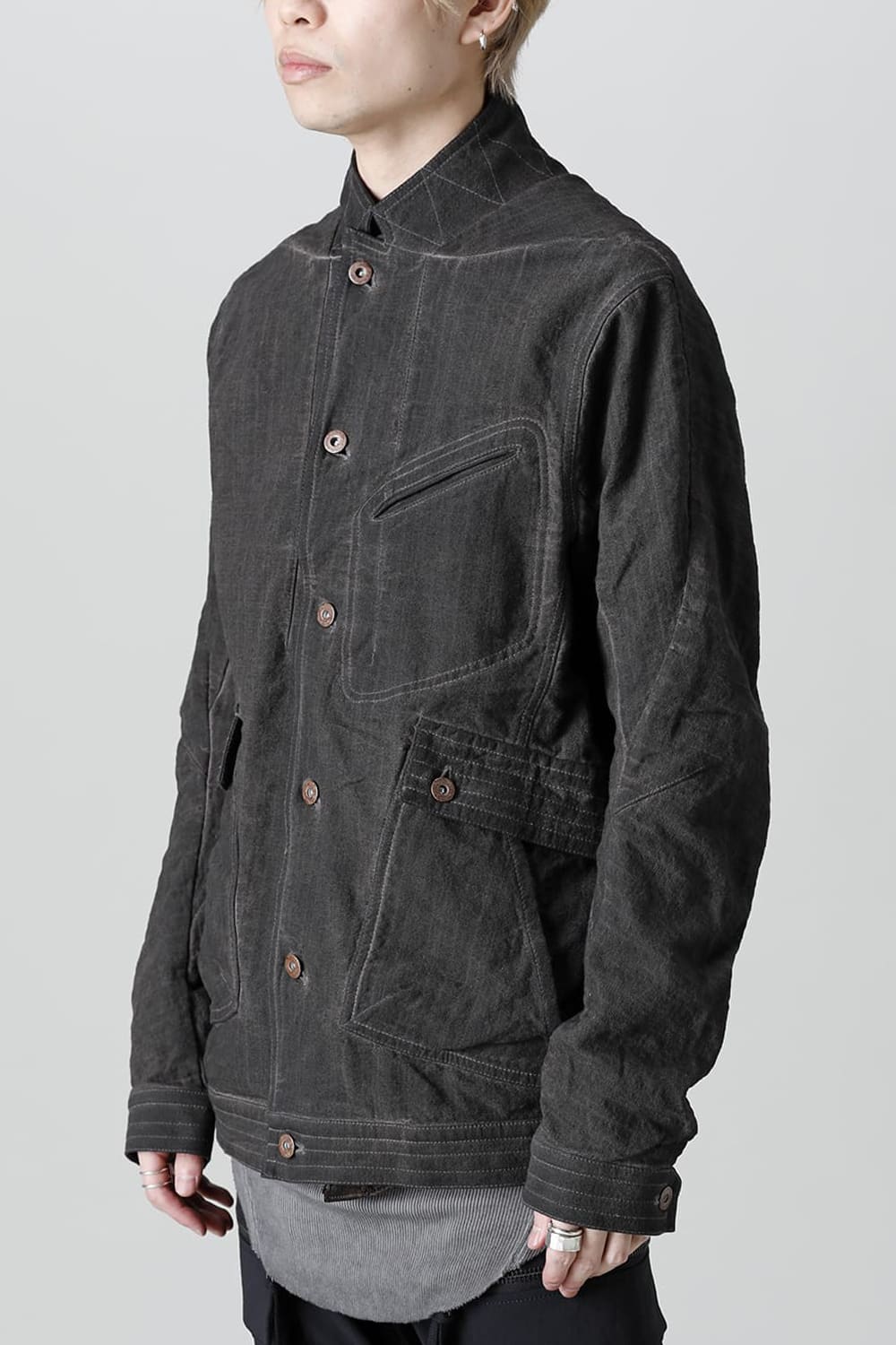 コットン×リネンランダムディンプルストレッチワーカージャケット マッドブラウン