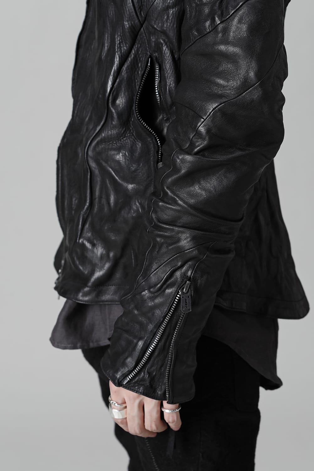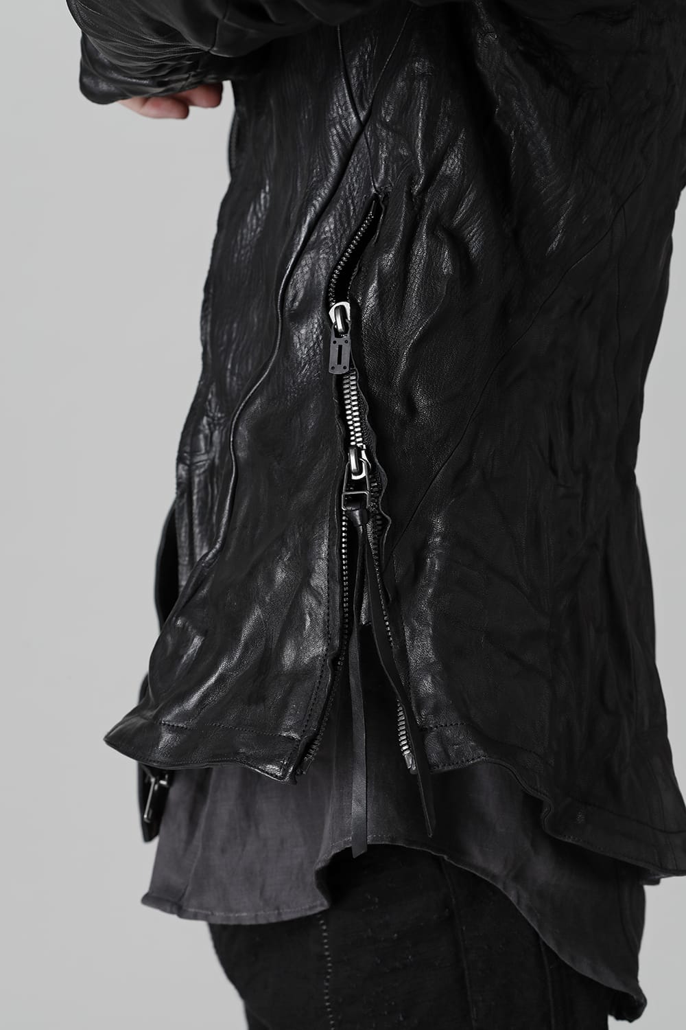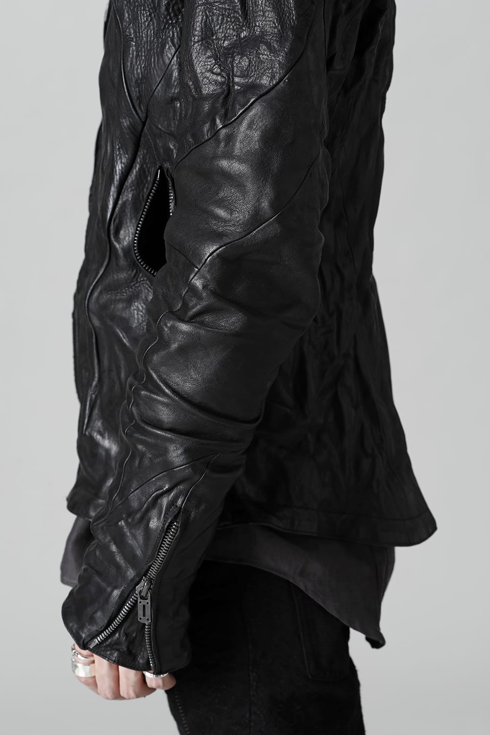 ・腰ポケットは裾までファスナーで繋がりスリットとしても機能します。袖口にファスナーマチ付き。