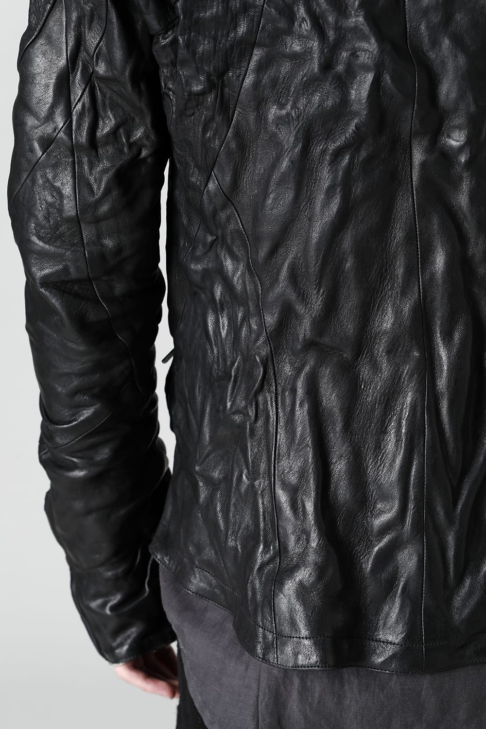 ・北海道産のエゾシカの原皮を使用しフルベジタブルタンニング鞣し、ワックスを芯まで浸透させた鹿革。一般的な薄く滑らかな鹿革と違い強烈なトラシボを生み出し生々しい表情に仕上げています。